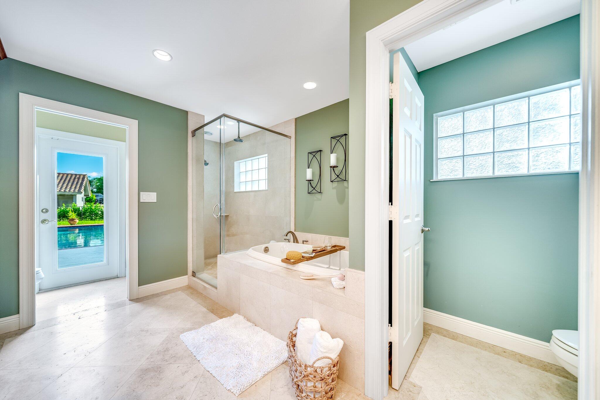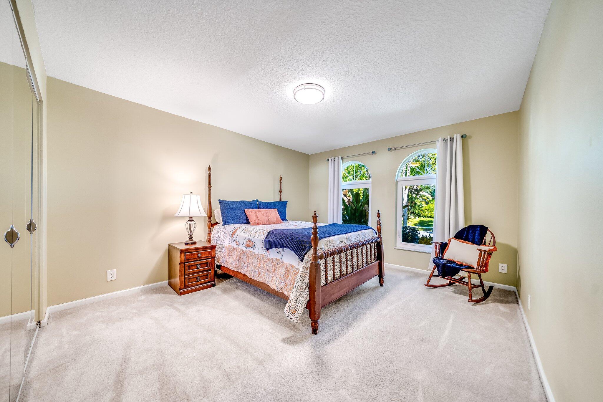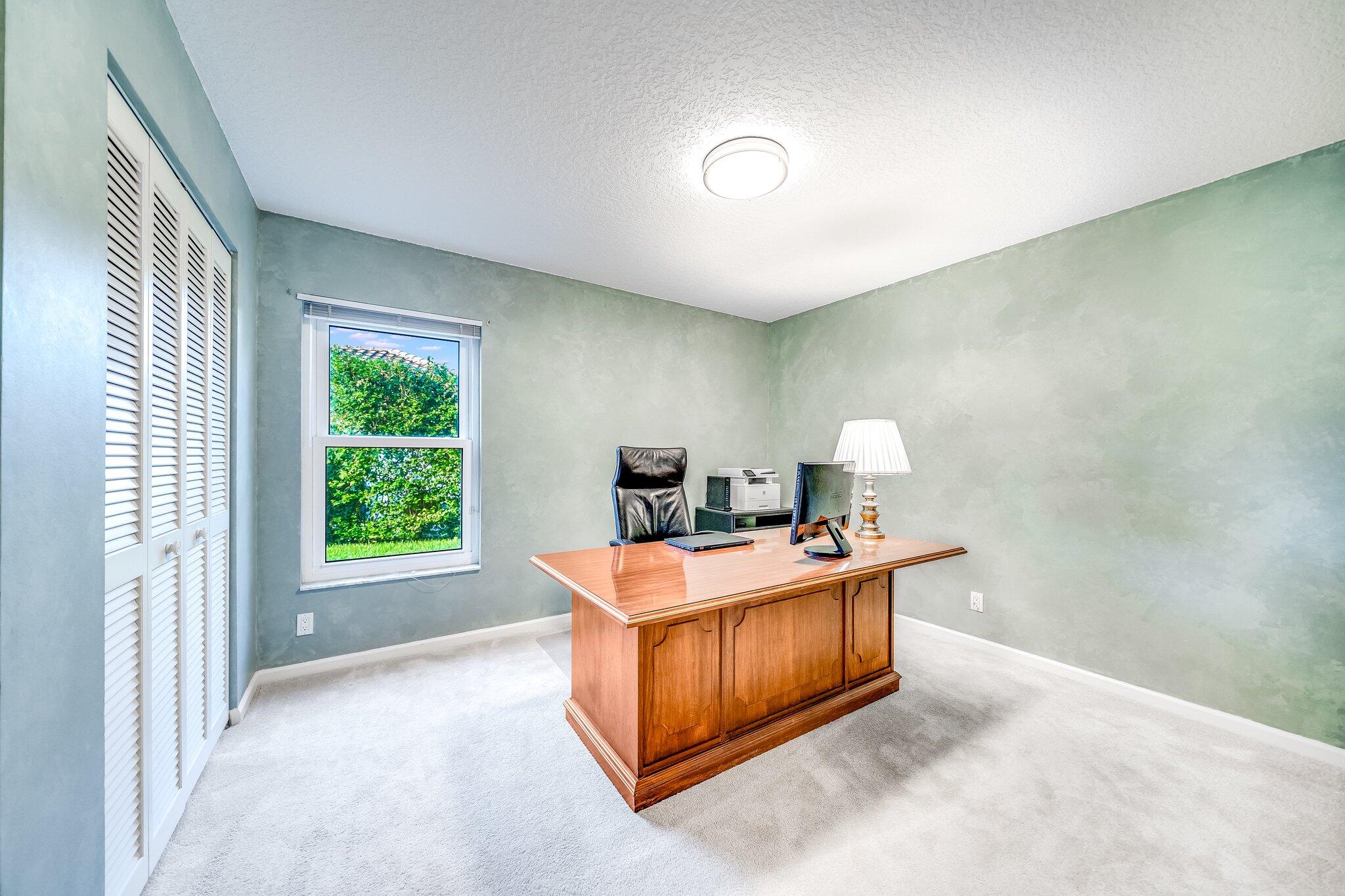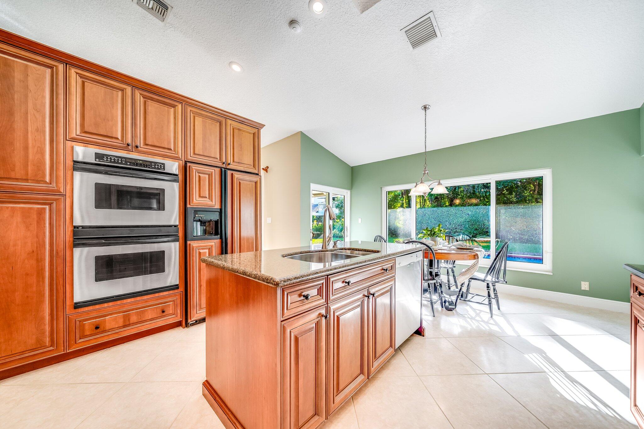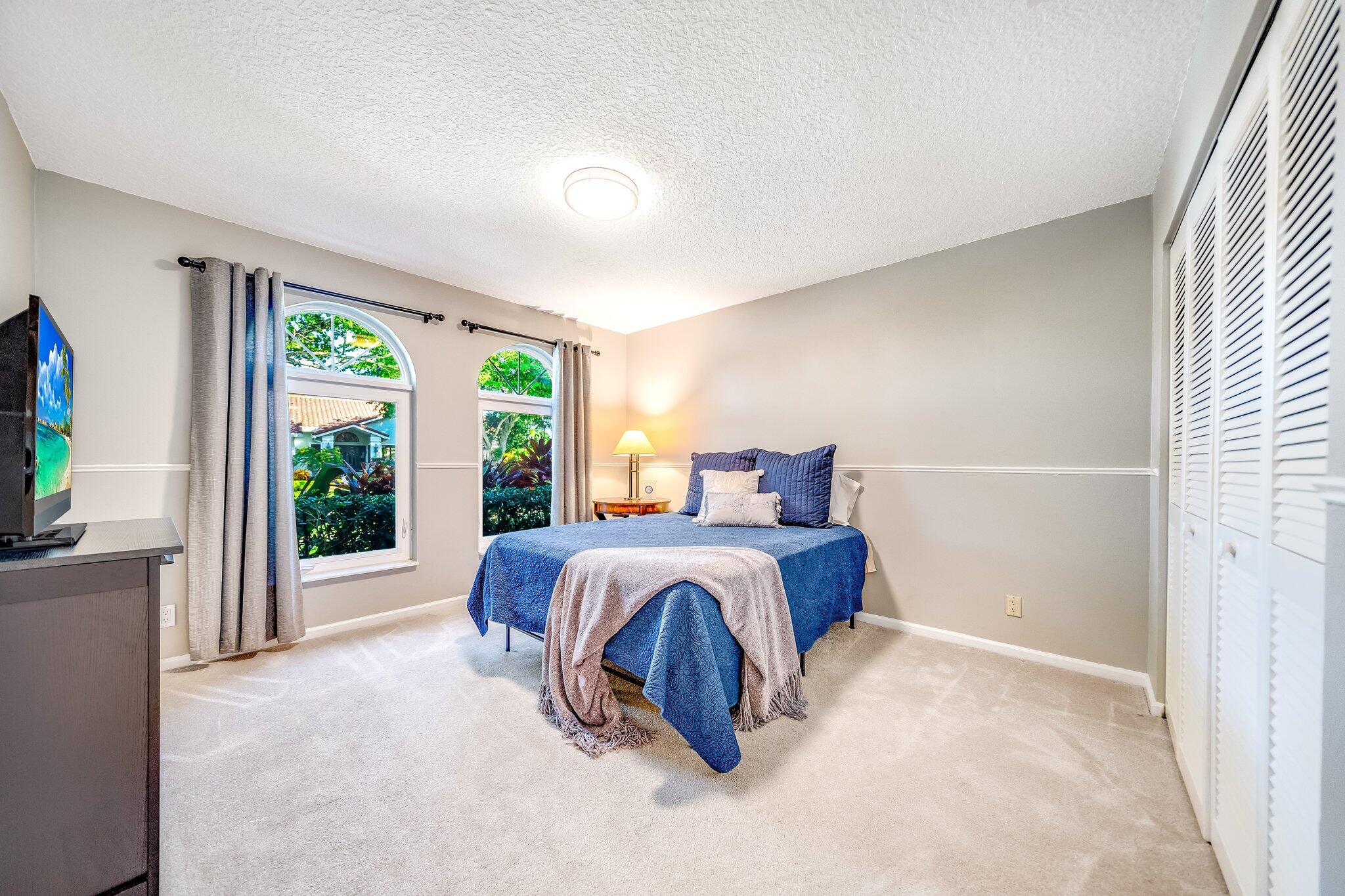 This 4 bedroom, 2 full and 2 half bathroom home is located on a beautiful, tree-lined street in the desirable New Floresta community in central Boca Raton. Enjoy a spacious one-level floor plan just under 3,000 living square feet with views of the large yard and pool. Ample cabinetry, tasteful granite counters throughout and a suite of GE appliances in the kitchen (including a double oven) are a chef's dream. Master suite with luxury touches including limestone flooring, soaker tub and immediate hot water system in the bathroom, plus custom closet installation with built-in chests and shelves. Elegant accents throughout the remaining beds and baths. Impact windows, sliders and patio doors. Close to Town Center Mall.