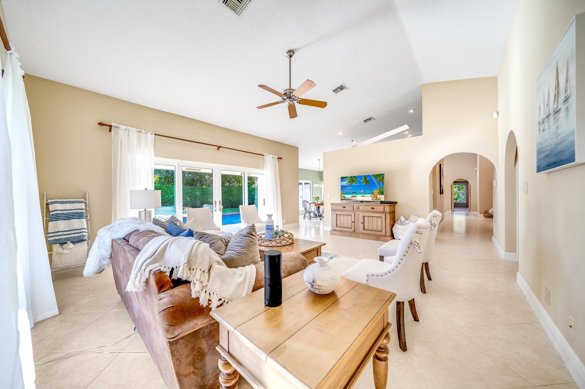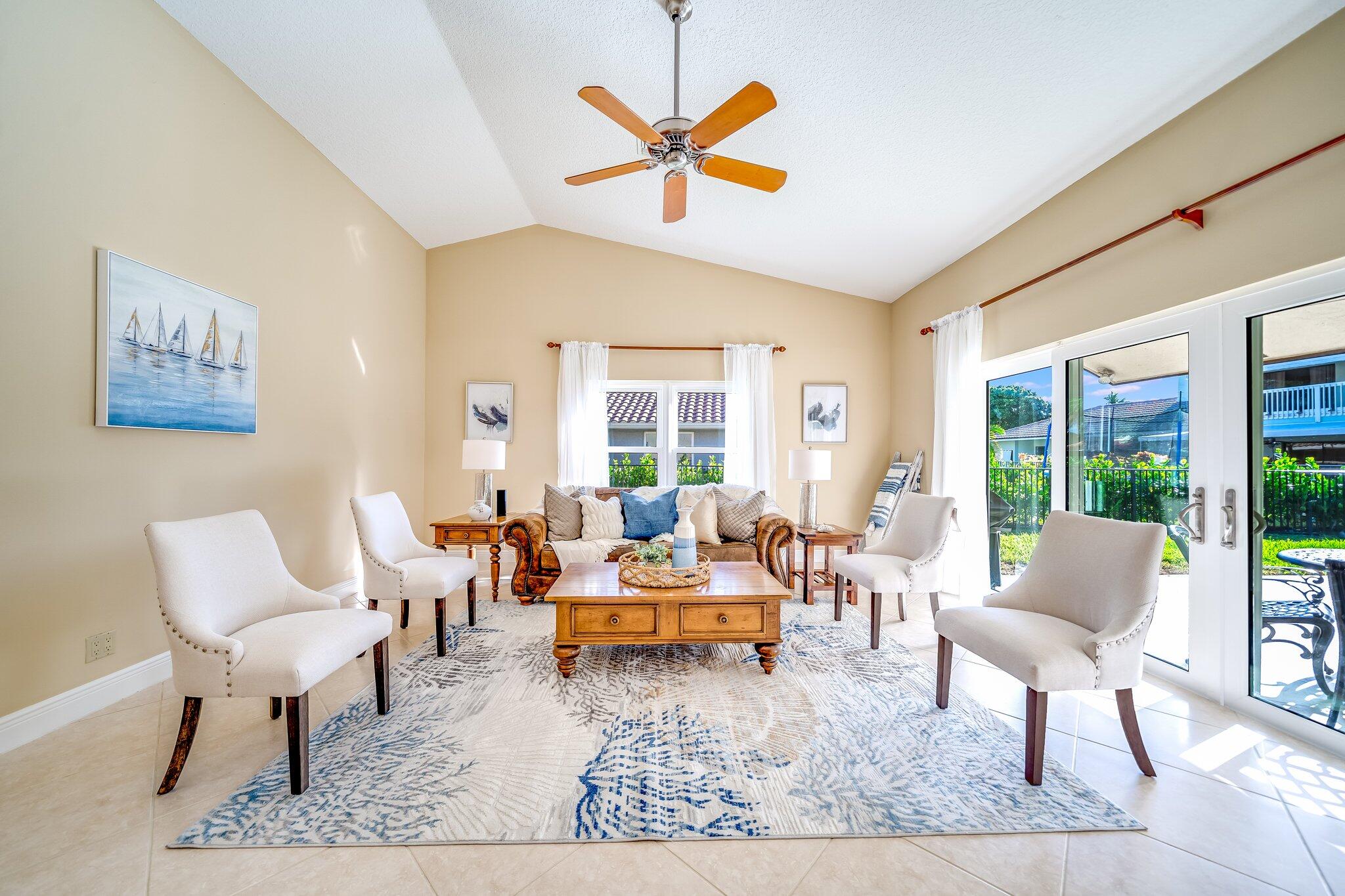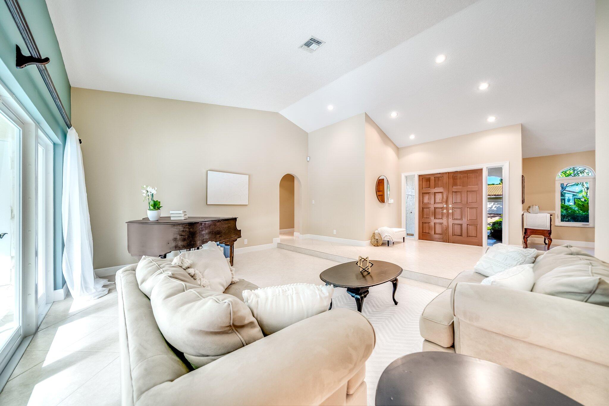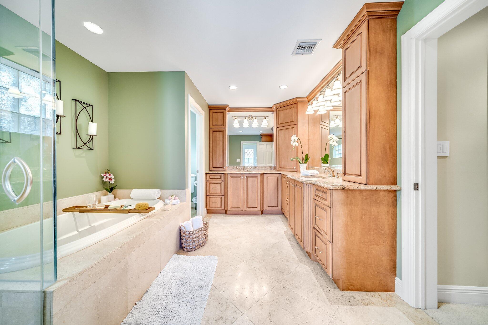 This 4 bedroom, 2 full and 2 half bathroom home is located on a beautiful, tree-lined street in the desirable New Floresta community in central Boca Raton. Enjoy a spacious one-level floor plan just under 3,000 living square feet with views of the large yard and pool. Ample cabinetry, tasteful granite counters throughout and a suite of GE appliances in the kitchen (including a double oven) are a chef's dream. Master suite with luxury touches including limestone flooring, soaker tub and immediate hot water system in the bathroom, plus custom closet installation with built-in chests and shelves. Elegant accents throughout the remaining beds and baths. Impact windows, sliders and patio doors. Close to Town Center Mall.