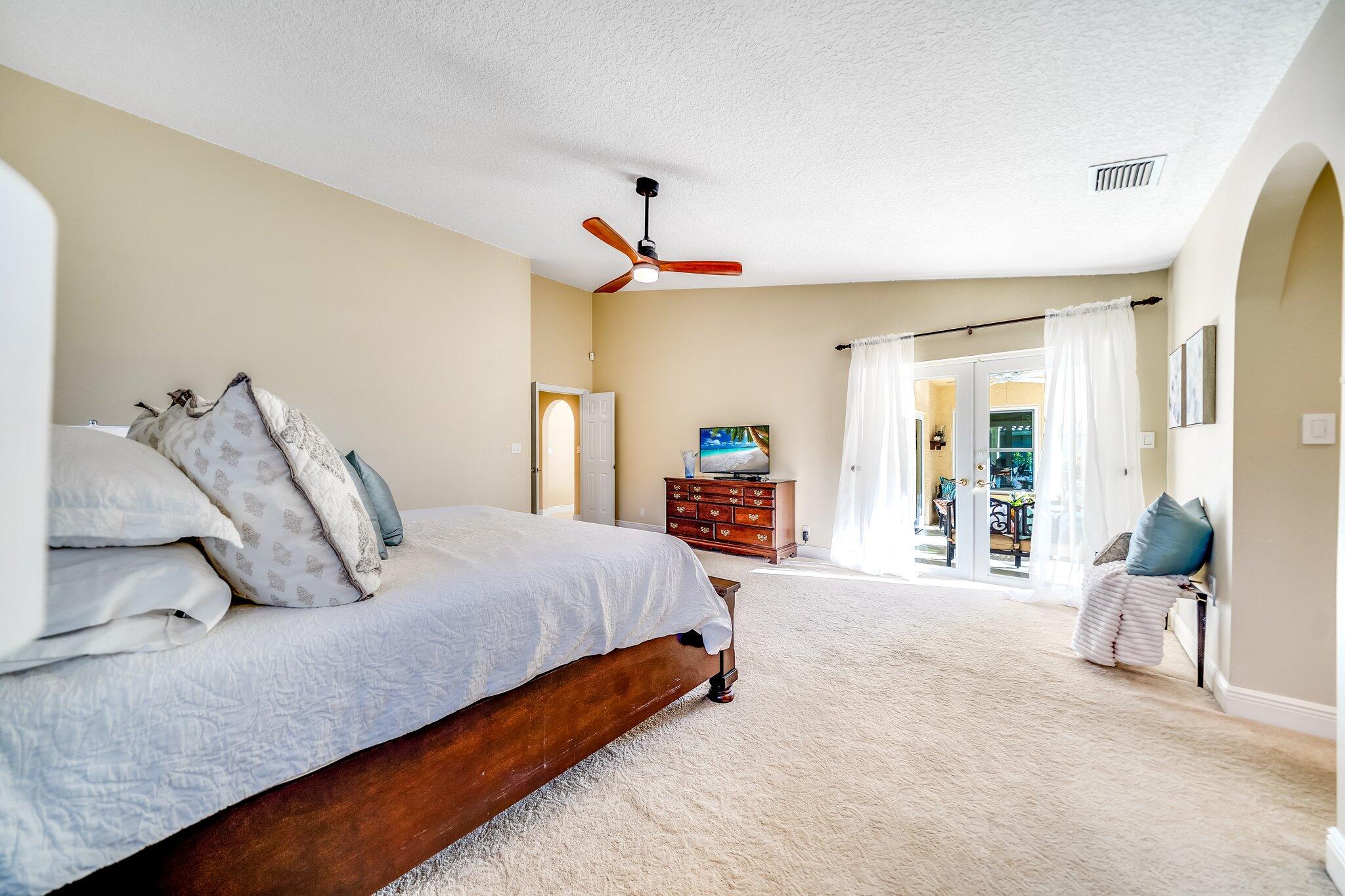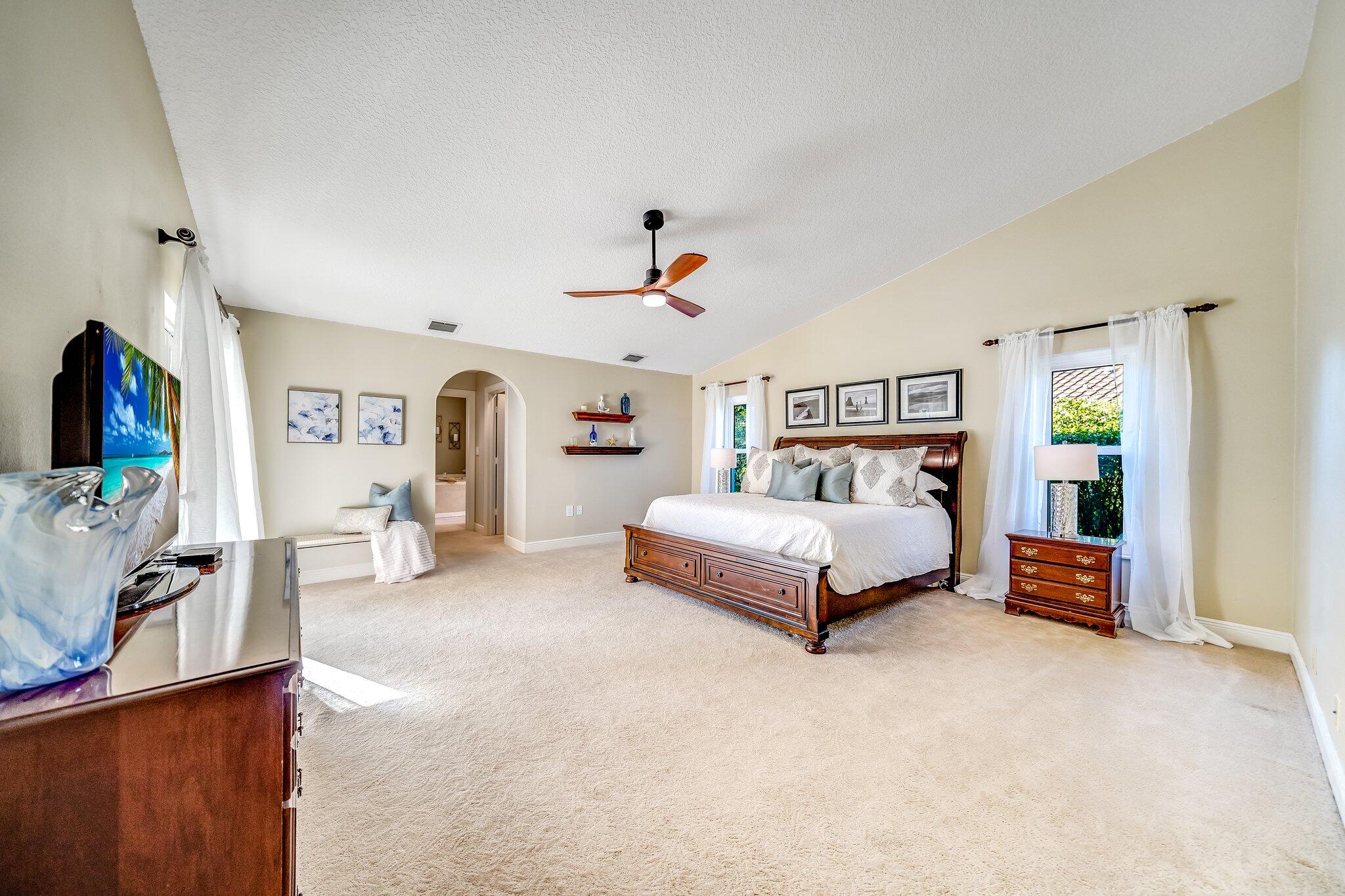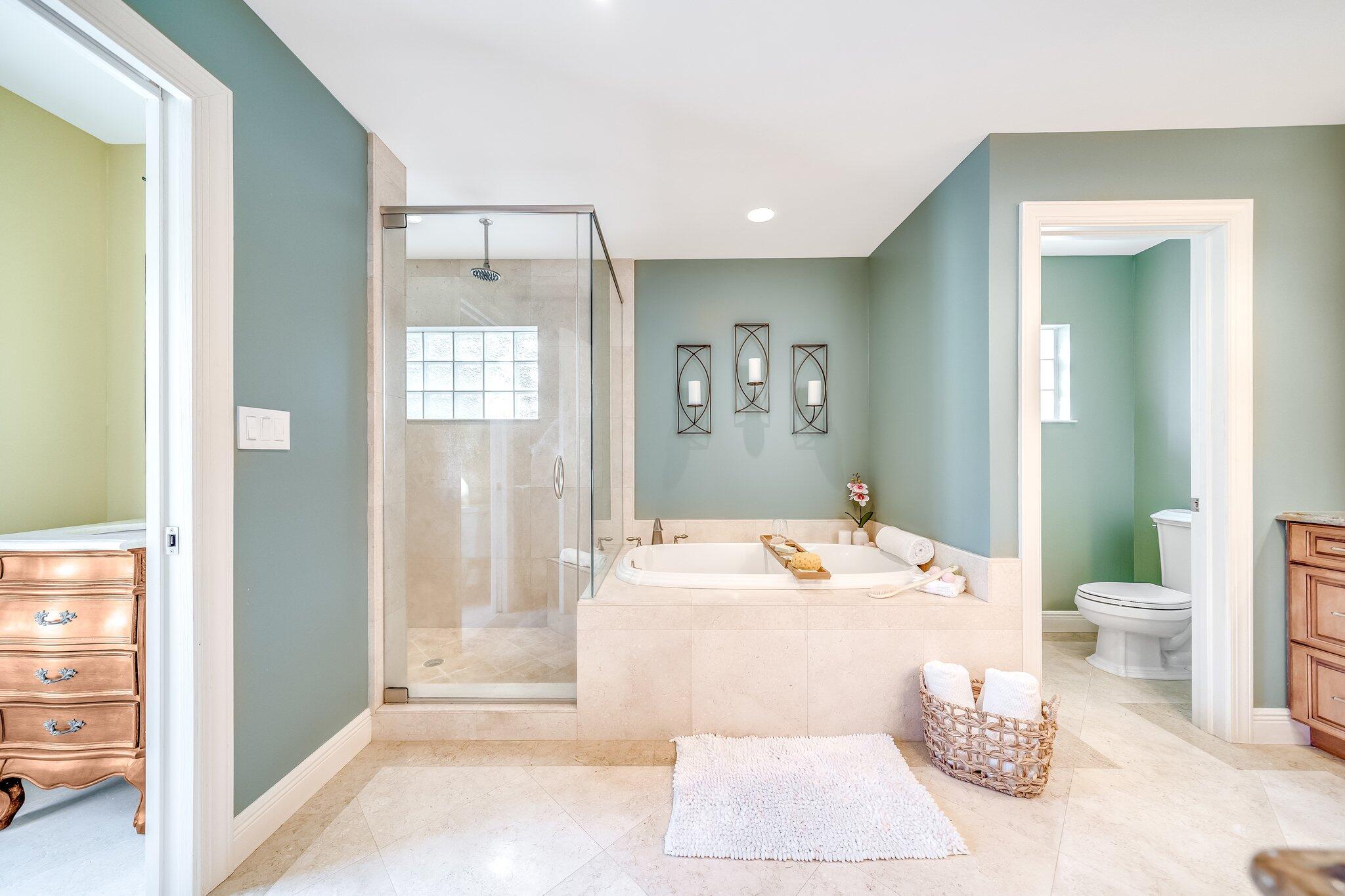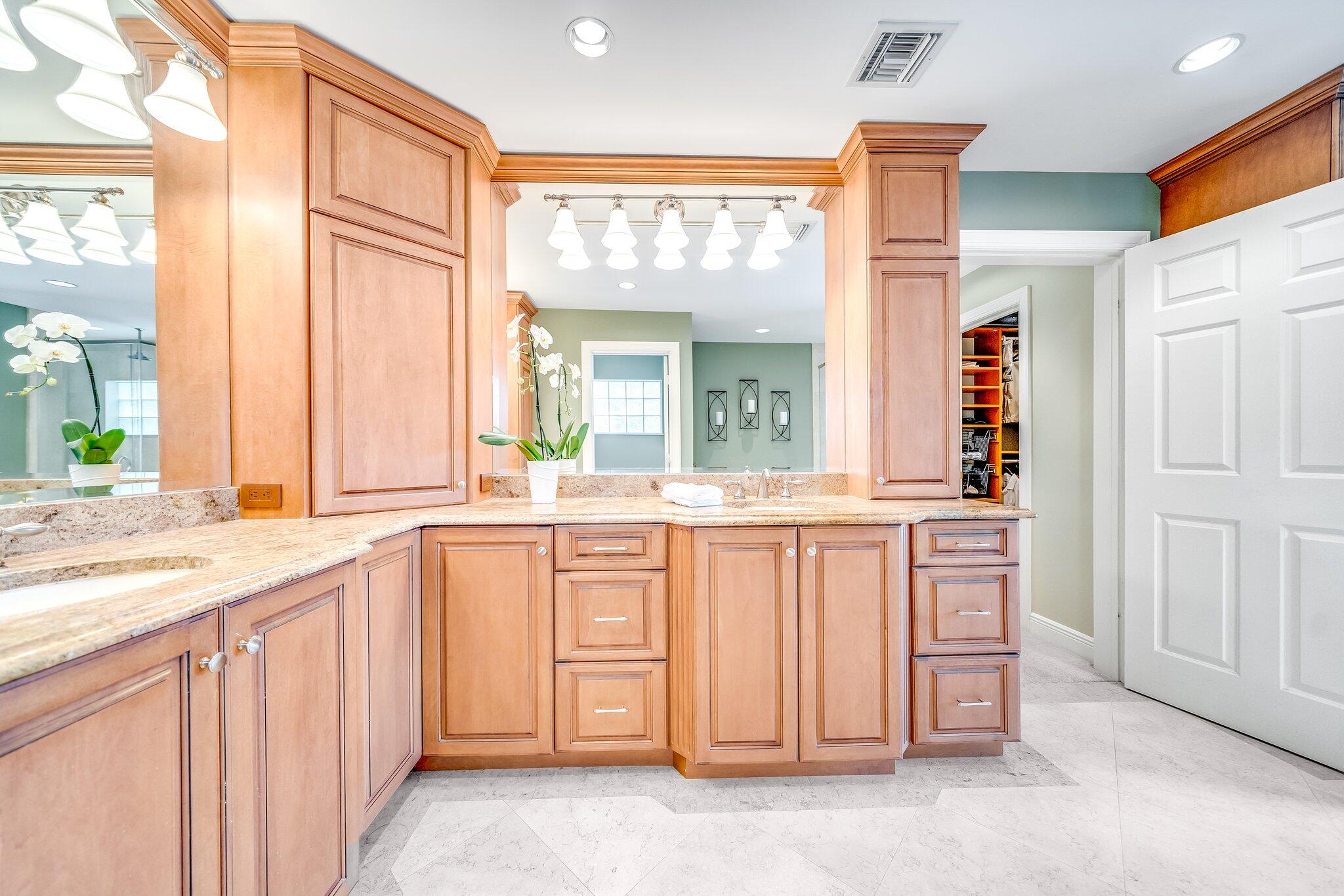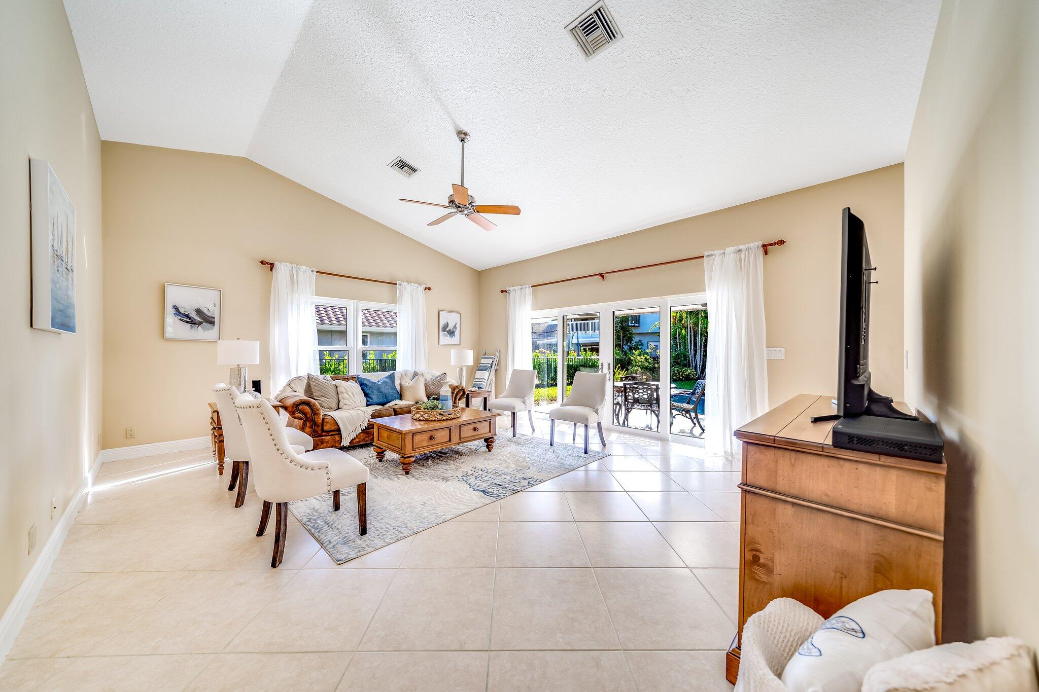 This 4 bedroom, 2 full and 2 half bathroom home is located on a beautiful, tree-lined street in the desirable New Floresta community in central Boca Raton. Enjoy a spacious one-level floor plan just under 3,000 living square feet with views of the large yard and pool. Ample cabinetry, tasteful granite counters throughout and a suite of GE appliances in the kitchen (including a double oven) are a chef's dream. Master suite with luxury touches including limestone flooring, soaker tub and immediate hot water system in the bathroom, plus custom closet installation with built-in chests and shelves. Elegant accents throughout the remaining beds and baths. Impact windows, sliders and patio doors. Close to Town Center Mall.
