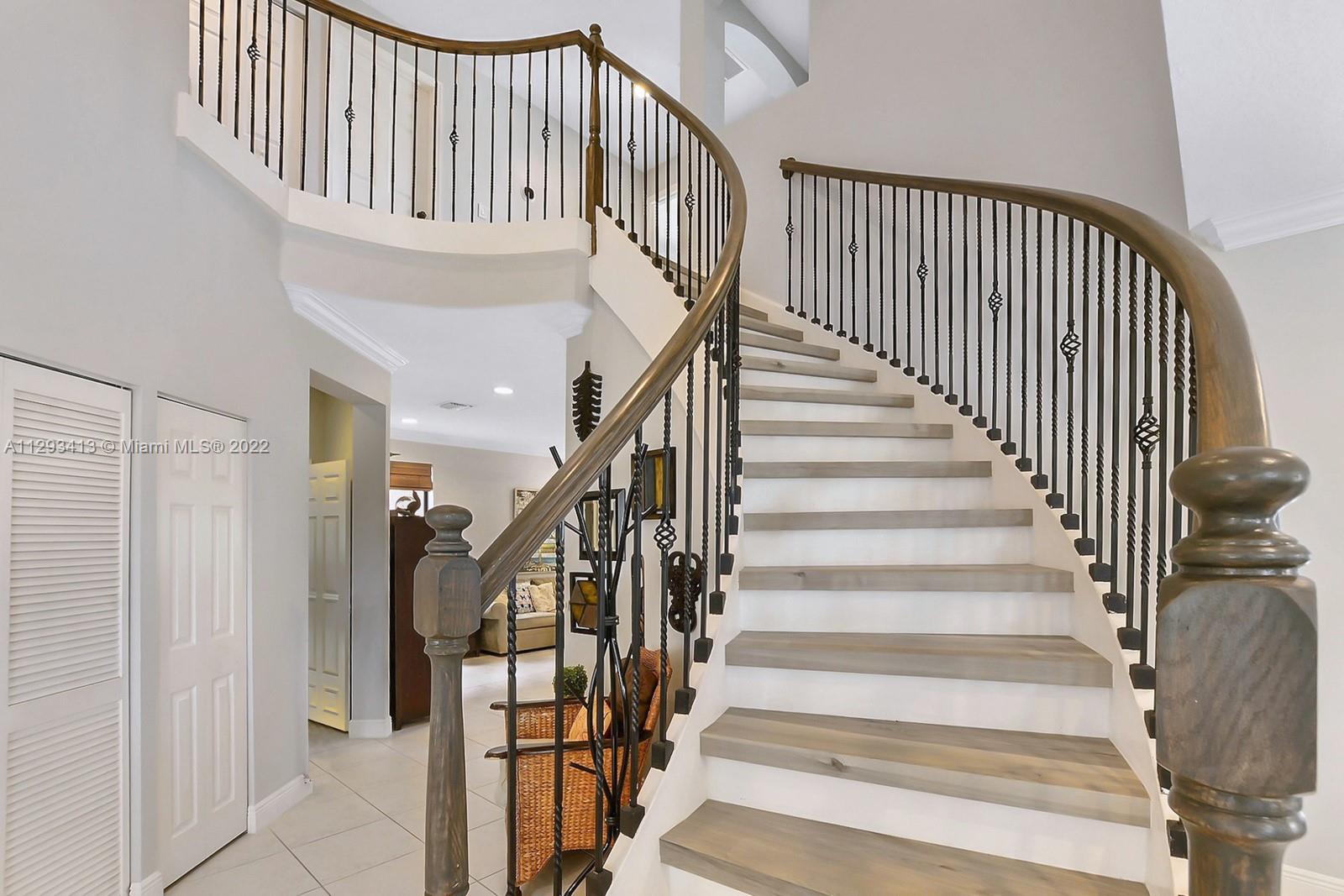 WELCOME TO THE RESORT STYLE MANNED GATED COMMUNITY OF RIVIERA ISLES, FEATURING THIS SPECTACULAR 5 BEDS 2.5 BATH HOME W 3,170 SQ FT OF LIVING SPACE. ELEGANT DOUBLE DOOR ENTRY OPENS TO TASTEFUL DECOR, GORGEOUS FIXTURES, STUNNING WOOD & IRON STAIRCASE & DETAIL THROUGHOUT. FABULOUS KITCHEN HAS TWO-TONED CABINETRY & QUARTZ COUNTERS. UPSTAIRS PRIMARY SUITE RETREAT W SITTING AREA. ENSUITE BATH HAS 2 VANITIES, SOAKING TUB & SHOWER. SERENE BACKYARD PARADISE PROVIDES THE ULTIMATE OUTDOOR LIVING/ENTERTAINING SPACE W EXTENDED PATIO & CHARMING PERGOLA LINED BY AMBIENT MATURE FRUIT TREES & LOW MAINTENANCE TURF. OTHER UPGRADES: SOLAR PANELS, ROOF 4 YEARS OLD & BRAND NEW IMPACT WINDOWS. ENJOY ACCESS TO UNPARALLELED RESORT STYLE ONSITE AMENITIES IN PROXIMITY TO DESIRABLE SCHOOLS, I-75, SHOPS & RESTAURANTS.