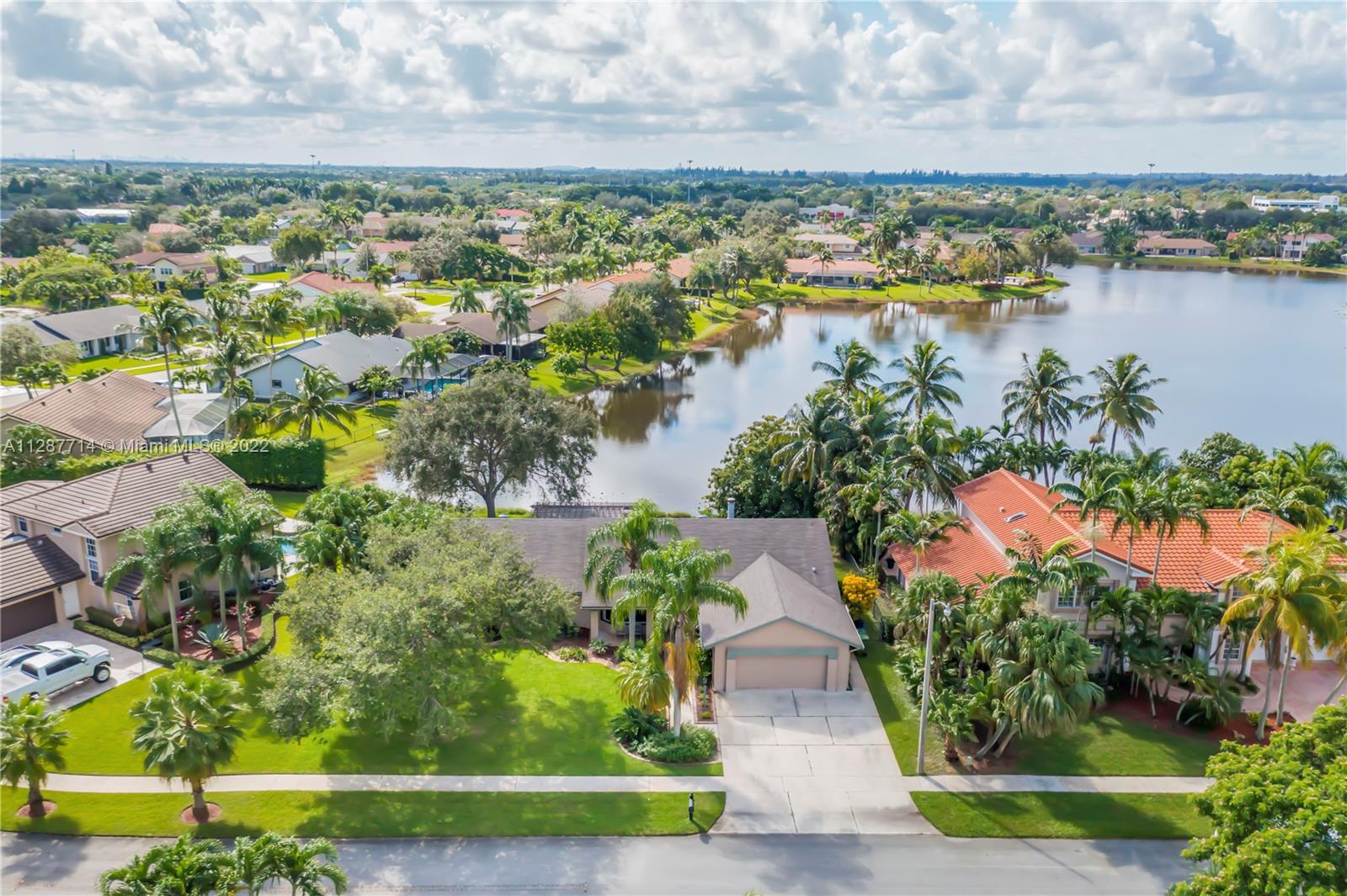 Gorgeous 1 story home on an oversized .32 acre lakeside lot in Pasadena Estates II at Chapel Trail! This home features a **BRAND NEW AC (2023)**, stunning tile floor throughout, volume ceilings, & a working Chicago brick fireplace! The master suite is complete w/2 custom walk-in w/built-ins, & a brand new upgraded master bath modern style! The large fenced-in backyard has an amazing lake view, huge paver patio, & an oversized pergola that provides the perfect outdoor entertaining space. There is plenty of space for a pool! This is a ***SMART HOME***, including a newer smart water heater, & upgraded smart switches. A Konnected© Smart security system was installed. Home is wired w/ 12 camera 4k PoE surveillance system. Upgraded w/both ***HURRICANE IMPACT WINDOWS & ACCORDION SHUTTERS!***