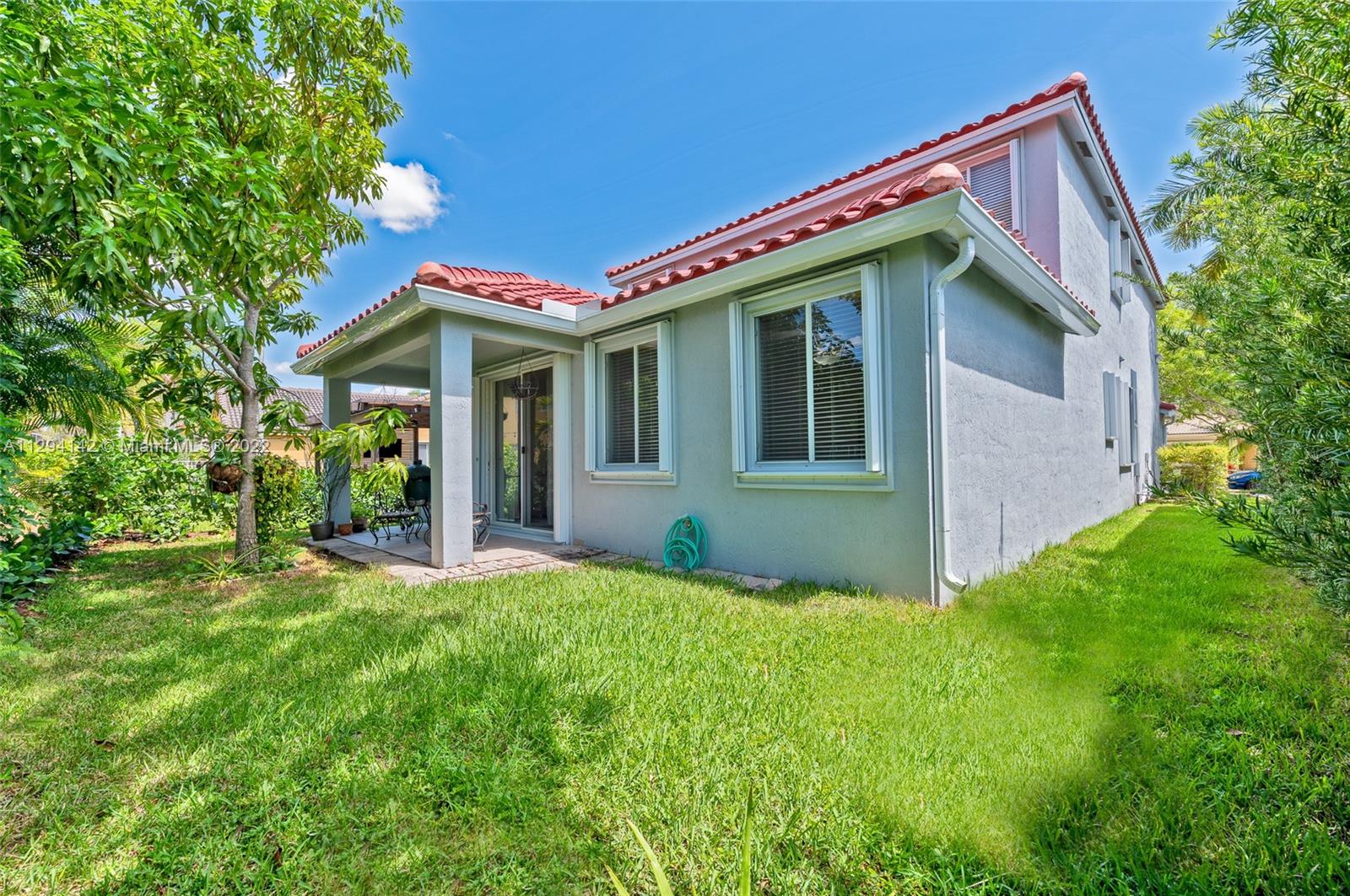 2 Story home in the heart of one of the most desired communities in Weston. Gated community with 24 hour security surveillance. Easy access to grocery stores, Restaurants, Coffee house,Banks, Parks and all of Weston's A-Rated Schools. Near I-75 and Interstate 595, Sawgrass Mall, Ft. Lauderdale Beach and airport. It has an open Floor-plan including 5 bedrooms, 2 of which are suites with walk in closets, and 3.5 baths. The kitchen is remodeled with stainless steel appliances and granite countertop. Its open concept is perfect for any family. The house has crown moldings and wood floors throughout the second floor. The bathrooms have been recently updated. New roof, New A/C. The windows have accordion hurricane shutters and 2 car garage. Backyard is a cozy covered patio for your enjoyment.