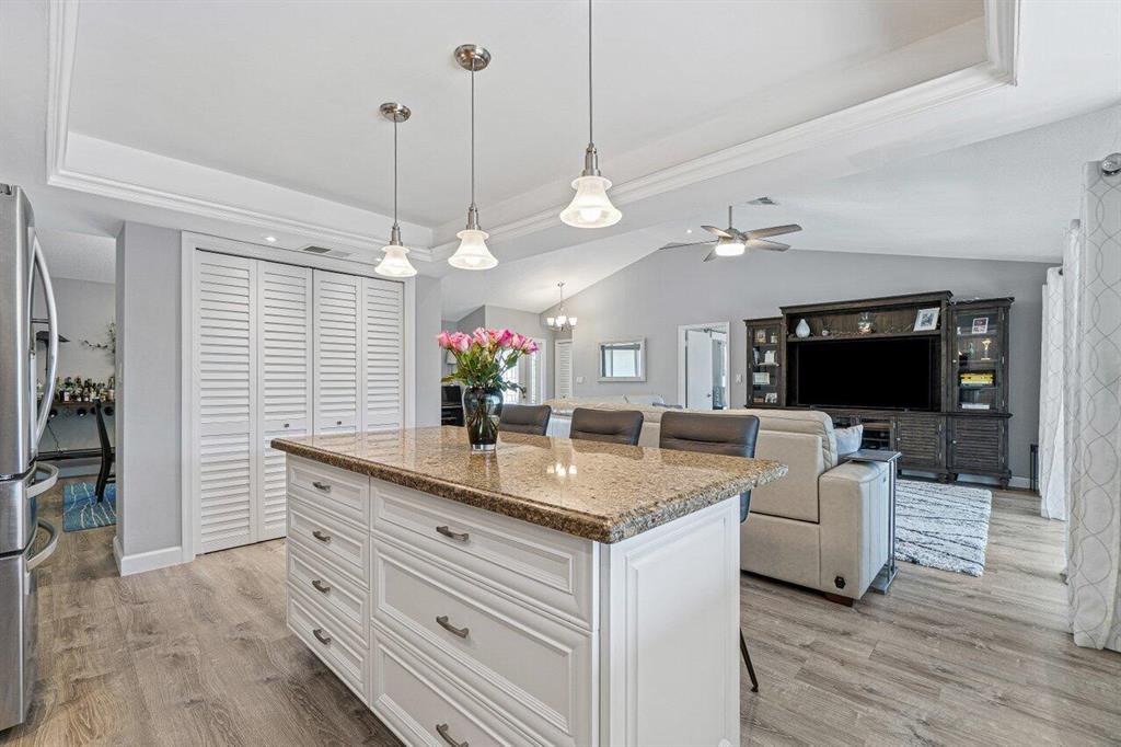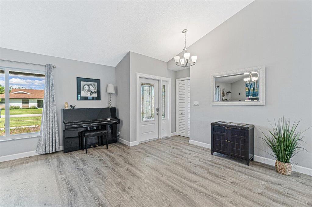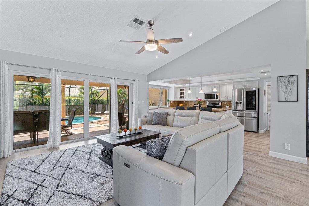 DON'T MISS THIS BEAUTIFULLY REMODELED HOME IN A GREAT CENTRAL LOCATION WITH ALL IMPACT WINDOWS.WALK INTO THIS VERY OPEN CONCEPT THAT HAS HIGH VOLUME CEILINGS. GORGEOUS UPDATED KITCHEN WITH HUGE ISLAND OVER LOOKING LIVING AREA AND POOL. KITCHEN HAS LIGHT CABINETS WITH GRANITE COUNTERTOPS, NEW SS APPLIANCES 2019, NEWER WASHER / DRYER 2017, NEW A/C 2017, NEW VINYL FLOORS, NEW PAINT, BRAND NEW HOT WATER HEATER 2021, NEW INSULATION NEW POOL PUMP.SEPERATE FORMAL DINING AREA GREAT FOR ENTERTAINING.NOTHING TO DO! MASTER BATHROOM HAS A ROMAN TUB W/ JETS.HUGE COVERED PATIO OVERLOOKING TRANQUIL SALT WATER POOL WITH BEAUTIFUL LANDSCAPING. NICE CORNER LOT FOR PRIVACY WITH MATURE FRUIT TREES. GENERATOR HOOK UP. CLOSE TO POLO SHOPS W/ PUBLIX , SHOPPING, & RESTAURANTS. LOW HOA FEES AND PET FRIENDLY!