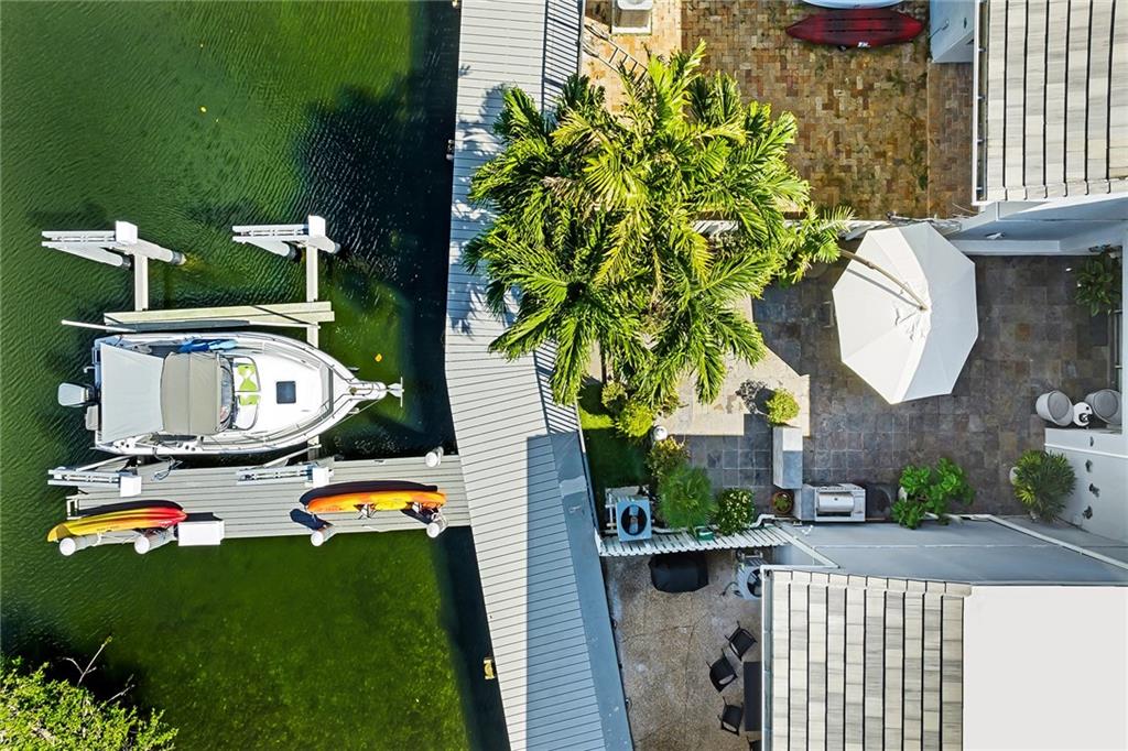 Magnificent waterfront townhome located in the exclusive gated community of Poinciana Island. This unique, rarely available, 4 bed 3 bath residence is the only one on the island that comes with a deeded boat dock and 30,000 lb boat lift with LED lighting. Walk into an open living and dining room concept with high ceilings and porcelain tile flooring throughout. Enjoy your custom-built wine cellar and kitchen that features designer granite countertops and backsplash with SS appliances. The 2nd floor features the master bedroom with his & her closets and beautiful waterfront views. Entertain your guests with a built in BBQ and private backyard that faces multi-million dollar homes on an open wide canal. Amenities include: tennis courts, basketball courts, 2 heated pools, gym, & clubhouse.