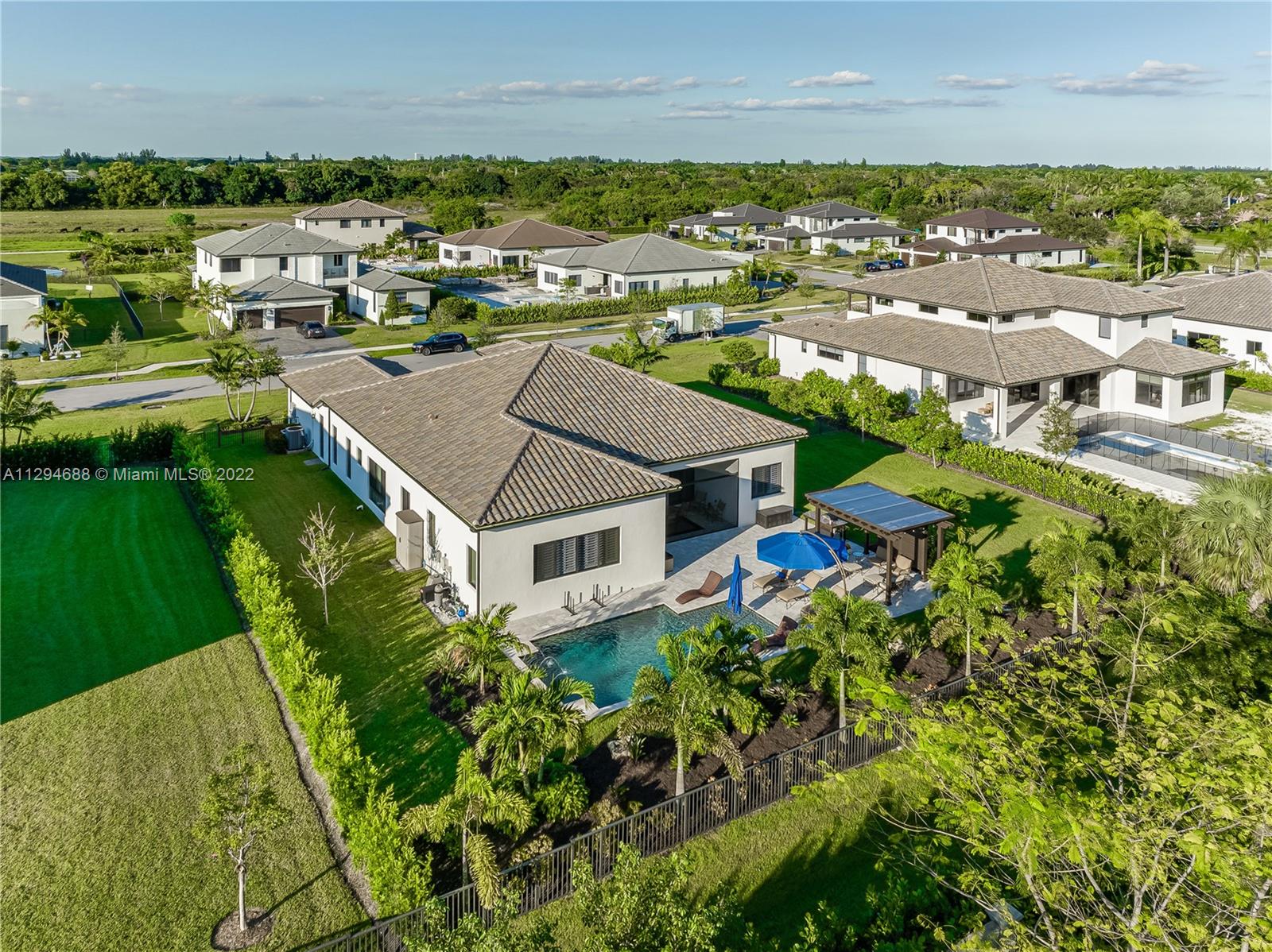 Looking for a NEW HOME....check out this less than 2 year old spectacular home in Davie on almost a ½ acre, featuring four bedrooms, 2.5 baths, & 3 car garage with exquisite pool & patio. This one story home has it all...12 foot ceilings, impact windows, two A/C systems, along with a custom kitchen, including Italian double stacked cabinets. There are plantation shutters throughout, salt-water pool, screened patio, along with many high-end upgrades. This executive home features an open floor plan & tons of windows to take advantage of the huge, private yard with a resort quality pool/patio! Located in a boutique gated community of Arbor Reserve, just east of I-75 and north of Griffin Blvd, with easy access to expressways, shopping and great schools. This NEWER HOME will not last!