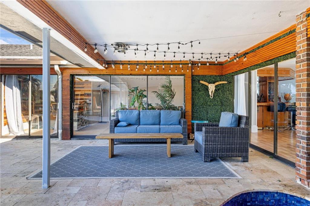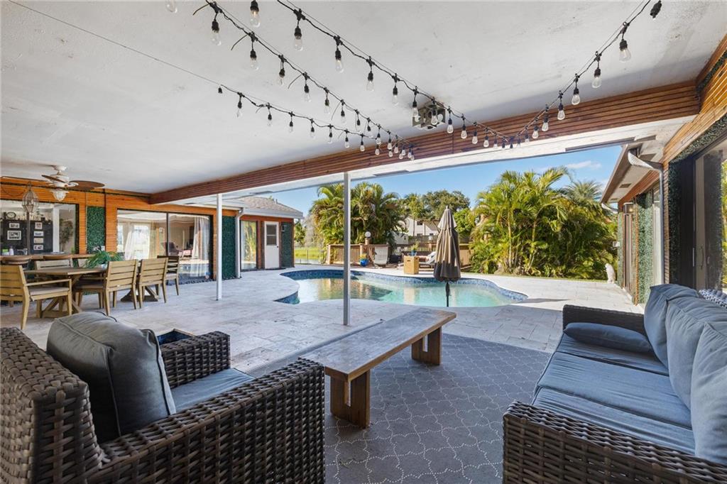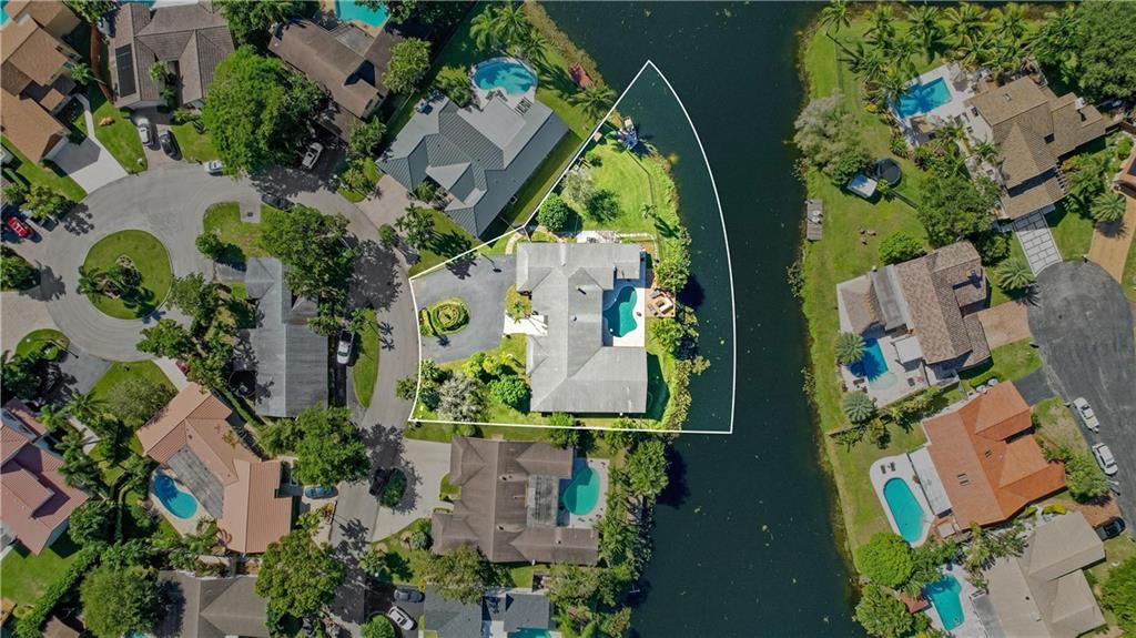Welcome home! To this 5 bedroom, 3 bathroom single family pool home nestled towards the end of the road with only 20 homes leading to a cul d sac situated on over a 27,000 sqft lot with around 180 ft of water. A perfect 10 for entertaining! Upon entrance 7 large windows deliver natural light and open the view of a free form pool and around 800 sqft of outdoor partially covered living area. This home offers 2 cozy docks with amazing Water views built in bar lounge area, living room off of kitchen, formal dining room, 5th bedroom currently being used as game room / office. You must see this home to appreciate it.