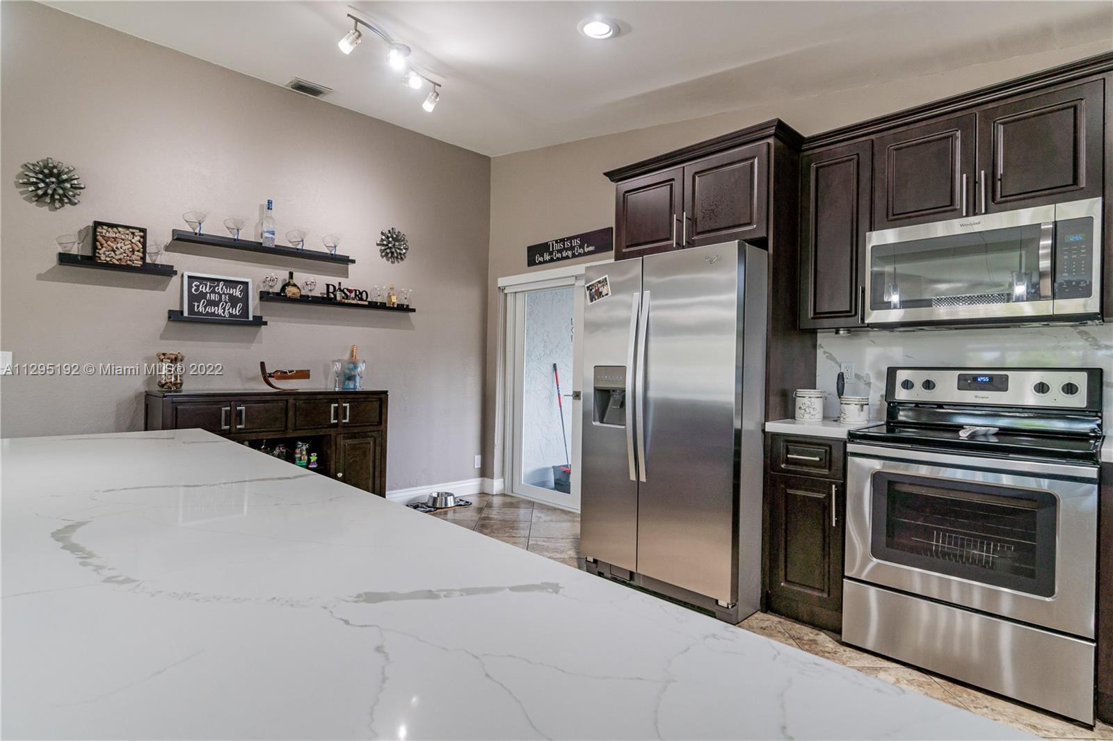 OPEN HOUSE IS CANCELLED .Fully Updated Single Family Corner Lot Home 3 bedrooms 2 fully updated Bathrooms plus Extra Den can be used as an exercise room/ office. Home has an Open floor plan & an extra-large size kitchen.ROOF is 5 year old & has Impact windows & door:Save Insurance $. You will get constant vitamin D as direction of house & corner lot is the best advantage. Quartz countertop ,Modern style backsplash in kitchen,New lighting fixtures in Kitchen,Dining & Living room. Washer-Dryer is 1 year old. Shadow box fence installed in 2021.Home has a covered extra-large Patio which can be your Florida room. Perfect to enjoy Florida lifestyle. Lots of space for a pool & gardening.Location is great Very LOW HOA & flexible.