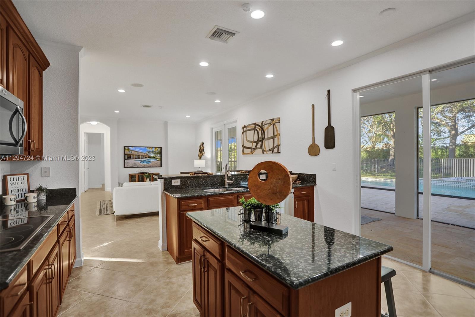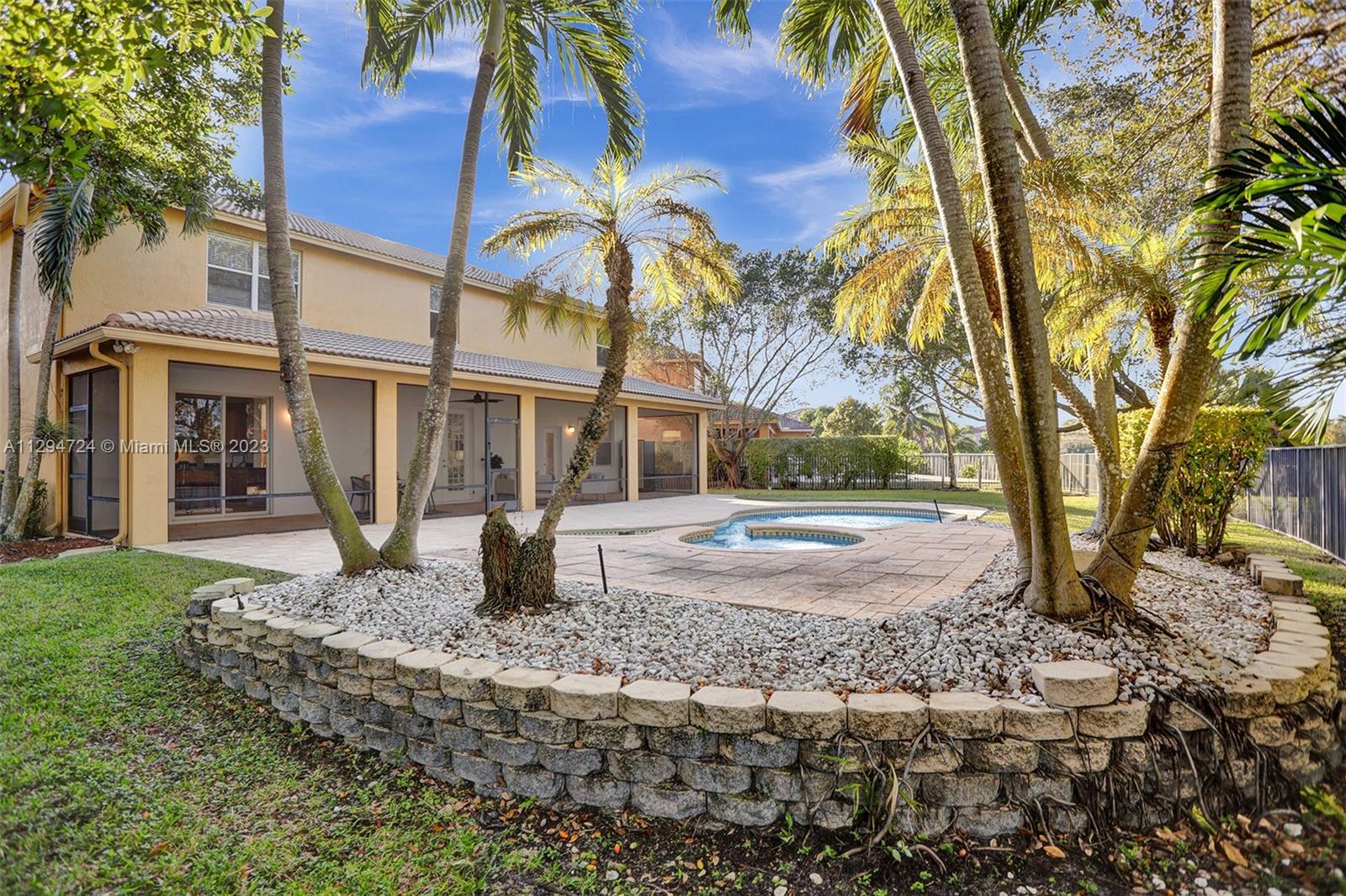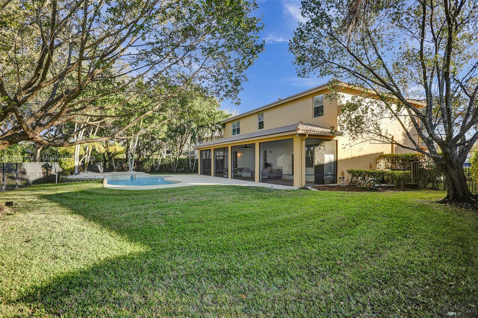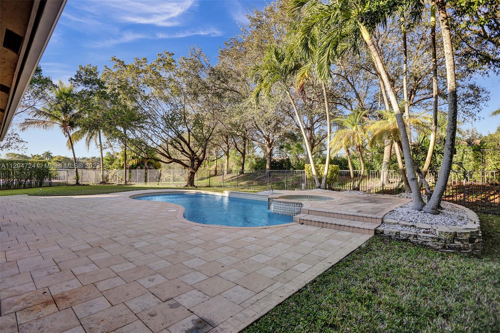 Beautiful home in a cul de-sac in the great community of Isles at Weston with 5 bedrooms and 3 1/2 baths. Freshly painted in white. Home shows likw model with porcelain tile downstairs and modern flooring upstairs. Large kitchen with granite, stainless steel appliances and wood cabinets. Enjoy the outdoors with oversized covered screened patio and nice pool with spa and huge yard to play and enjoy with nice views of lake. Walking distance to top rated schools. Clubhouse is like a resort and has just been remodeled with state of the art gym and is very nice with pool, basketball court, volleyball, playground and more. HOA incl. WIFI, cable, common area, security and landscape around lake.