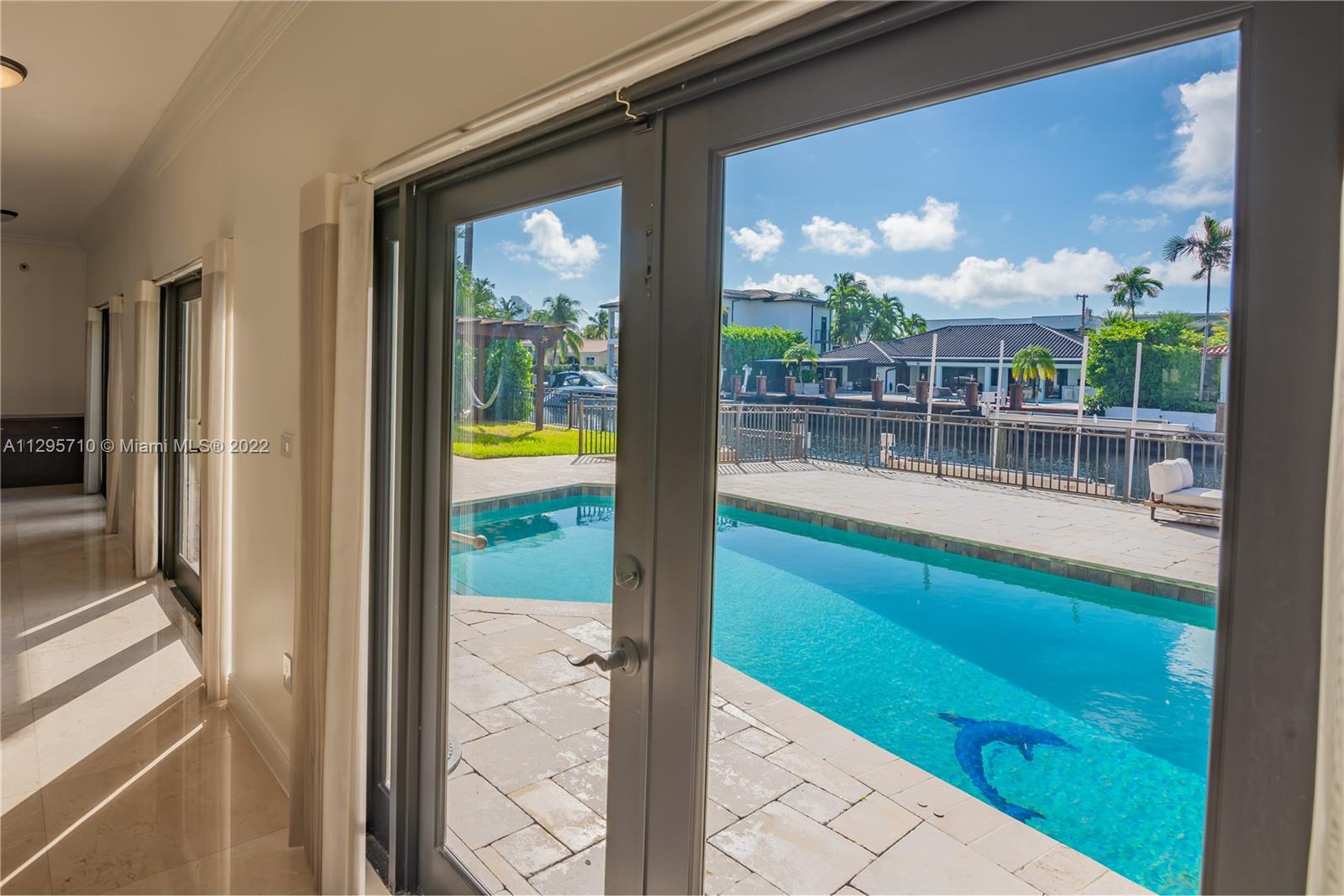 Beautiful updated waterfront home w/ 19FT high ceilings located in 24/7guard gated community of Eastern Shores. Upstairs has beautiful wood floors. Huge master suite overlooking pool & waterway, plus 3 spacious bedrooms, home theater, office/playroom & storage room. Downstairs has marble floors throughout, including 3 bedrooms. Many upgrades - Impact windows & doors, generator, top of the line Gourmet Kitchen, including gas-wolf stove oven. Sub-Zero refrigerator freezer, Built-In Miele Nespresso coffee maker & wine cooler. Beautiful Pool Patio area has gazebo/grass area. 80 ft on the water with 21,000 lb. boat lift in place. Direct ocean access with no fixed bridges to Haulover Inlet. 2 Car garage, Oversized circular driveway. Walk to shopping, restaurants, iPic theater parks & the beach.