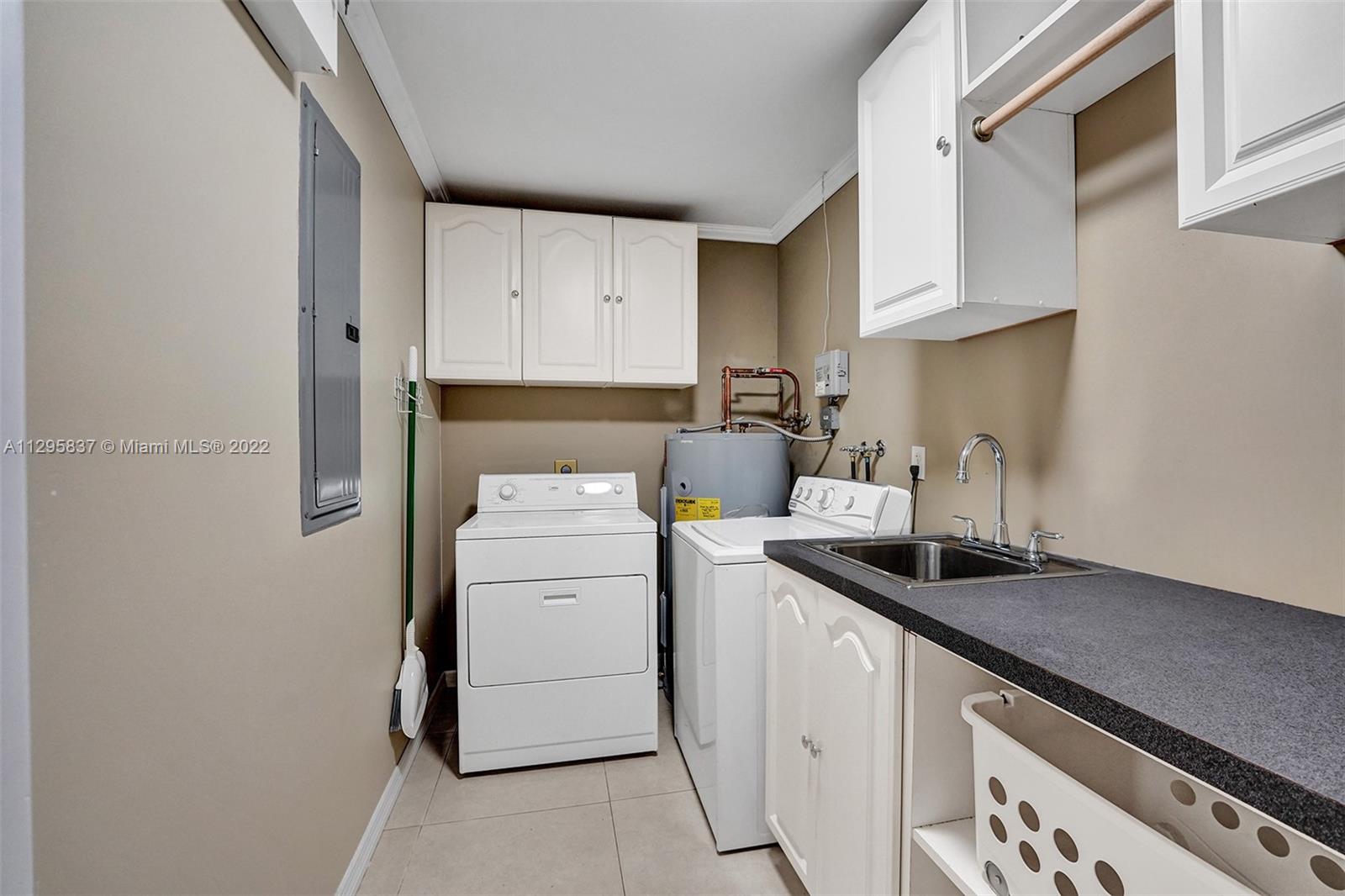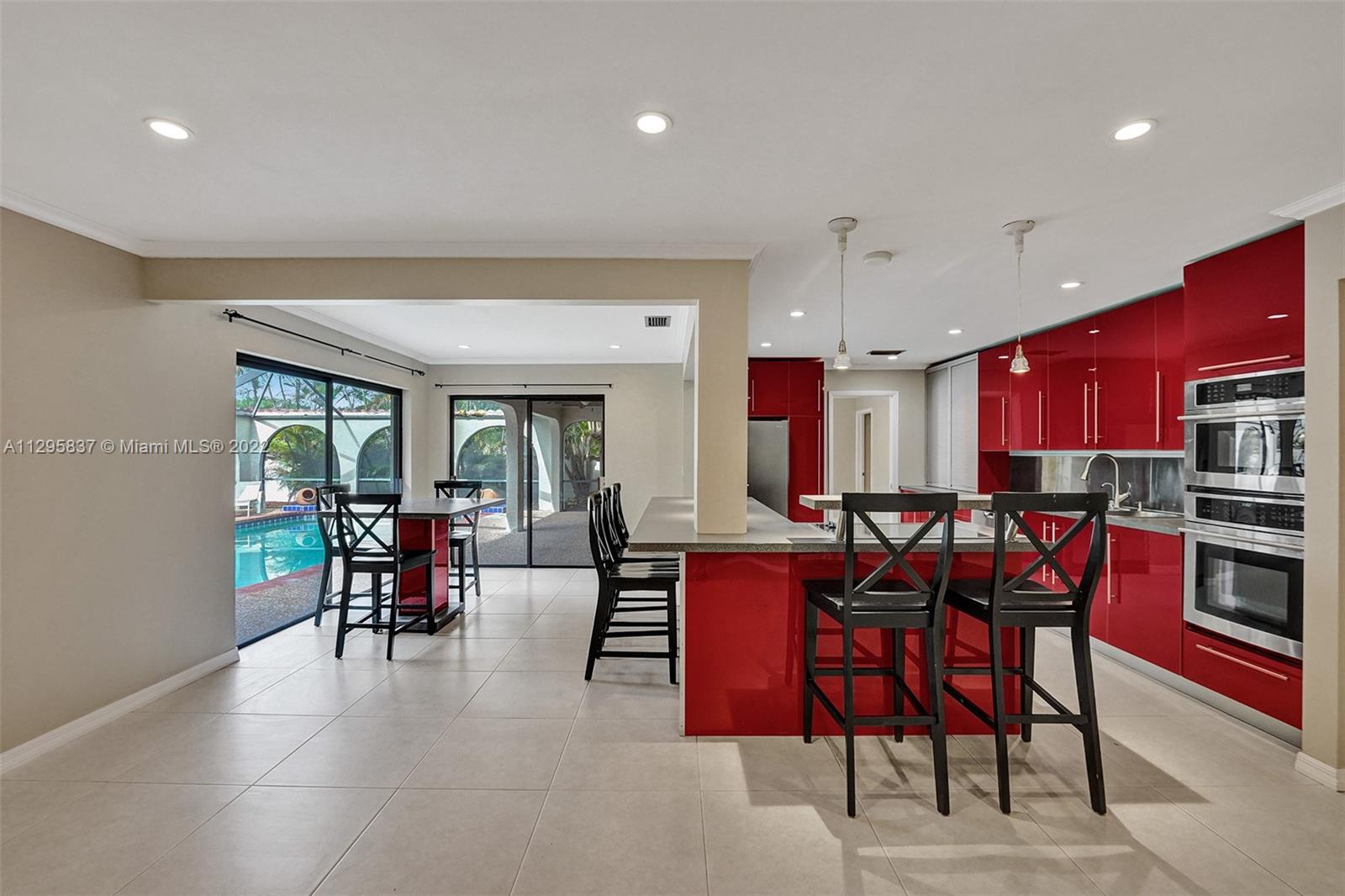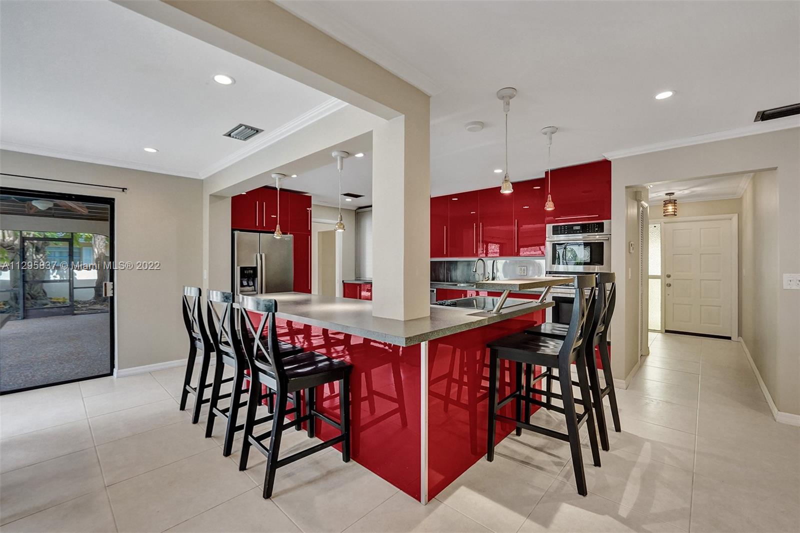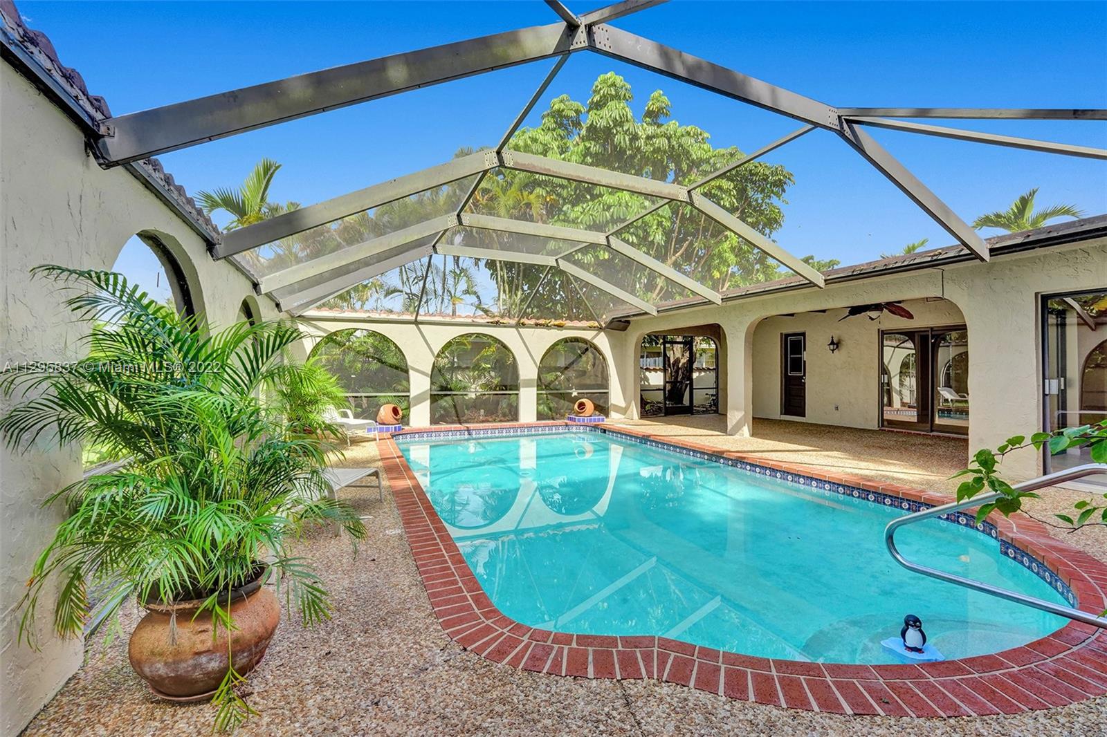 This spacious 4/2 with 2 car garage is located on a LARGE CORNER LOT & features a PEACEFUL SCREENED POOL area with ARCHED CONCRETE WALLS and a CONCRETE PRIVACY FENCE. Beautiful MODERN STYLE KITCHEN with COOKING ISLAND and STAINLESS STEEL APPLIANCES. SPLIT FLOOR PLAN with two living areas with SEPARATE SPACE FOR DINING OR OFFICE. SPACIOUS MASTER BEDROOM with walk-in closet. Master cabana bath has DUAL SINKS and a LARGE TUB/SHOWER. Guest bedrooms share a BIG CABANA BATHROOM. Kitchen and baths have RECESSED LIGHTING. FRESHLY PAINTED inside. TILE AND NEW WOOD LAMINATE FLOORS THROUGHOUT. INDOOR UTILITY/LAUNDRY ROOM WITH SINK and plenty of storage.