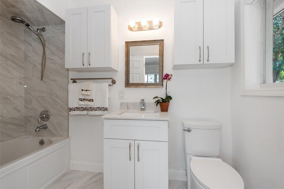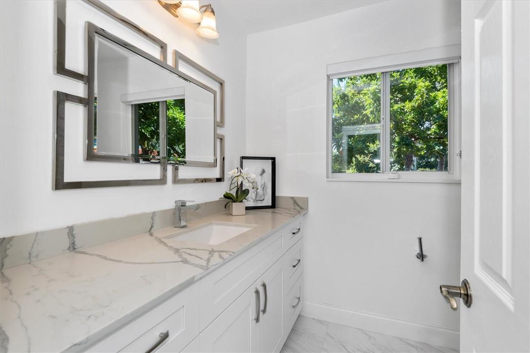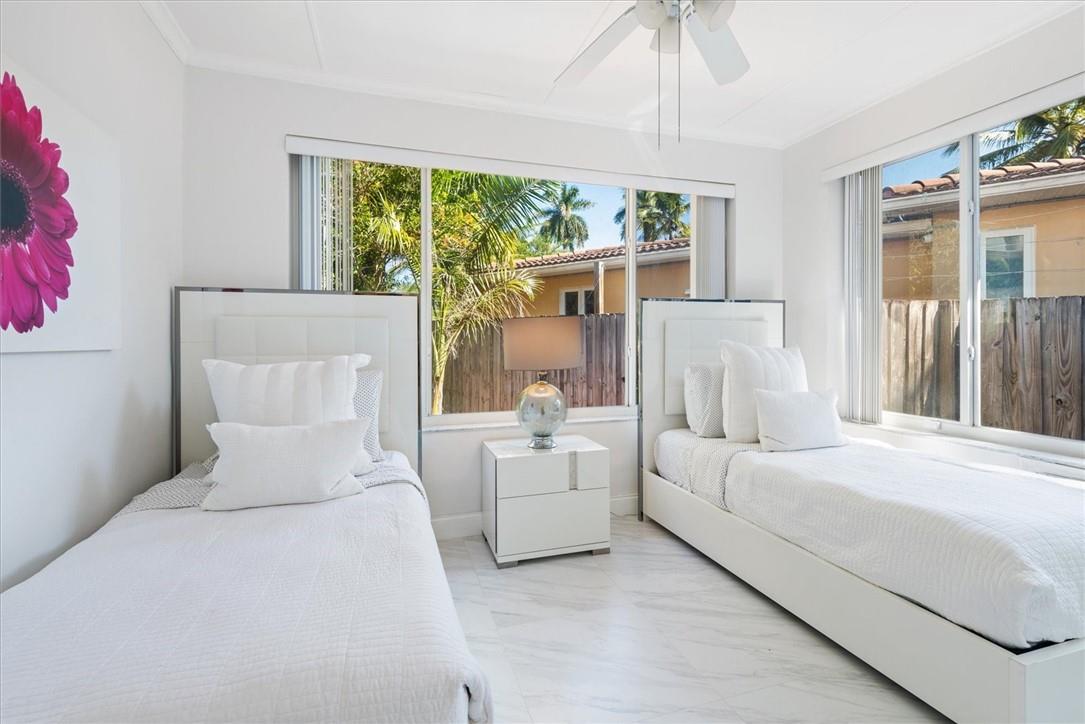 Pride of ownership in this renovated home located on a corner lot. Very well maintained residence featuring a light bright eat in kitchen with garden views, 3 bedrooms, 3 full bathrooms, built in closets, living room, dining room combination and a spacious cozy Florida room that leads to the expansive fenced in backyard for privacy. Mature trees add a warm gracious feel to outdoor areas that surround the property providing an atmosphere perfect for entertaining! White tile flooring throughout. One car garage with storage. Hurricane shutters included. Walking distance to Golf Course and Lake. Just a few minute drive to the ocean, restaurants and airport. A pleasure to show!