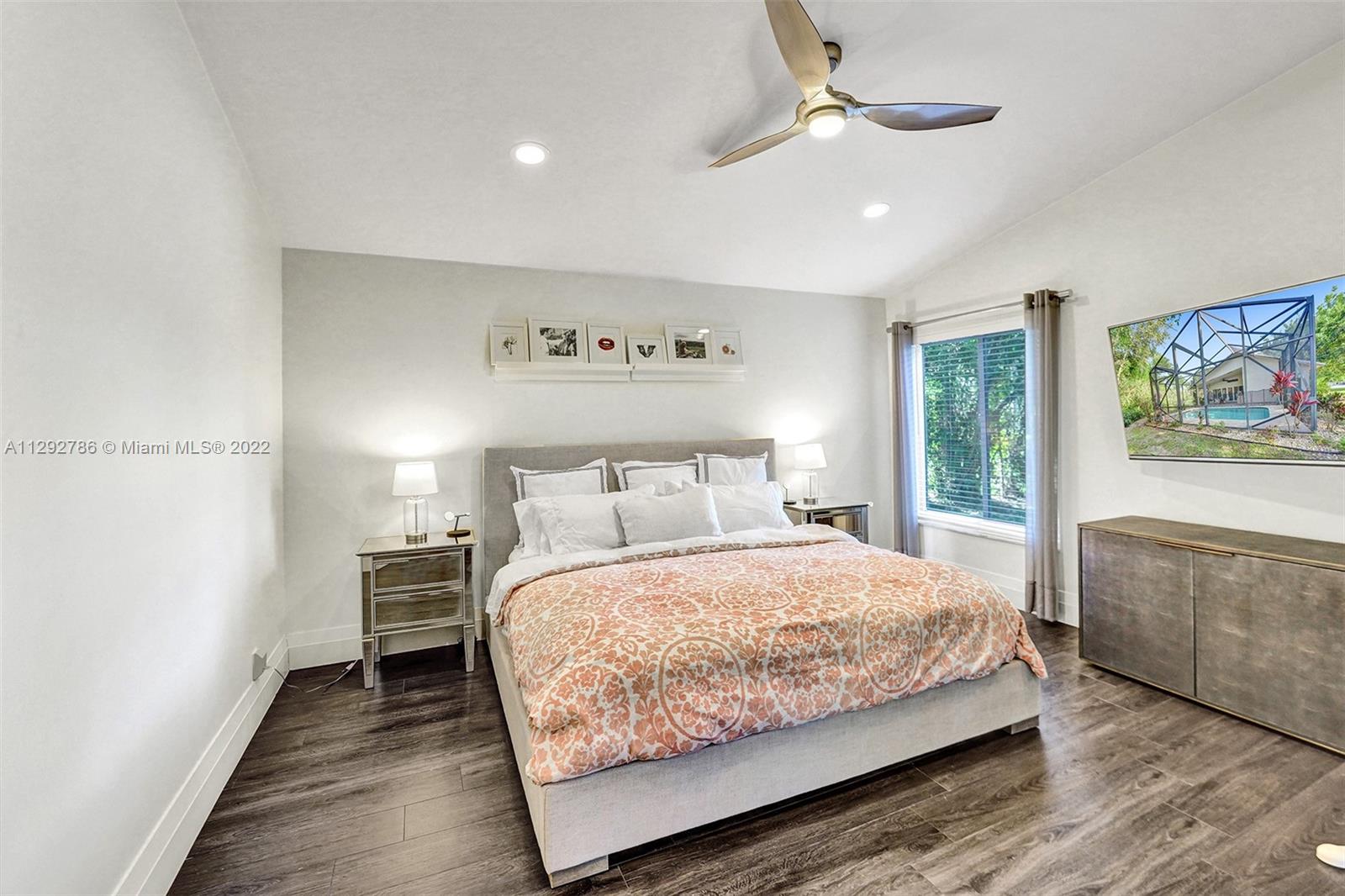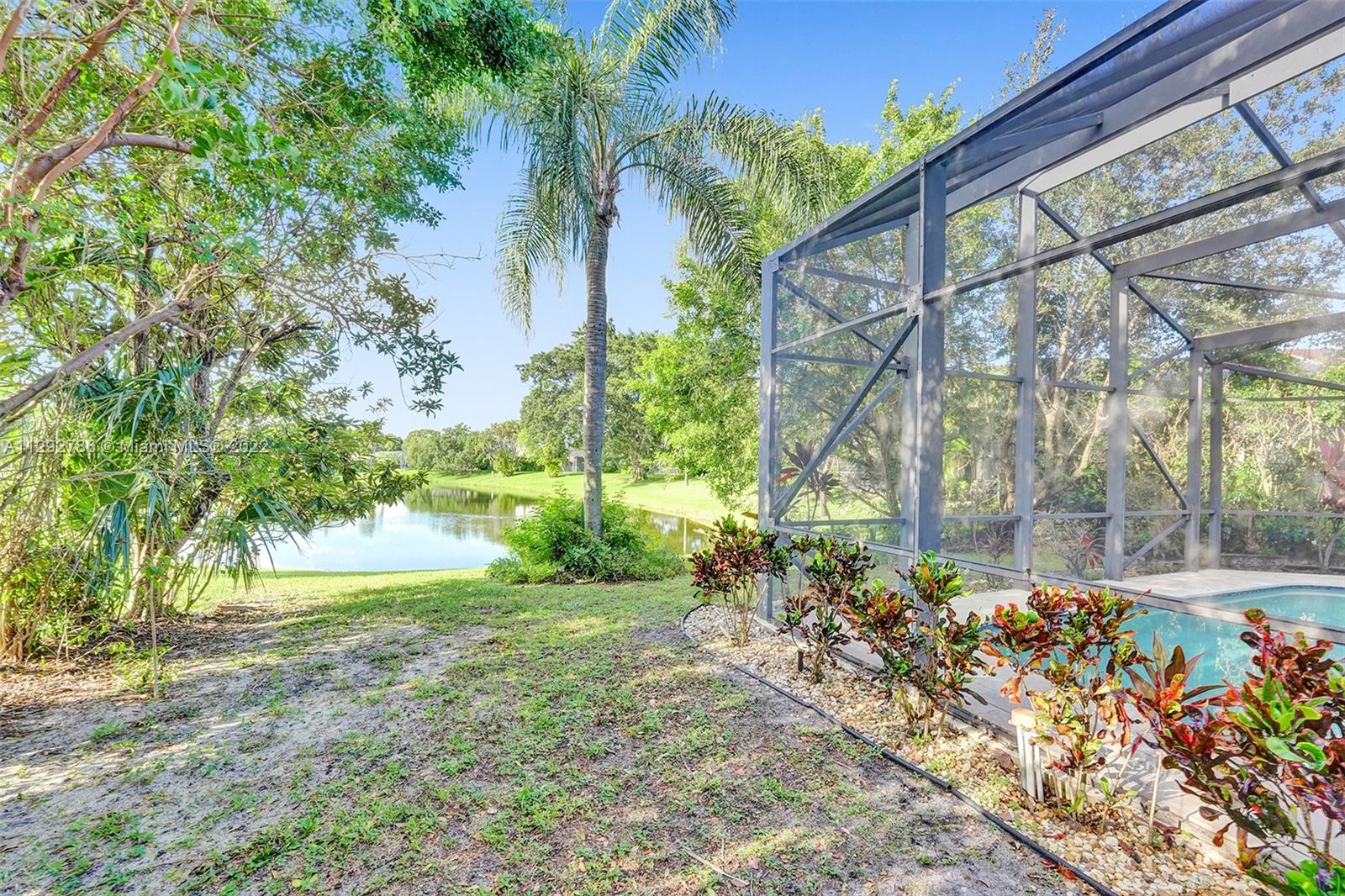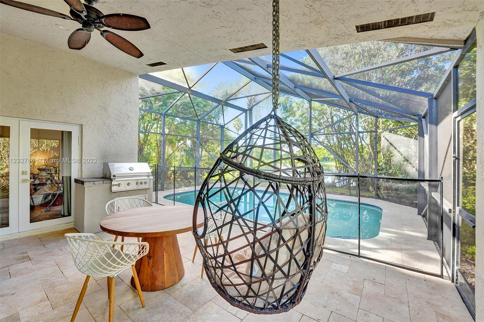 Welcome to Boca Greens Country Club, a non-mandatory golf club membership community. This adorable fully renovated lakefront home with a private screened-in salt water system pool features a custom kitchen, with all ss appliances, marble baths, high-end customized closet systems in all bedrooms, and high-impact windows all around the property. This property is situated on the longest end of the lake with magnificent sunsets. In addition to the view and upgrades, this property has a beautiful and functional side yard which is perfect for kids and pets. Basic cable TV and fiber internet are included in the low HOA fees. Gated community. The roof is 2018.