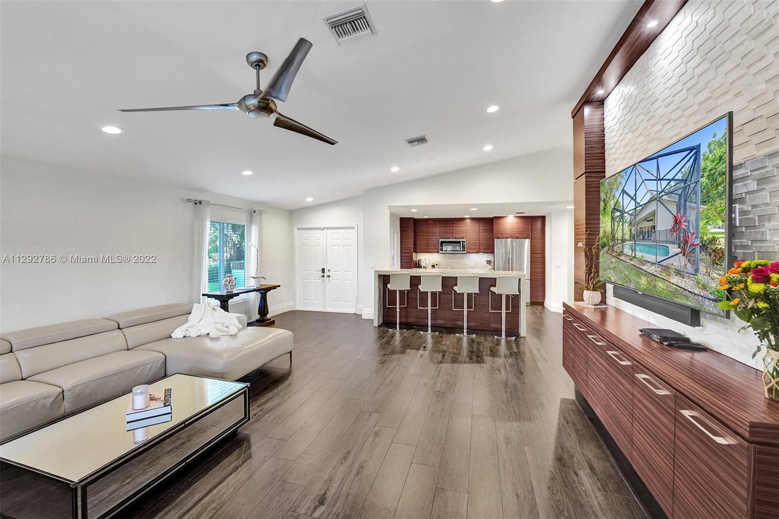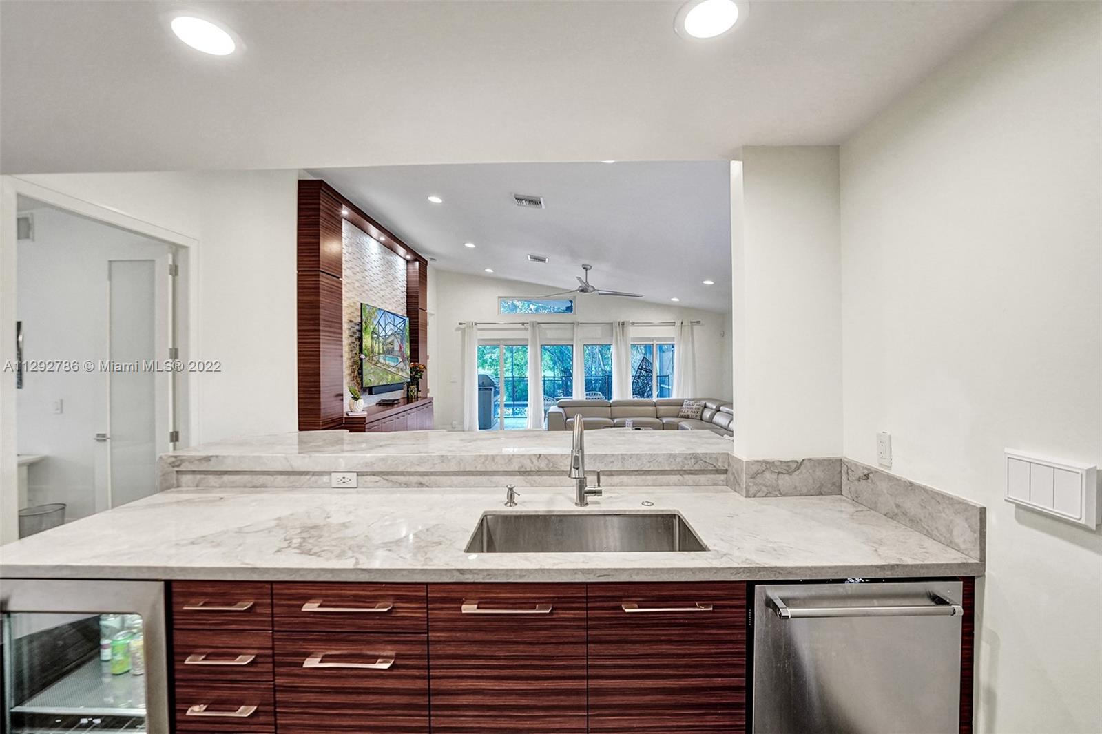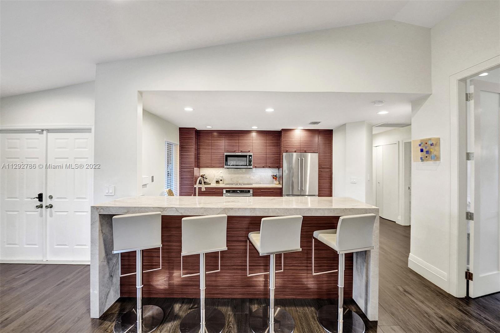 Welcome to Boca Greens Country Club, a non-mandatory golf club membership community. This adorable fully renovated lakefront home with a private screened-in salt water system pool features a custom kitchen, with all ss appliances, marble baths, high-end customized closet systems in all bedrooms, and high-impact windows all around the property. This property is situated on the longest end of the lake with magnificent sunsets. In addition to the view and upgrades, this property has a beautiful and functional side yard which is perfect for kids and pets. Basic cable TV and fiber internet are included in the low HOA fees. Gated community. The roof is 2018.