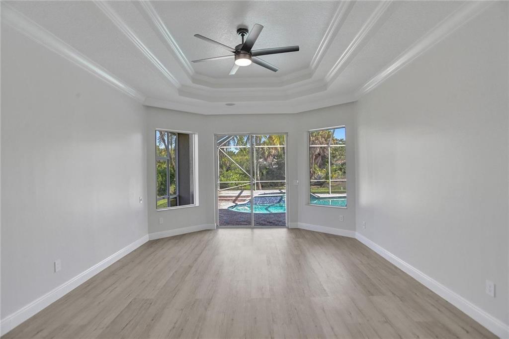 Location! 3 mins from highway located in the exclusive double-gated "The Falls" sub-division of Heron Bay. Zoned for all the desired Parkland Schools. Single floor tri-split layout with a beautiful water and waterfall view. Home was just updated and move-in ready for next owner. Smart LED lighting throughout; travertine floors, real fireplace; central vac; built-out office; very private screened back yard, heated pool and spa; fenced pet yard, pre-wired in-ceiling speakers; renovated kitchen. Large bonus room w/view. Freshly painted with all new light switches, outlets, door hardware, fans, light fixtures, master flooring, new bathroom fixtures and other thoughtful additions. Space for an addition to the house. 2 already amazing clubhouses under significant improvements and renovations.