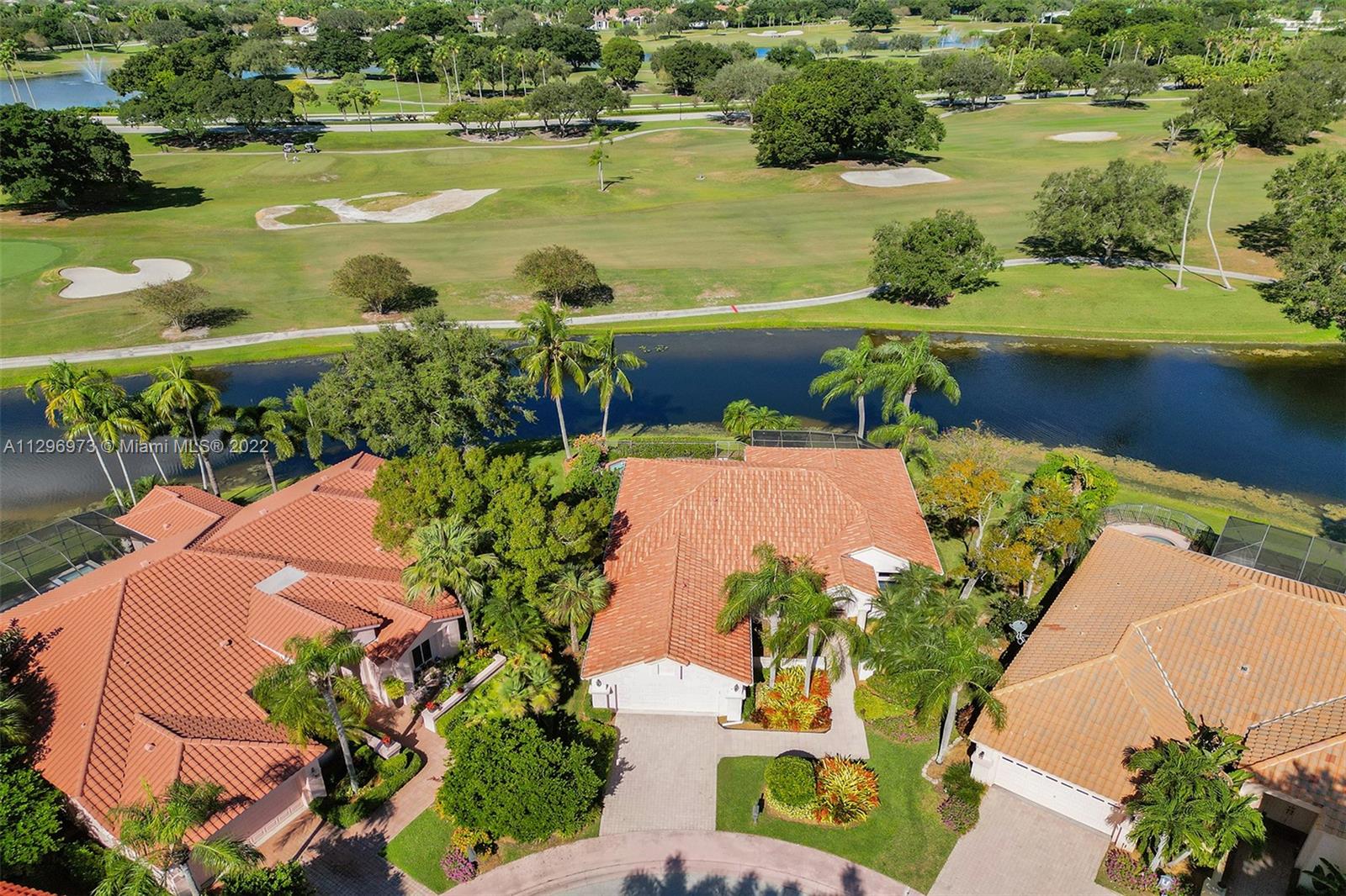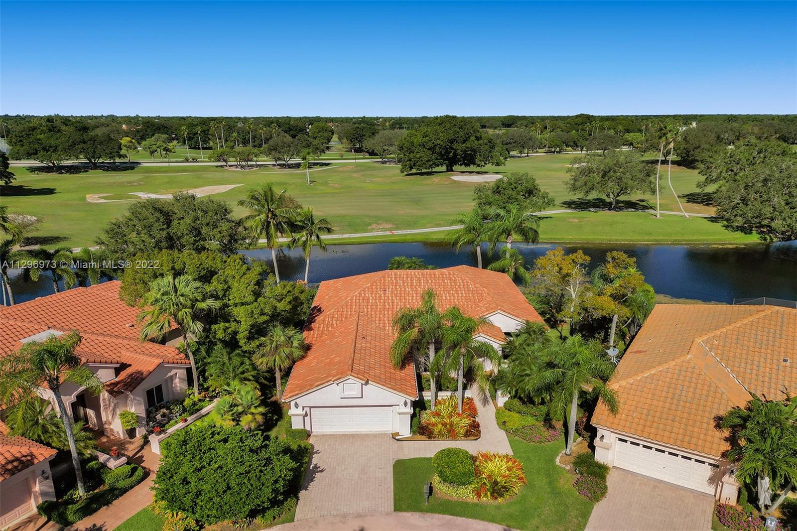 FIRST TIME ON THE MARKET! Absolutely the best waterfront and golf view property! 3 Bedroom, 3 bath home on a premier oversized point lot with spectacular endless lake and golf course views! Located in "The Pointe" of the prestigious Weston Hills Country Club and perfectly placed on the bottom of a cul-du-sac with a paver driveway and lush landscaping. Numerous features include: fantastic open floor plan with foyer entry, spacious great room, formal dining room, breakfast area, kitchen with stainless steel appliances, volume ceilings, master bedroom suite with walk-in closet and bath with separate tub & shower, large screened-in patio, and a heated pool with spa, NEWER ROOF and accordion hurricane shutters! Must See!! Maintenance includes all lawn/landscape care and common areas.
