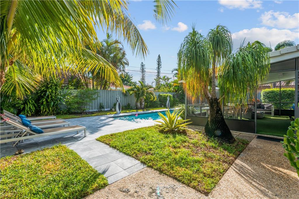 This property is a gem! It features 3 bedrooms, 2 bathrooms, a heated salt water pool and fully fenced gorgeous private tropical oasis backyard with an abundance of tropical foliage, to include a cabaña. Spacious screened patio with couch and firepit. New roof 2021. AC 2018. Pool 2019. Impact Windows. New wood flooring, Kitchen and bathroom 2019. Circular driveway. Outdoor Storage Room. No HOA! Could be an income generating property - Vacation rental / AirBnb. Third bedroom features a separate entrance, Ensuite bathroom and walk-in closet! Beach is only 1.6 miles away! Great location nearby dining, shopping, schools and much more! This property is a Must See!