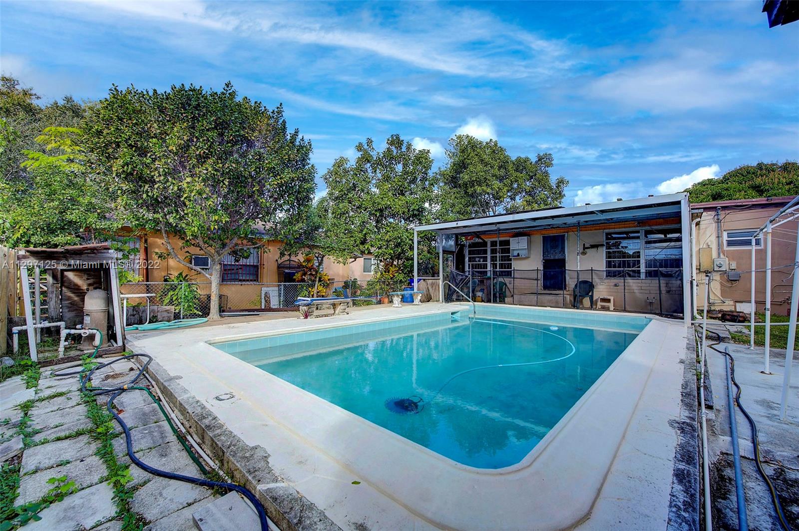BUYER COULDN'T GET FINANCING.BACK ON THE MARKET! 4 bedroom, 2 bath pool home in the heart of North Miami Beach. Property is fully fenced with brand new shadow box fencing in the rear. As you enter the front door to the ample sized living room, you will find two bedrooms to the off the living room with an updated bath. On the other side of the home is the kitchen with stainless steel appliances and dark wood cabinets with light countertops. Adjacent to the kitchen is another bedroom with an attached updated bathroom. The home has an separate entrance in-law quarters off the side of the home. To the rear of the home is a large Florida room which leads out to the backyard and pool. The rear pool area has a utility shed along with many fruit trees and a new shadow box fence for privacy.
