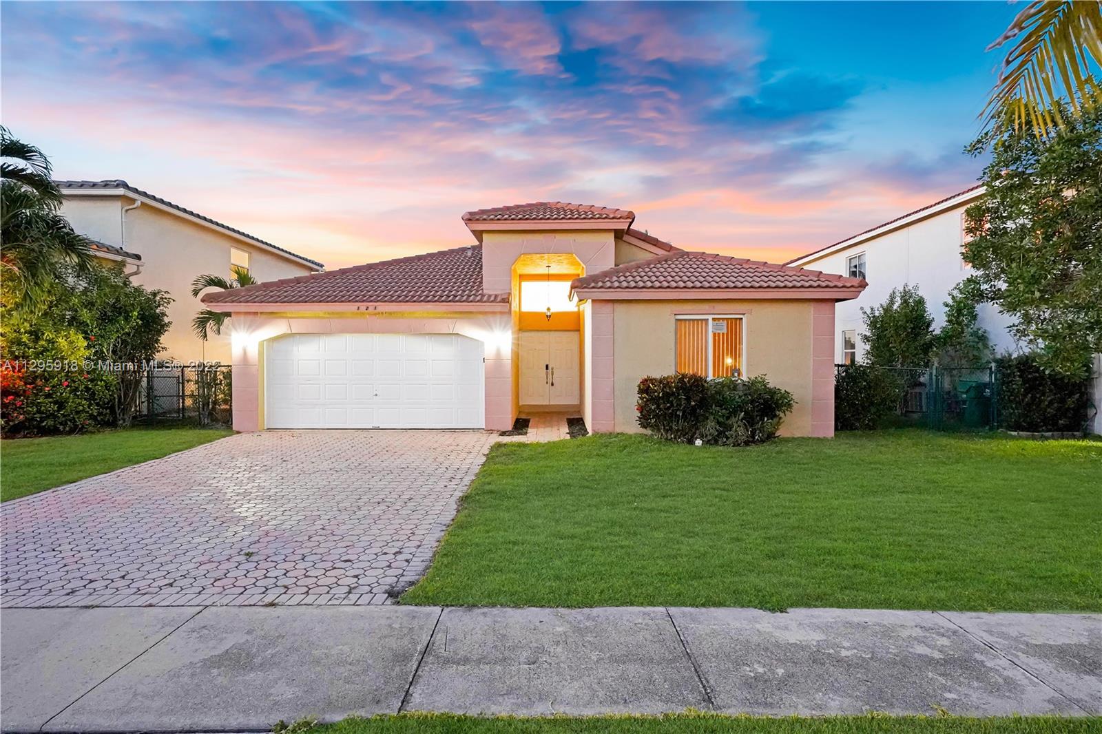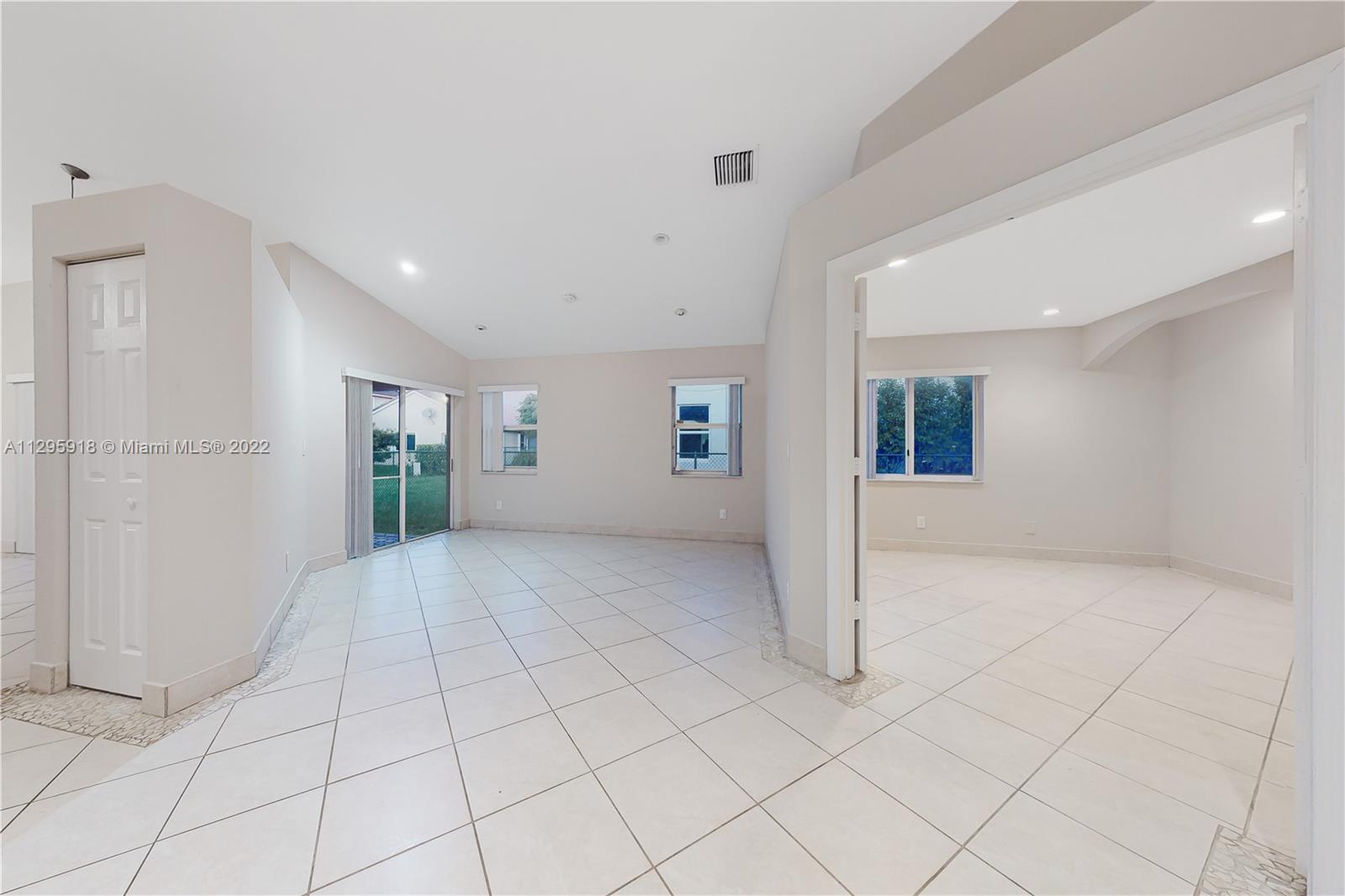 This gorgeous 3 bedroom, 2 bathroom home is ready for you to call home! Offers a lovely layout with beautiful living space, vaulted ceilings, spacious bedrooms, wonderful kitchen with ample cabinet and counterspace, stainless steel appliances and dining area, 2-car garage with washer/dryer hookup and a fabulous backyard with a serene lakeview. Amazing area where you get the best of both Miami-Dade and Broward county. Nearby you have plenty of shopping plazas where you have supermarkets, restaurants, shops, beauty parlors, gyms, parks, and plenty to do. Also conveniently close to major highways and roads for an easy commute! You do not want to let this opportunity pass you by! *Property is under First Look Initiative, only OWNER OCCUPANT offers will be considered for the first 21 days.