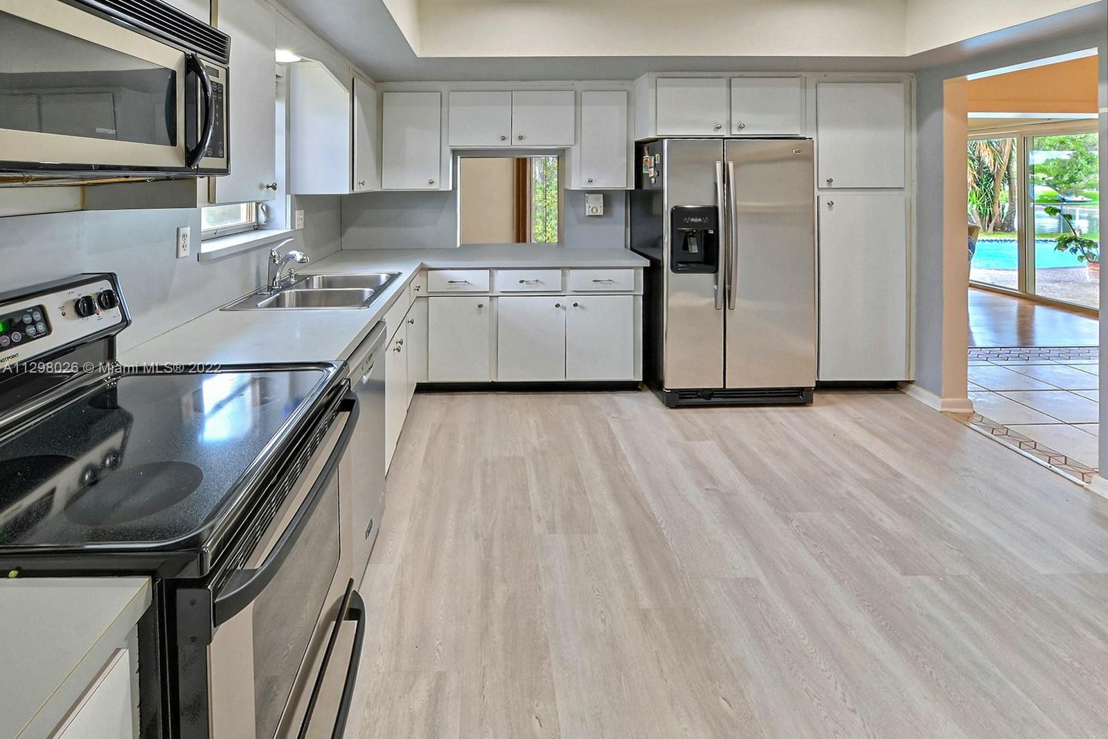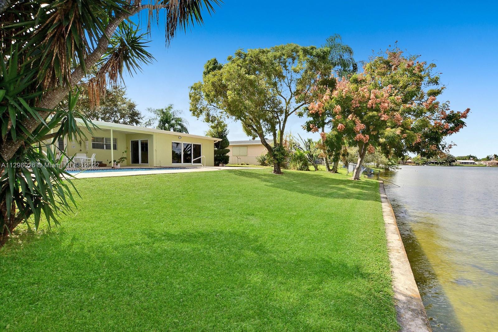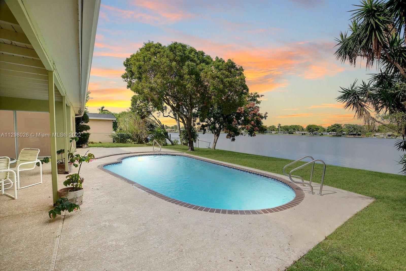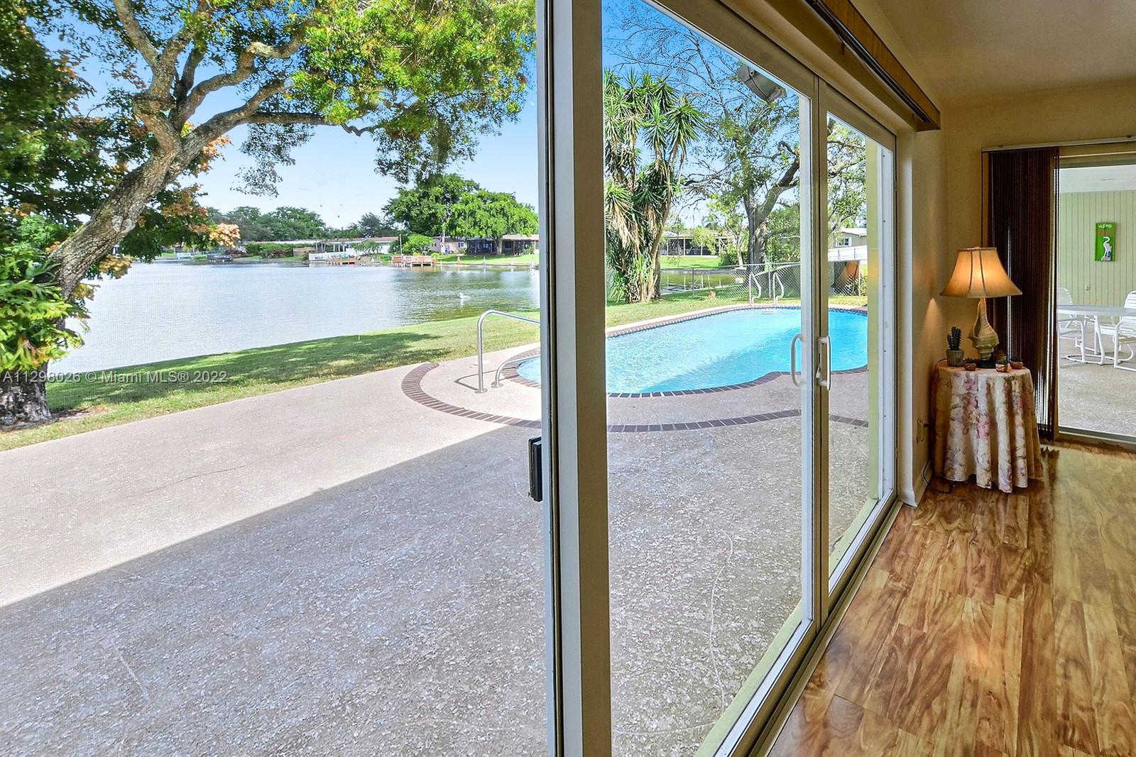 SPECTACULAR WATERFRONT POOL HOME FEATURES 3 BEDS, 2 BATHS + LARGE ENCLOSED FLORIDA PRISTINE WITH LOVELY LONG WATER VIEWS. SET AMID A WELCOMING MATURE TREE LINED STREET IN DESIRABLE PASADENA LAKES SECTION OF PEMBROKE PINES, THIS LOVELY HOME HAS SO MUCH TO OFFER. A LARGE KITCHEN HAS PLENTY OF CABINETS AND STAINLESS STEEL APPLIANCES, TILE/WOOD-LIKE FLOORING THROUGHOUT, CHARMING PAINTED BRICK ACCENT WALL IN THE LIVING ROOM & SPACIOUS FAMILY ROOM WITH IMPACT SLIDERS TO THE POOL & PATIO AREA. THE OVERSIZED LANAI IS PERFECT TO ENJOY OUTDOOR DINING, WHILE TAKING IN SERENE SUNSET VIEWS OVER THE WATER. THE OVERSIZED POOL IS THE PERFECT PLACE TO COOL OFF ON A HOT FLORIDA DAY. DEDICATED LAUNDRY ROOM, SEAWALL AND 1 CAR GARAGE. ALL IN AN INCREDIBLE CENTRAL LOCATION CLOSE TO SHOPS & RESTAURANTS. NO HOA.
