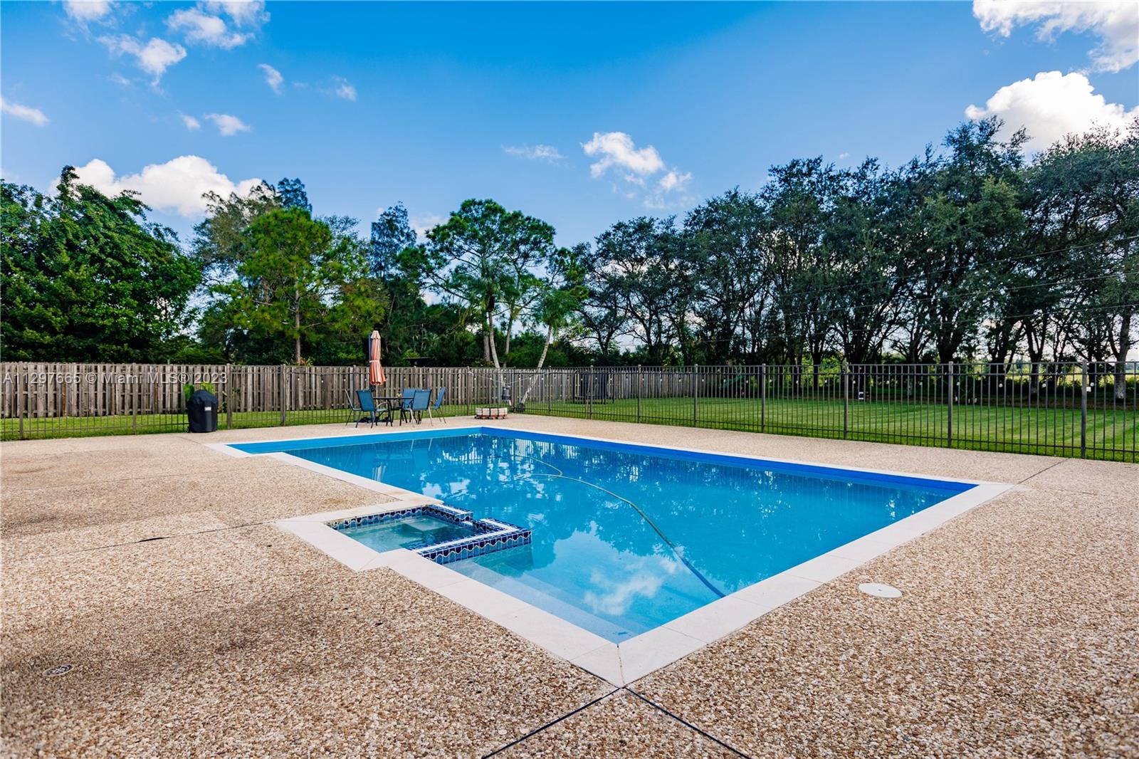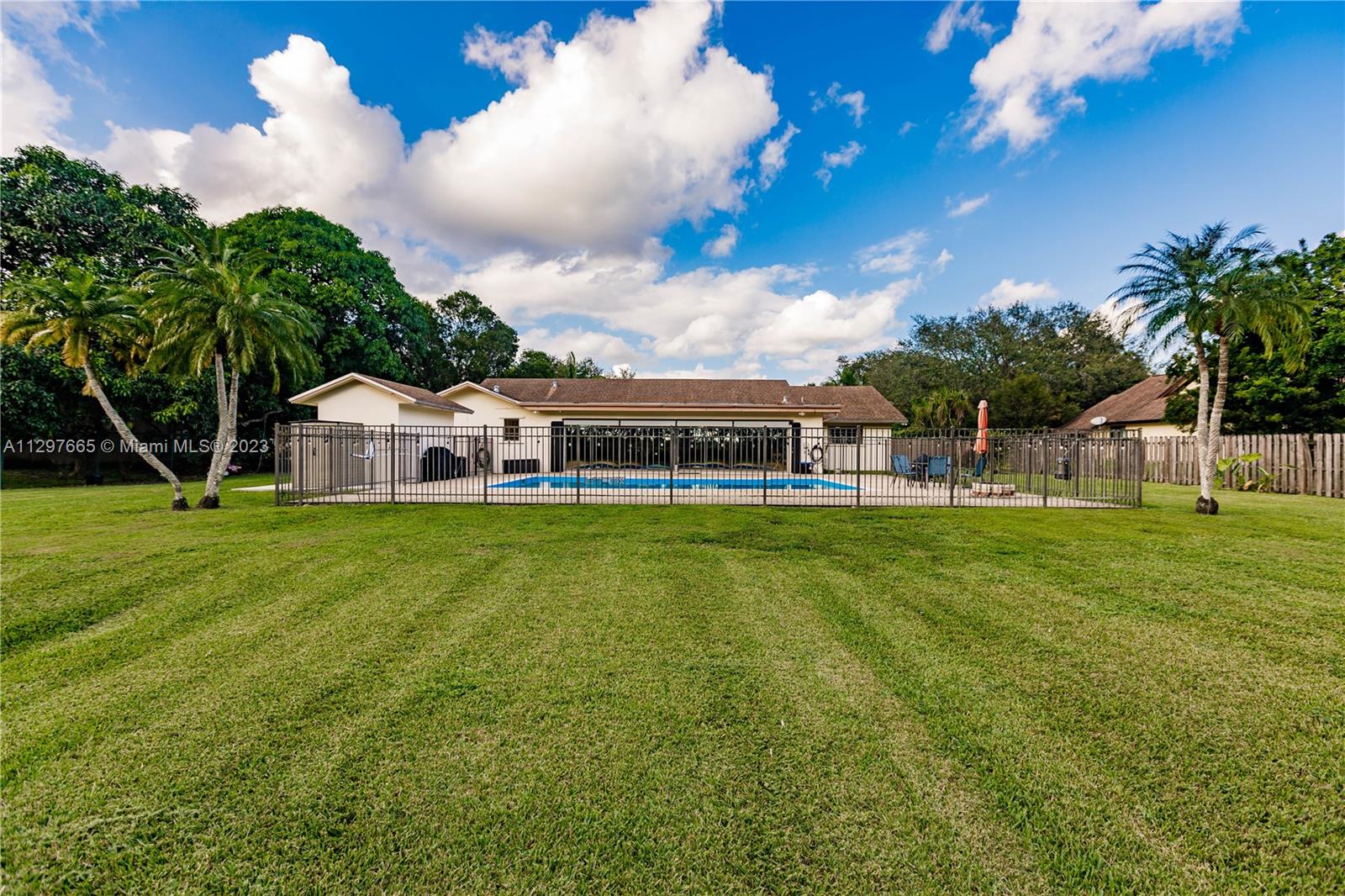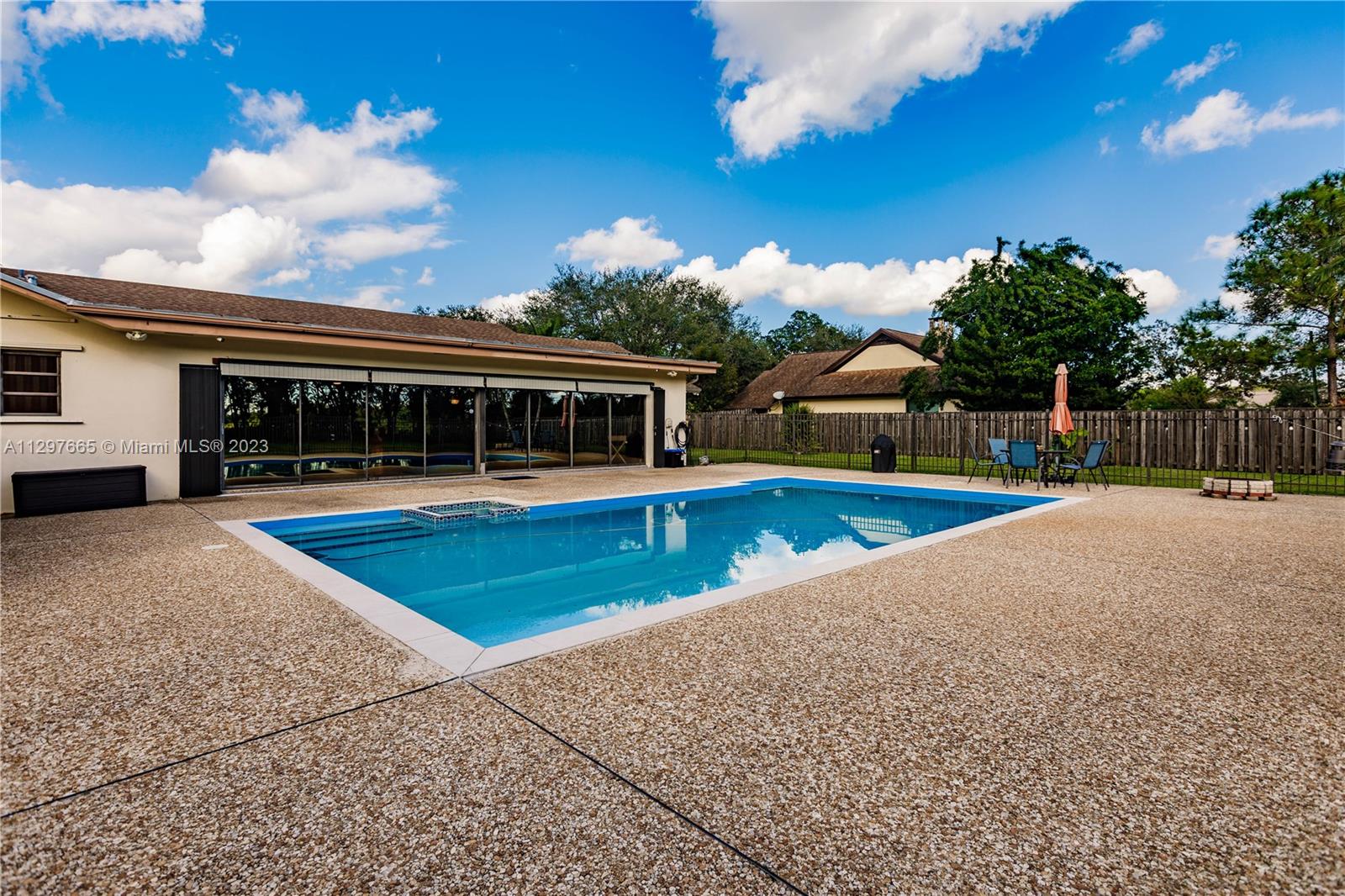 Spacious & spectacular home sitting on over 3/4 acre lot bordering 115 acres of protected wetlands! Beautifully kept split plan w/4 bedrooms, 2.5 bath. Upgraded Kitchen w/new cabinets, quartz countertops, all S.S. Samsung appliances, lots of cabinets, pull-out drawers plus breakfast island. Updated main bathroom, powder room & floors throughout. Formal dining room, separate living room & large florida room w/built-in wet bar & accordion shutters. Mud room, newer washer & dryer, 3 A/C systems, 30 amp outlet for electric car or RV. Attic w/built-in stairs, lights & flooring. Hurricane proof garage door & shutters on front door. Wired for cameras & security system. Large salt water pool & hot tub. Pool child/safety gate in storage. No HOA! R-1 zone for livestock and poultry.