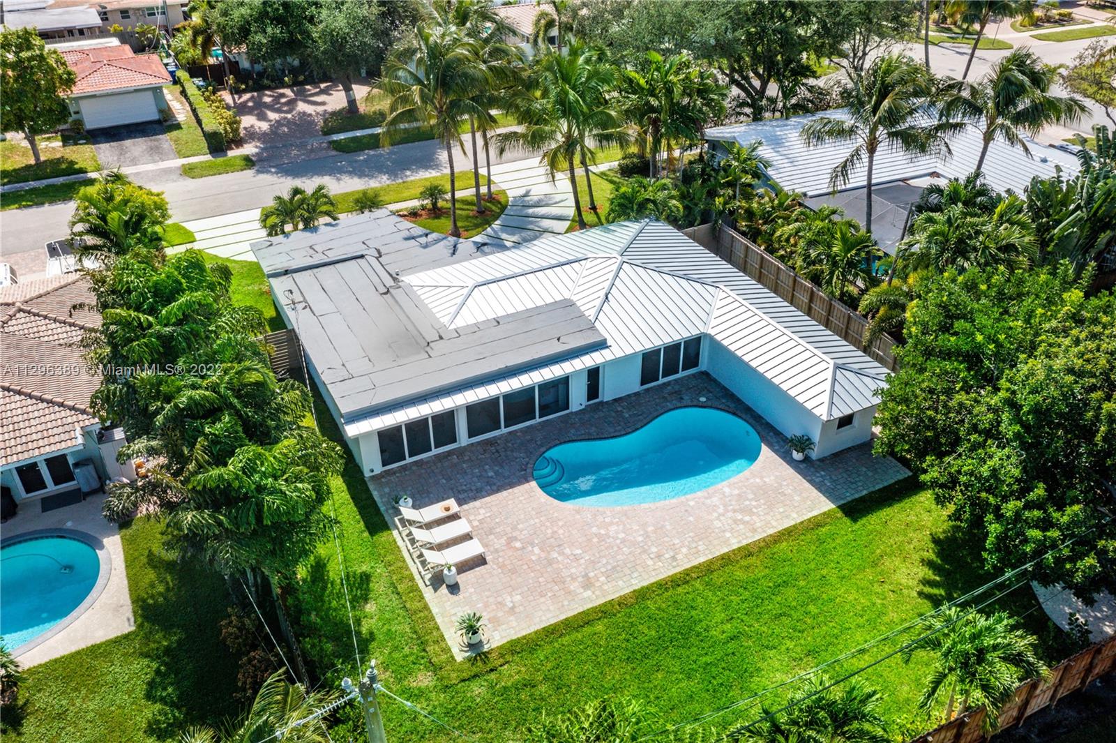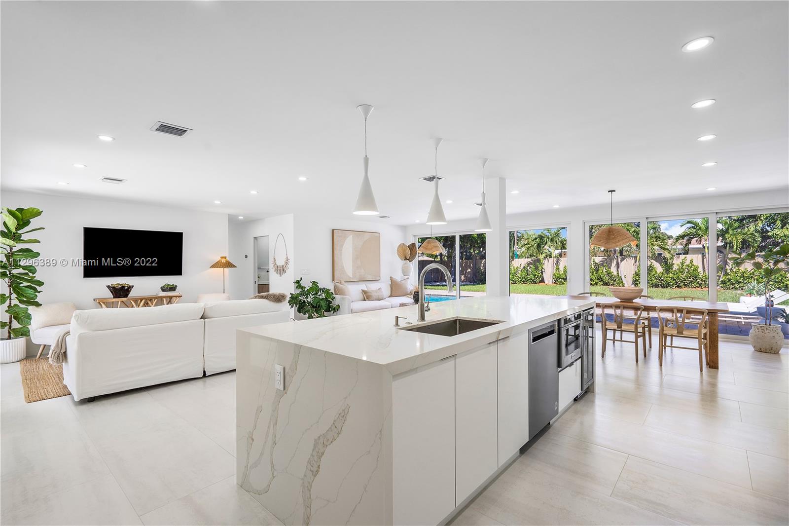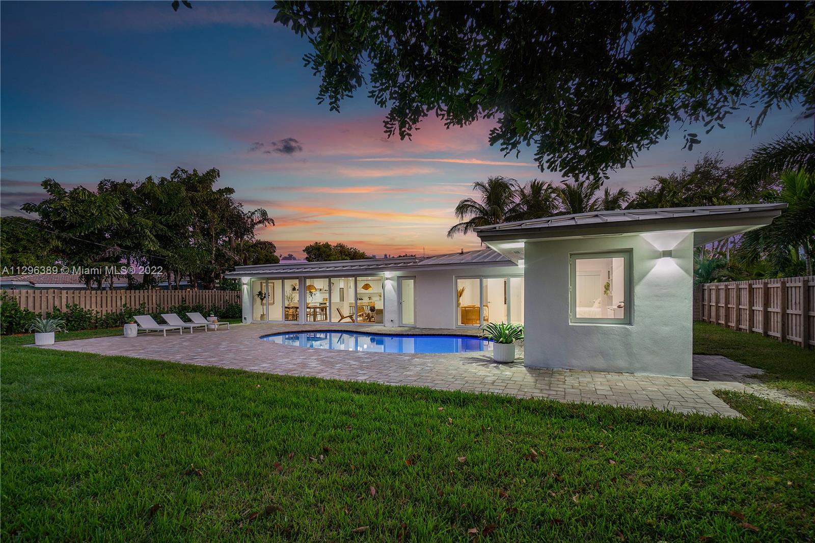 Welcome to this spectacular, fully renovated, single-family home nestled in Imperial Point! You'll fall in love the moment you pull into its’ oversized circular driveway, surrounded by mature coconut palms & new landscaping. The impeccable modern exterior sets the stage to appreciate the extraordinary ambiance created in this thoughtfully designed masterpiece. Beginning with a one-of-a-kind chef’s kitchen oversized waterfall island, top of the line appliances, custom built cabinets + workspace area. The oversized master suite offers a sitting area, extra closet space + a private spa-like bathroom & a walk-in wet room! Designed with multiple all-glass walls that lead you to a private sanctuary with a pool, sun deck, and fully fenced yard. Perfect for entertaining!