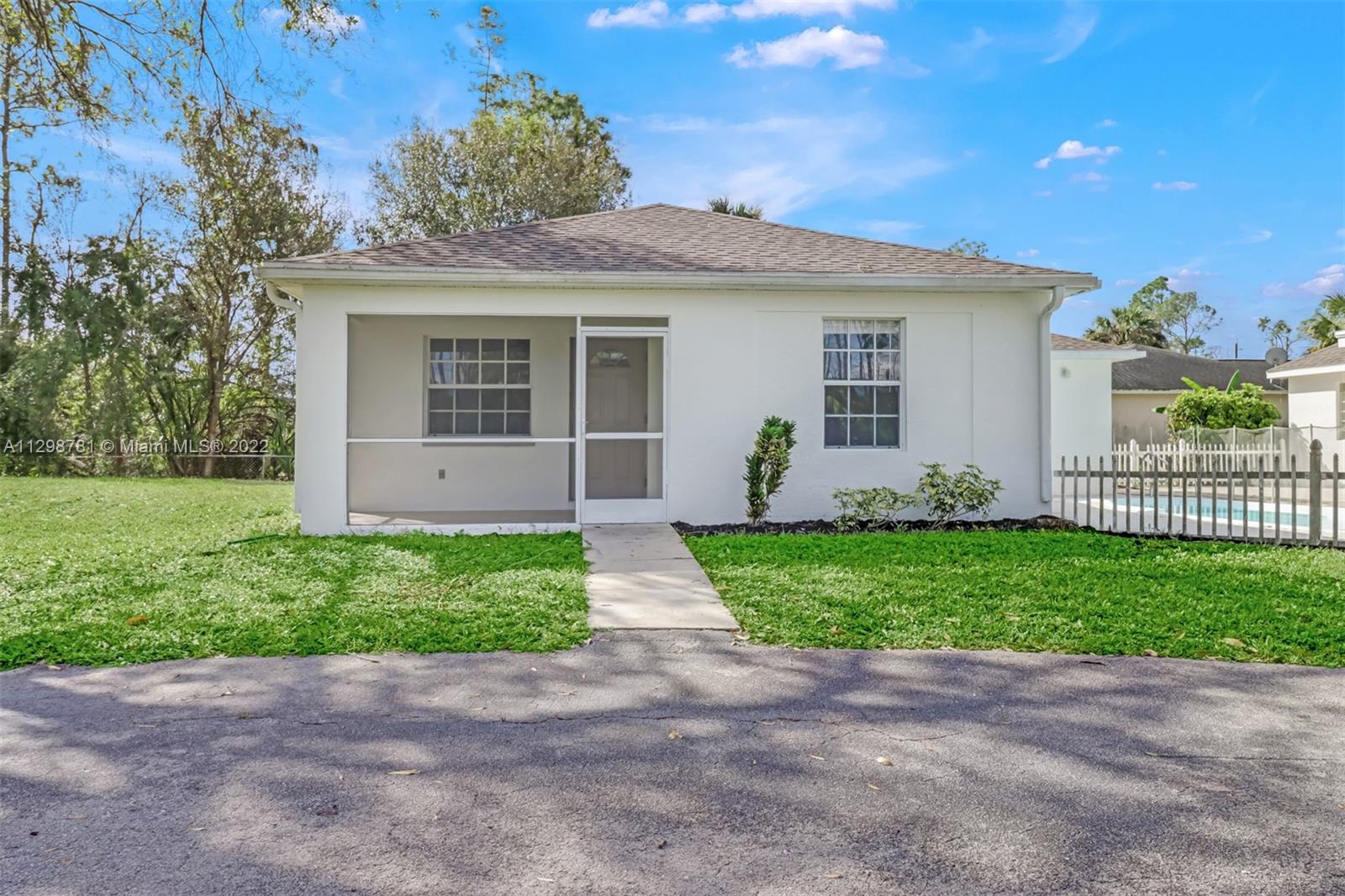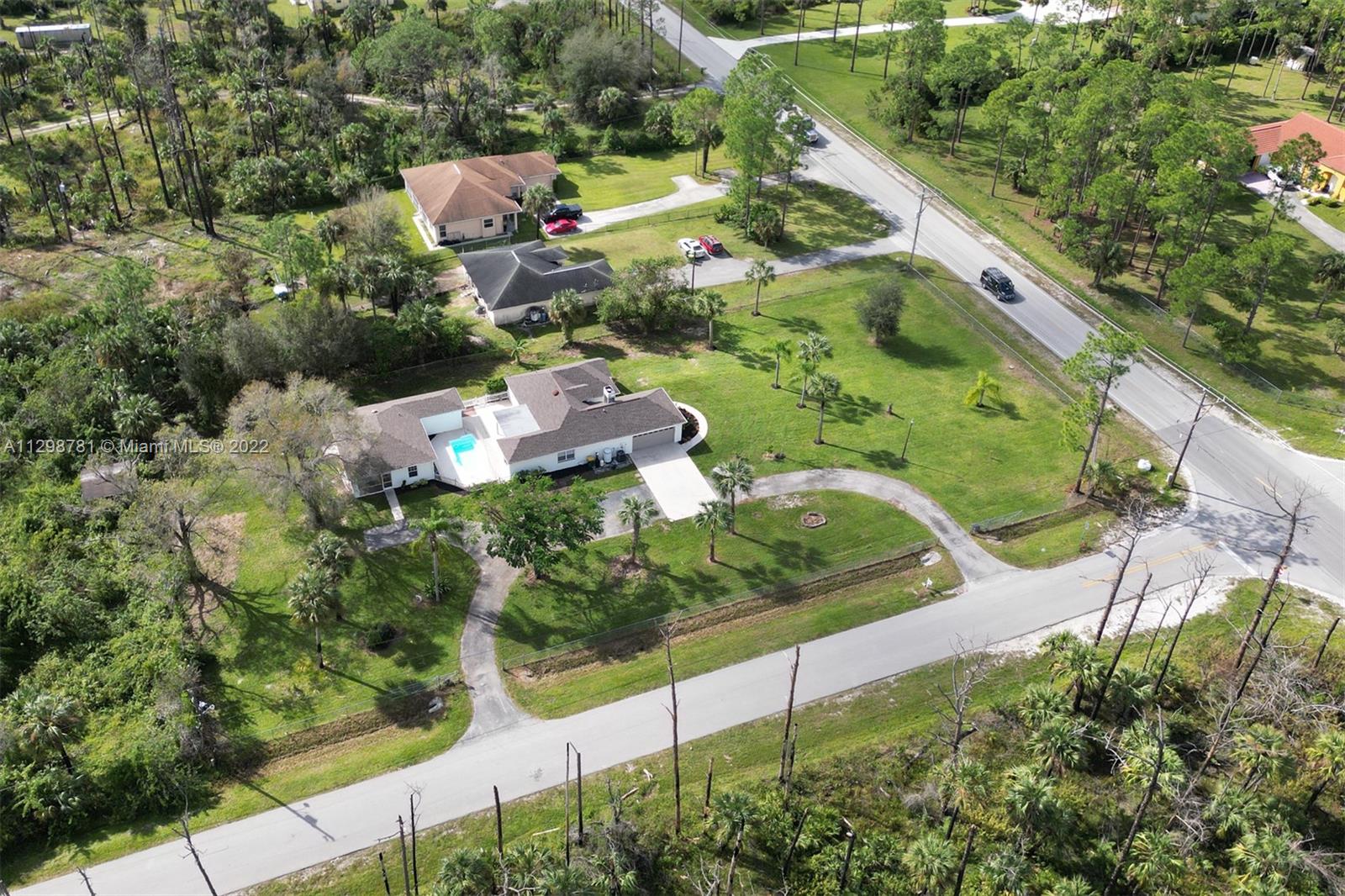 This is a true safe haven in beautiful Naples, Florida! This lovely home sits on a spacious 2.81-acre corner lot and offers the luxury of privacy with the extended front yard that leads to the main entrance, slightly tucked away from the 7+ car driveway. This home is truly a hard-to-find rare and spacious home. This comfortable estate home accommodates for large gatherings with two entrances with ample parking, just a short 5-minute driving distance to a shopping plaza. This comfortable home features a main house and guest suite with a pool and deck space positioned in between. The main suite features 3 bedrooms 2 bathrooms and a den while the smaller suite offers 3 bedrooms and 1 bathroom with the addition of 1 car garage/storage space in back yard.