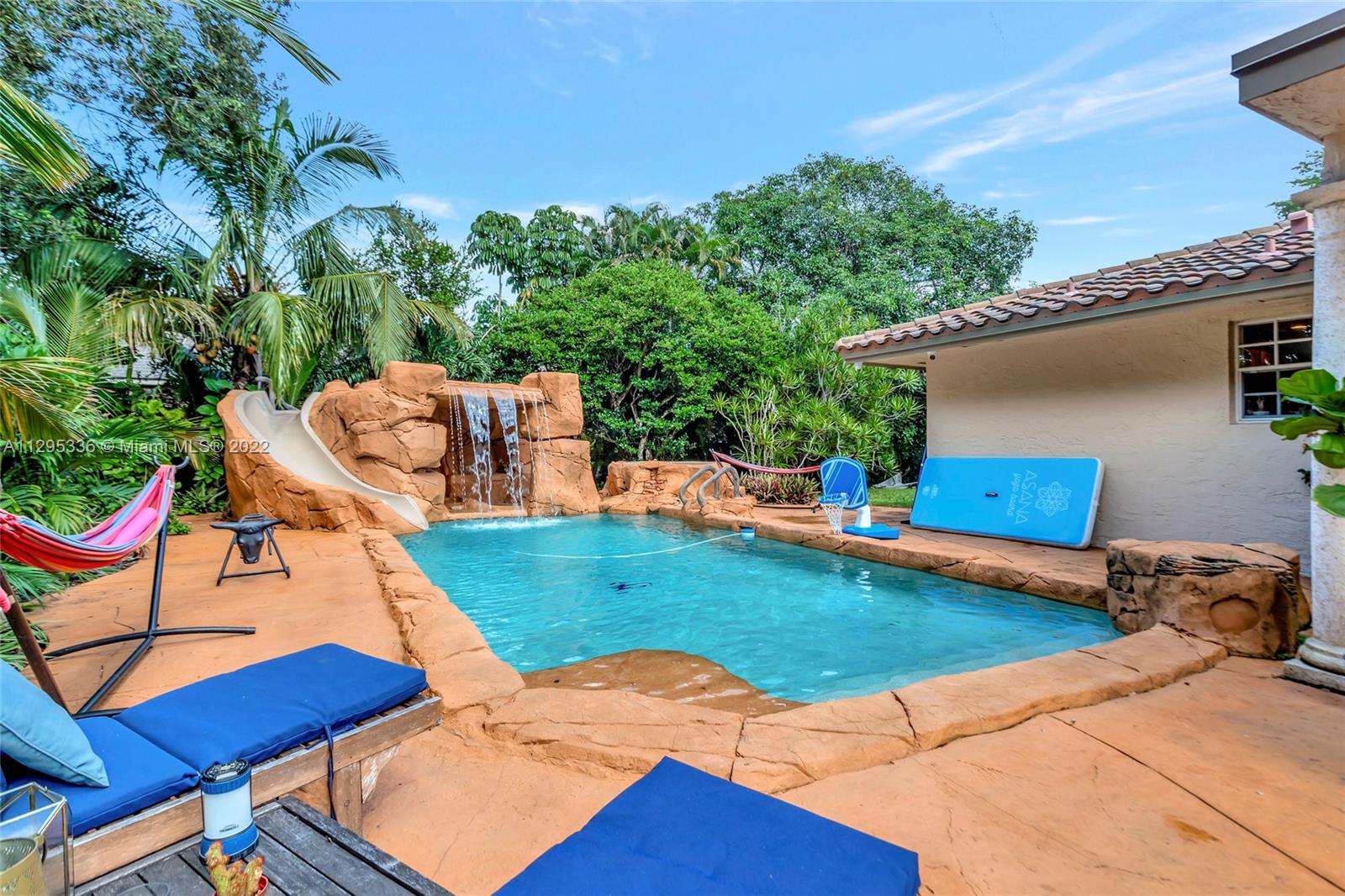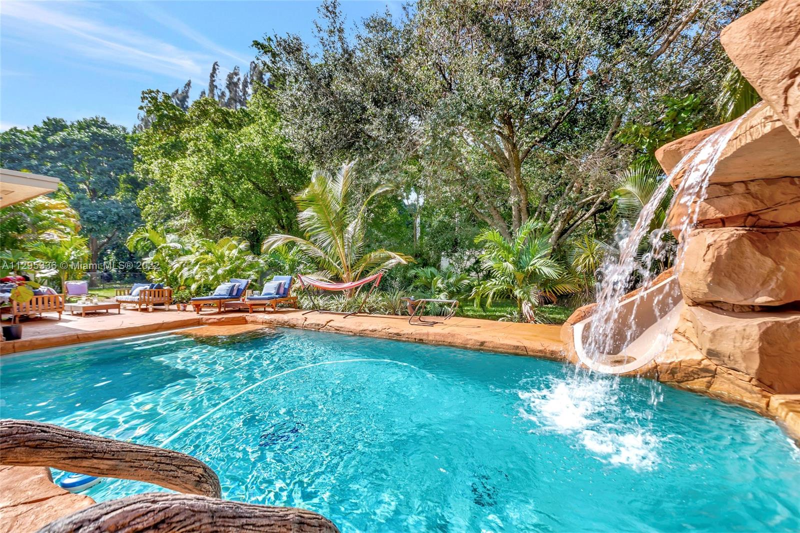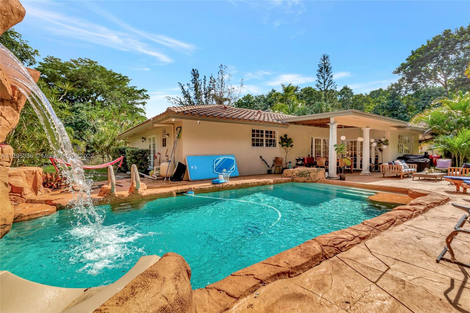 Welcome to your private 2-acre tropical paradise in the heart of Davie! Amazing opportunity to own the largest lot in the neighborhood surrounded by natural beauty and your own stocked pond. This spacious remodeled home has 4 bedrooms, 3.5 full bathrooms, a large family room, an eat-in kitchen, an office, a dining room, a safe space, and marble and wood floors throughout the house. Relax by the resort-style pool with waterfalls, slides & a Jacuzzi! This house has 2 separate A/C units and 2 water heaters with a new roof installed in 2019. No HOA.
