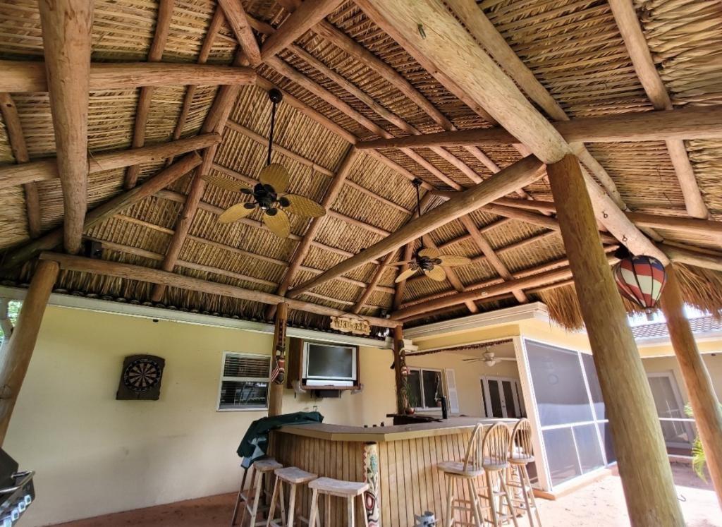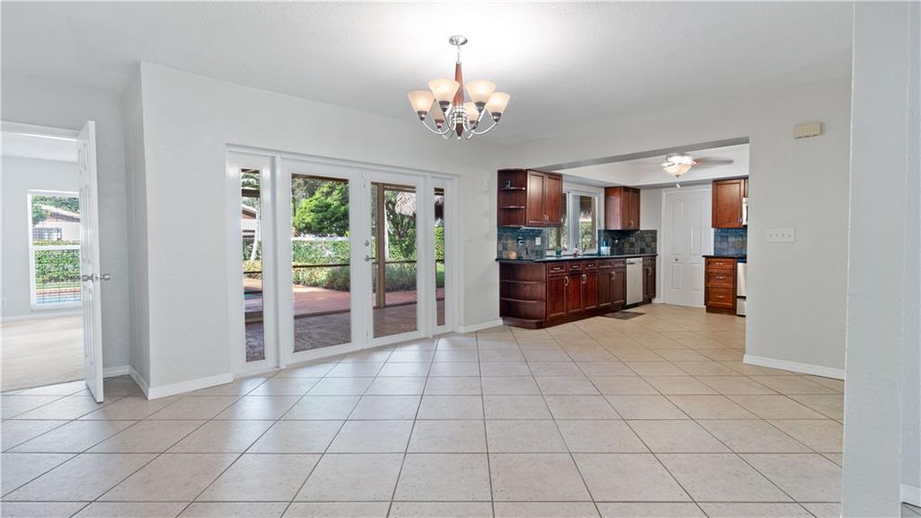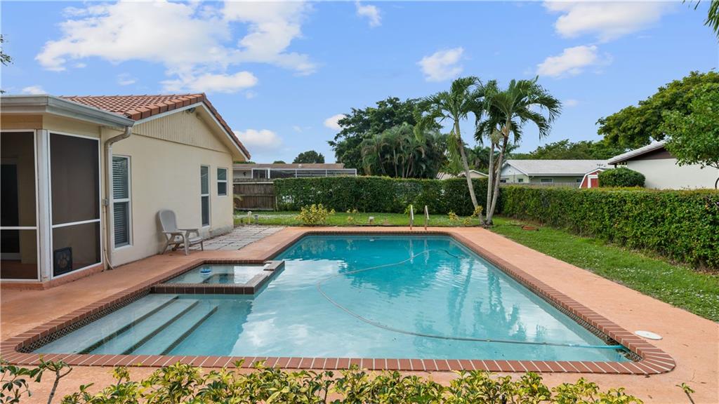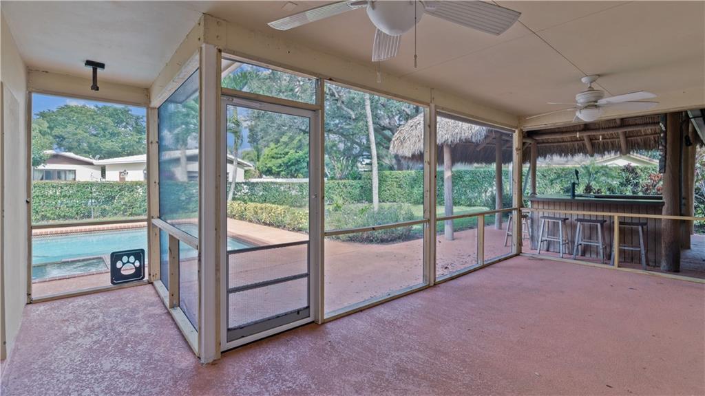 Beautiful 4/2 corner lot located in desirable Royal Palm Estates! No HOA! This house has it all. Open floor plan with lots of natural sunlight. 20"diagonal porcelain floors throughout & carpet in bedrooms. 2 car garage, remodeled bathrooms, updated kitchen with stainless steel appliances, granite countertops, natural slate backsplash, hurricane impact windows and large separate laundry room. Screened in patio leading out to your oasis! Breathe taking fenced in backyard with all your entertainment needs. Large pool with spa, Seminole built tiki hut, outdoor bar with seating for 12, tv, fridge, keg, dart board & ceiling fans. Room to store RV or up to 40ft boat. Pick from your 2 Avocado trees. Location! Location! Top schools, close to 95, 595, airport, walking distance to dog park & shopping