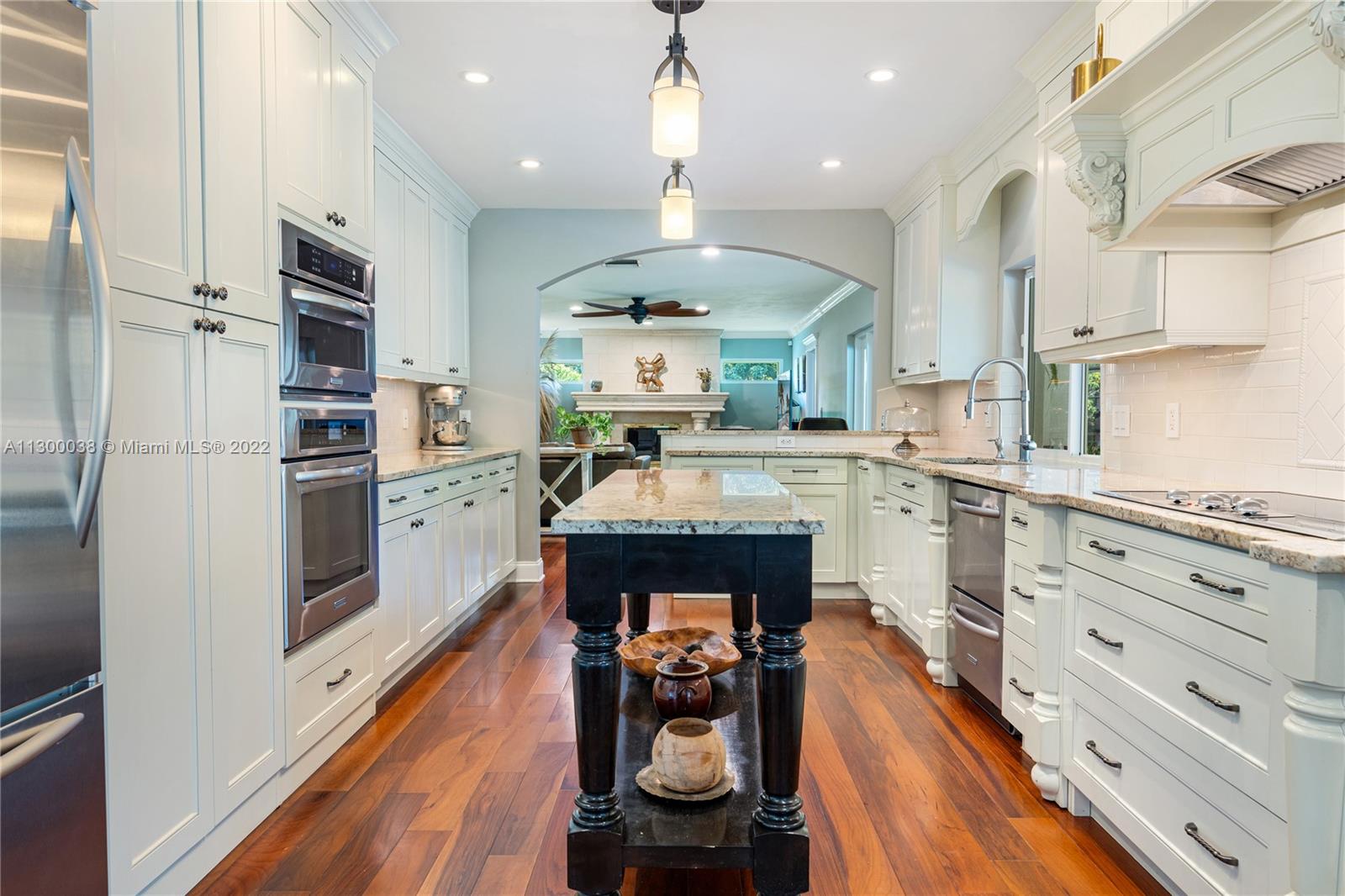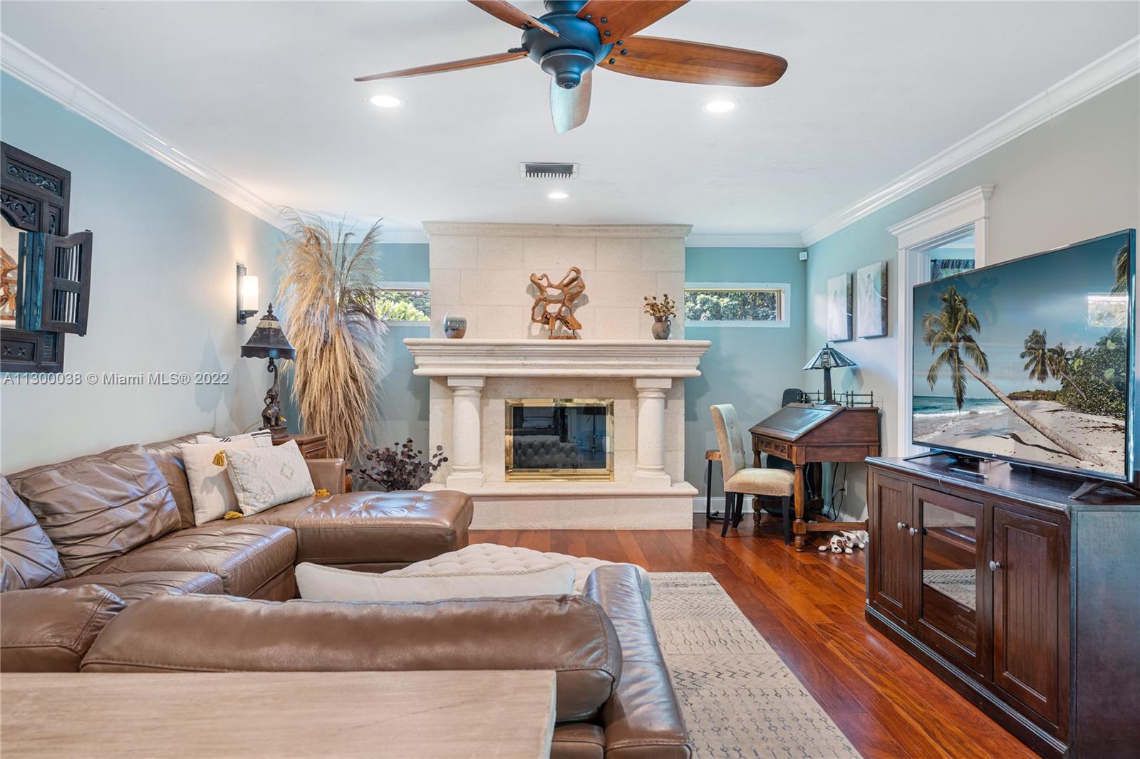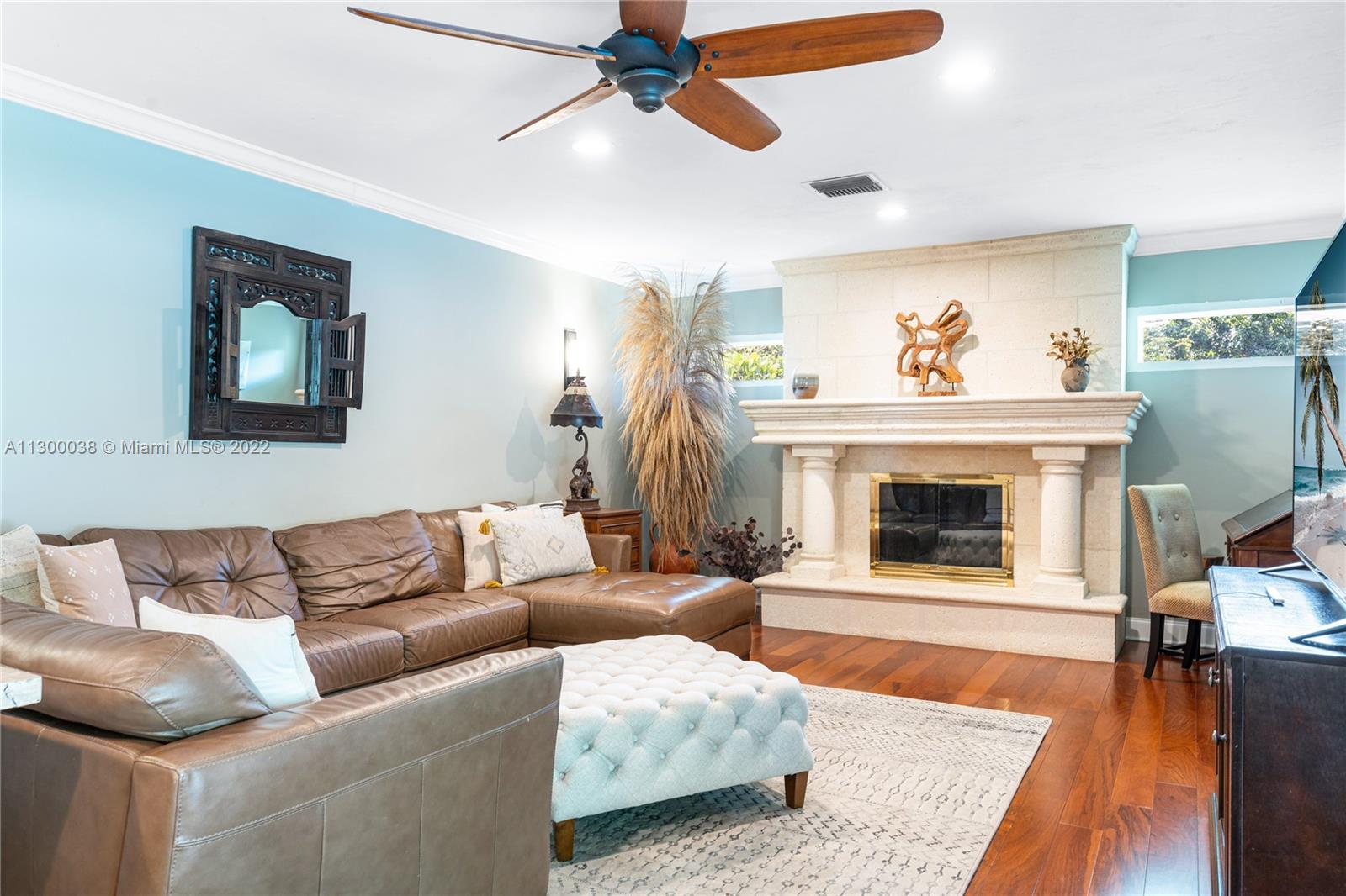 One-of-a-kind private corner gem with luscious trees in Pinecrest. Beautifully remodeled split floor plan home with engineered wood flooring throughout the house, along with hurricane impact windows doors. The house has 5 bedrooms, with 3 of them containing walk-in closets, along with 4 bathrooms and a 2-car garage. The family room features a stunning fireplace, and the house has not one, but two master suites. The kitchen features wood floors and cabinetry with a granite countertop and stainless steel appliances. There is a security system, and a spacious 32,103 Sq Ft lot that features a solar heated pool system and solar water heater. This house has two master bedrooms and 3,118 Sq Ft of living area (per appraisal report) in a very desirable location with an excellent school district.