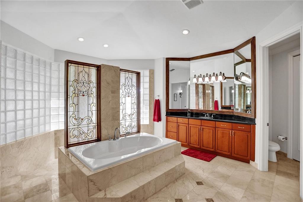 • Característica Interior:WetBar, BreakfastBar, BedroomonMainLevel, DiningArea, SeparateFormalDiningRoom, DualSinks, EntranceFoyer, EatinKitchen, JettedTub, KitchenIsland, MainLevelMaster, Pantry, SittingAreainMaster, SplitBedrooms, SeparateShower, VaultedCeilings, WalkInClosets, Attic