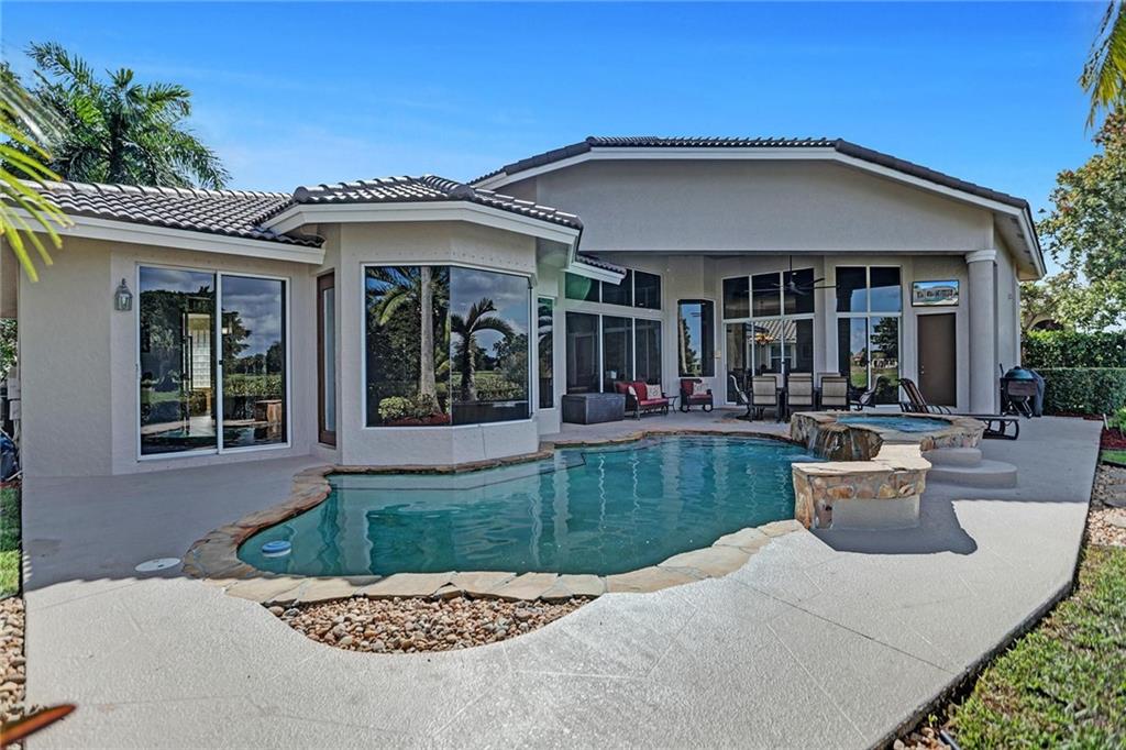 Stunning One Story Custom Home Located In The Double Gate Community The Falls of Heron Bay. 5 Bedroom + 4 Bathrooms + 2 Half Bathrooms + Office Custom Home Located On The Water With Amazing Sunset Views. Brand New Roof 2022! Interior Features Include Renovated Kitchen With Wood Cabinets, Quartz Countertops, Center Island, Stainless Steel Appliances. Interior Features Include Spacious Open Family Room w/ Entertaining Built In Bar Area, Marble Floors In Living Area, Coffered Ceilings and Crown Molding, New Flooring In Bedrooms and Freshly Painted. Spacious Master Suite w/ Sitting Area, Private Office, Dressing Area, 2 Walk In Custom Closets, Master Bathroom w/ Double Sinks, Jacuzzi Tub. Gorgeous Water Views w/ amazing sunsets, Fenced In Yard, Mosquito System. Resort Amenities Clubhouse