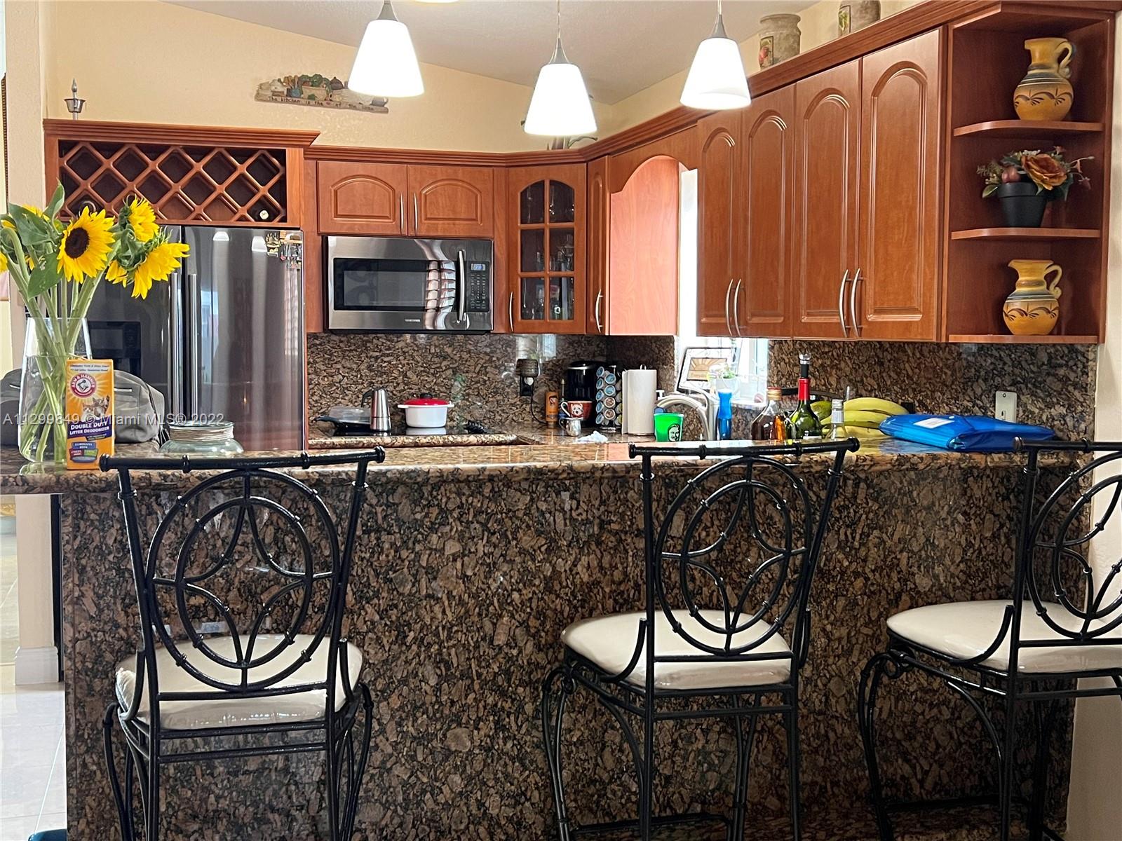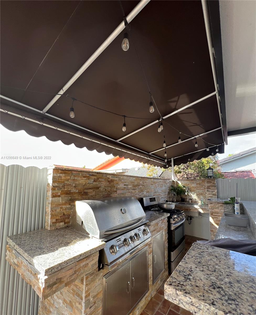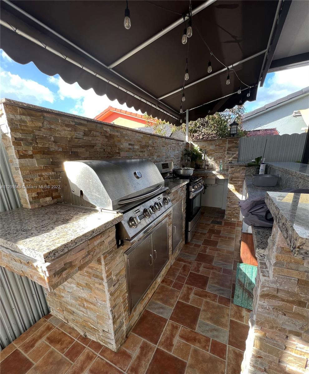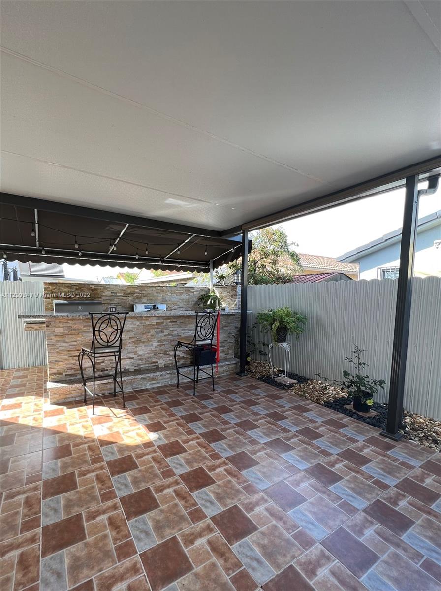 Exceptionally maintained single story three bedroom two bath home located in Hialeah. Open kitchen concept with full granite countertops and seating. Split floor plan. Owner's bath is remodeled with walk in shower. Enjoy the completely covered and tiled backyard featuring: built-in BBQ, gas stove and sinks. Exterior is freshly painted. Hurricane impact windows and doors installed in 2020. Central A/C system is from 2015. Other features include: covered entrance, rain gutters, new exterior lighting, security cameras, aluminum side gates, stamped concrete circular driveway.