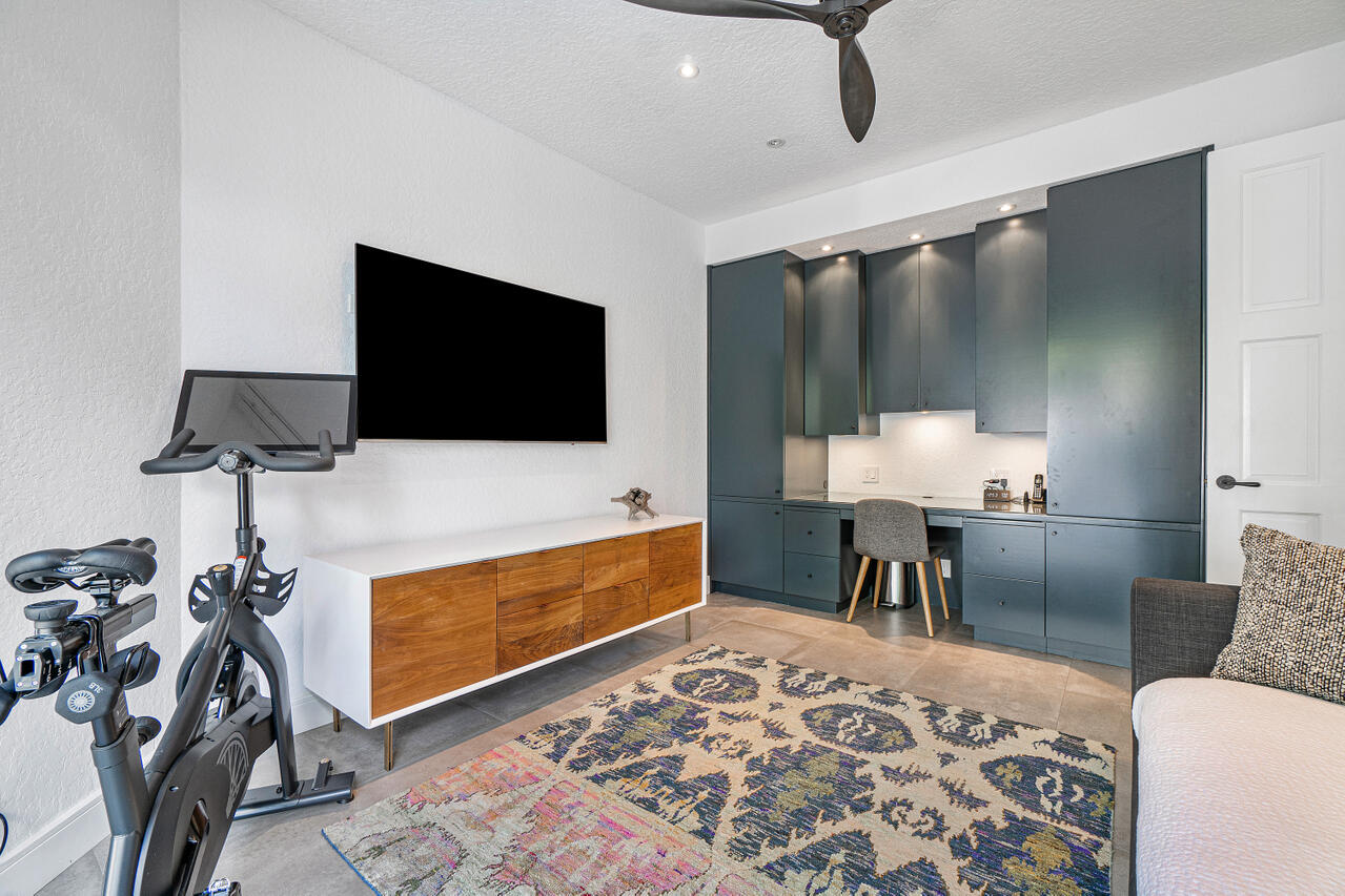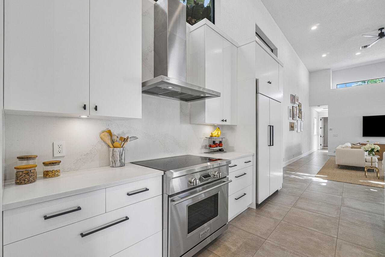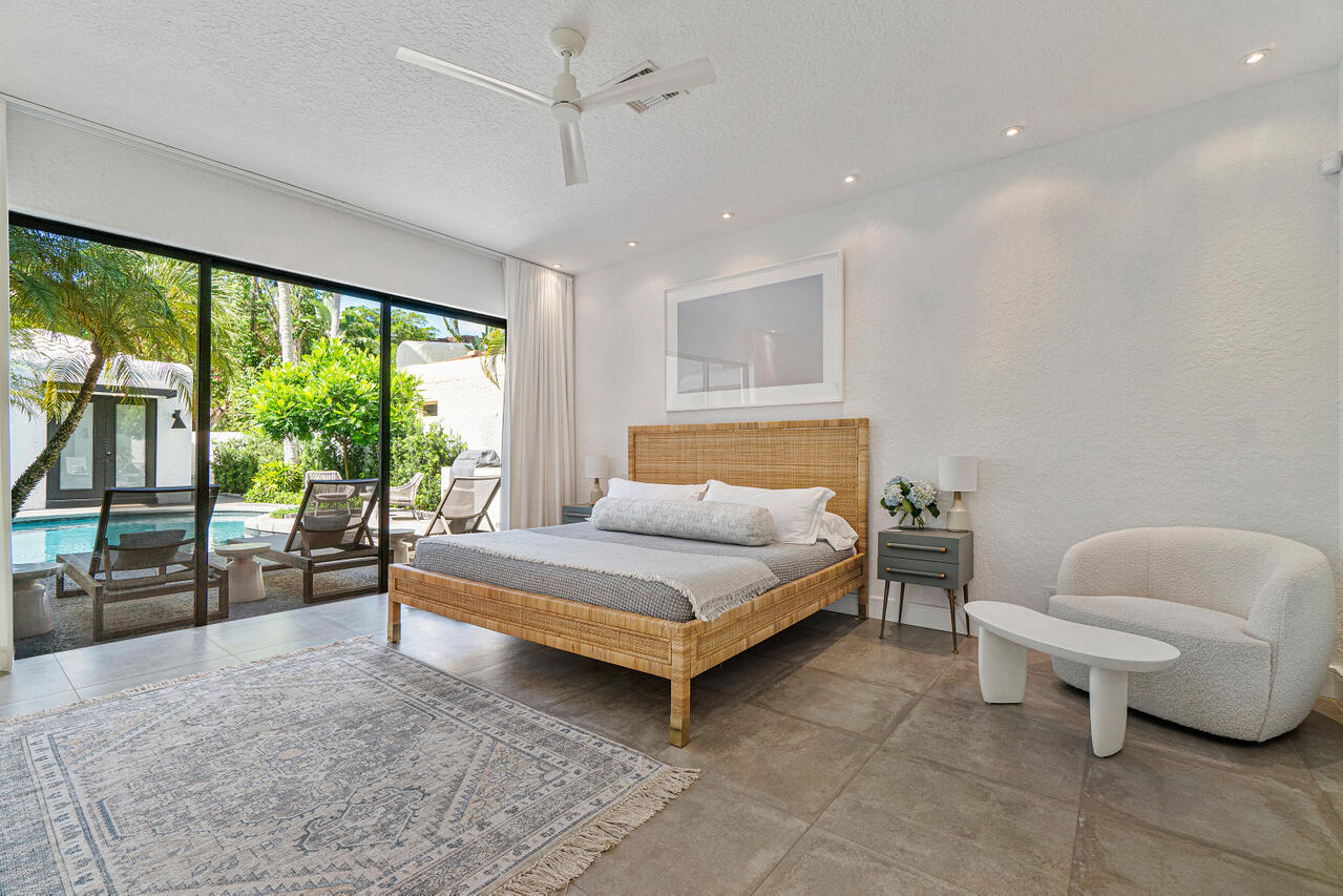 A chic sense of combined organic and modern elements creates the perfect balance for this one-of-a-kind home. Upon entering the private courtyard you are greeted by a charming balance of nature that connects seamlessly with the pool and outdoor entertaining spaces. Soaring ceiling heights are inundated with natural light while the open-concept design creates an impressive statement when walking into the main house. The sizable open kitchen with a Ceasar stone waterfall island smartly integrates Sub-zero refrigerator and dual wine coolers, Wolf appliances, and an intelligent design behind the matte white cabinetry. The master bedroom features tranquil views, dual walk-in closets and a clean-lined contemporary master bathroom with a glass feature wall that incorporates nature into the space.