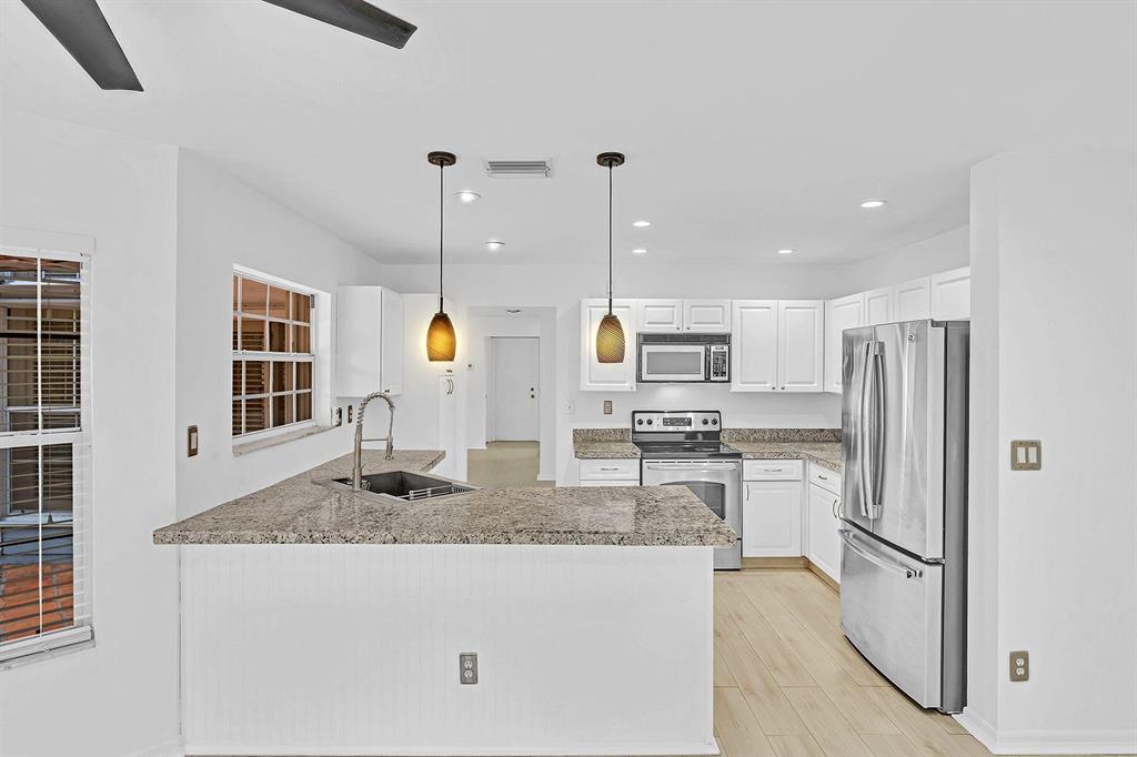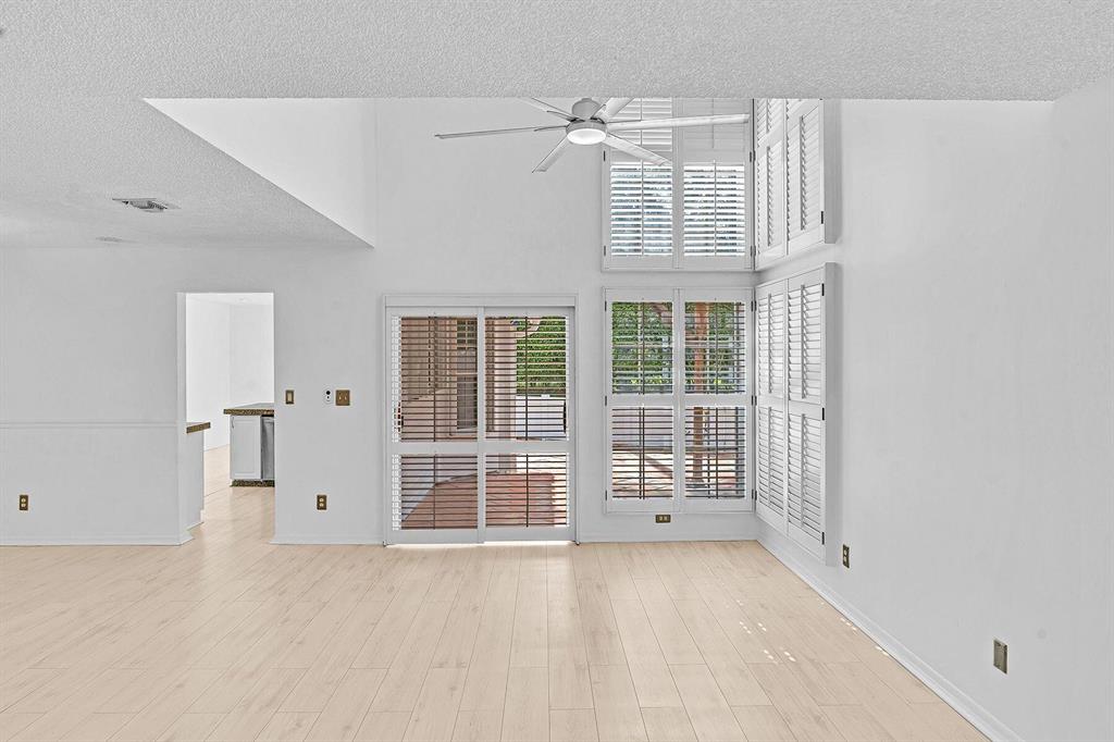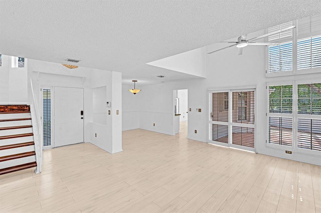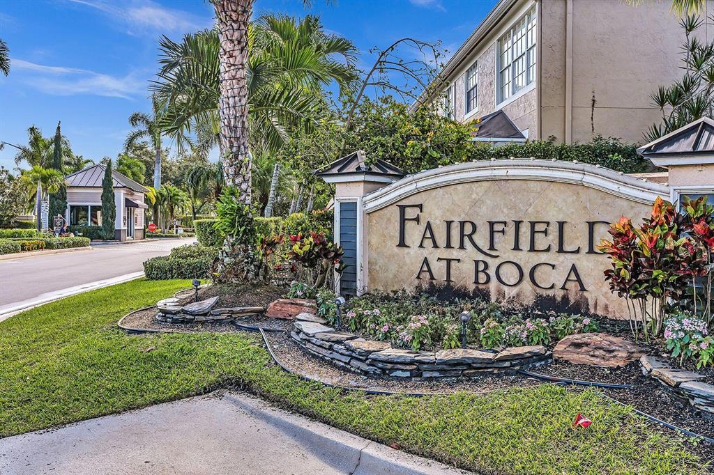 This beautiful single family home has 3 bedrooms, 2.5 baths, 2 car garage plus a loft. Premier central location minutes to Town Center Mall & just a short walk to Boca Center's upscale shops, restaurants, and popular nightlife . Features Include: 18' ceilings floor to ceiling windows in living room, plantation shutters, laminate & wood floors throughout. Kitchen has white cabinets, stainless steel appliances, & granite counters. Private fenced yard with Spanish style pavers. Slim & hurricane shutters. Plus a balcony on the second floor. Fairfield is a fabulous 24/7 man gated community with pools, tennis & basketball courts, children's playground, and jogging/walking paths + more. All top rated schools and was just re-zoned for the ''Brand New'' Blue Lake Elementary School