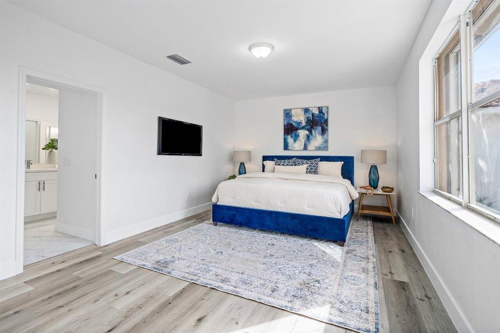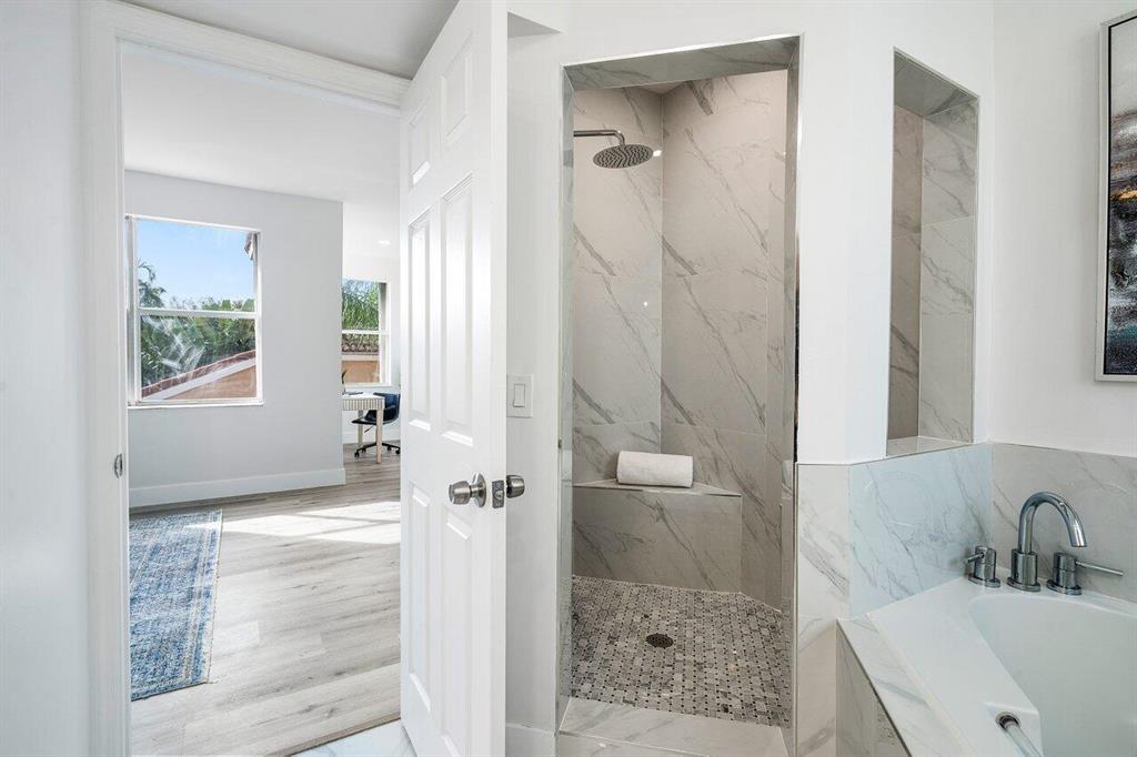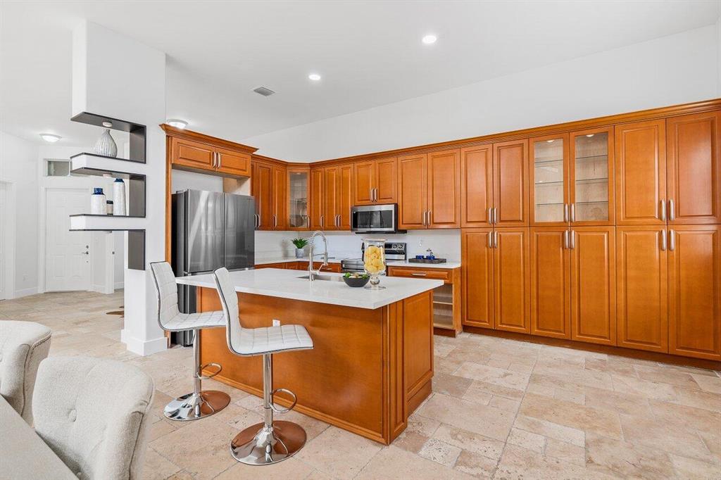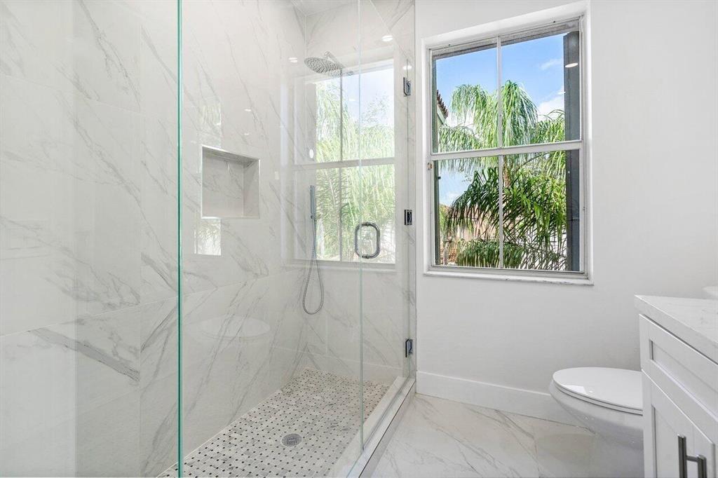 Introducing this exquisitely renovated home located within the highly desirable neighborhood of West Lake. When entering the living space one is greeted with tall volume ceilings and gorgeous chipped marble floors. To the left is the formal sitting area that flows seamlessly into the main living space. Both with access to the newly renovated guest bathroom. Overlooking the dining room is the spacious kitchen boasting a large chefs island, all stainless steel appliances, and exotic quartz countertops. The entire main living space offers unobstructed views of the patio and garden with ample natural lighting.