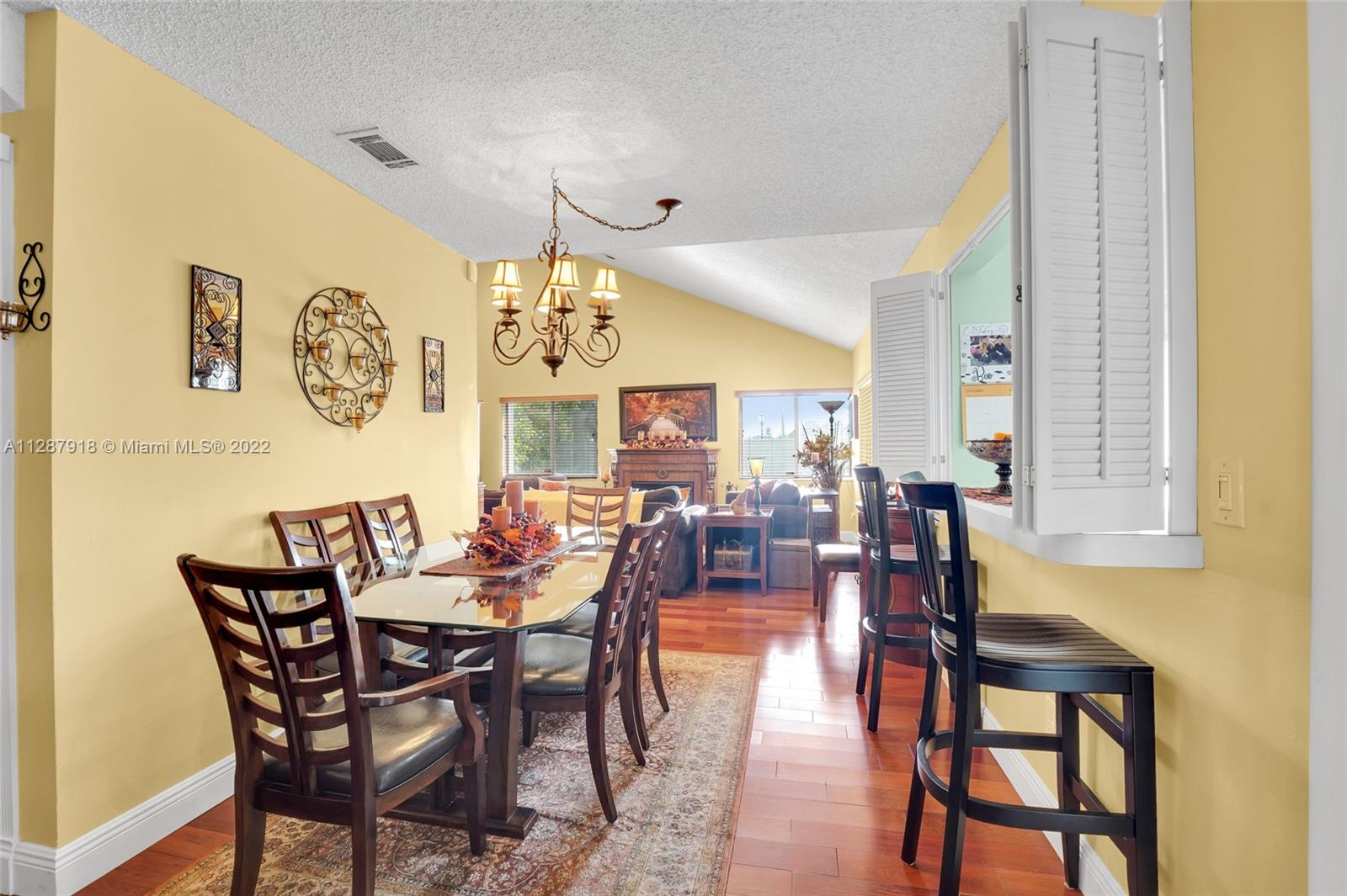Lovely 2 story detached single family home on Cul-de-sac lot w/oversize yard in the Gated Community of the Moors / complete privacy in Backyard and Large Screened Marble Tiled Patio, great for entertaining. Tall Vaulted Ceiling as soon as you walk in, 1 bedroom & 1 full bathroom on 1st level along w/family, living, dining rooms, kitchen, laundry Room. 2nd Floor has bright master suite w/sitting area, beds 3 & 4 share a hall bathroom. Extra storage under stairs. Wood floorings in most areas. All Accordion shutters. FHA/VA Okay. Tile Roof 2009. Solar powered water heater. Great amenities: Clubhouse, Pool, Basketball, Tennis, Gym, Lake, Security & On Site Management. Close to 826, I-75, I-95, Highways, restaurants, schools, shopping centers. Inspection Done, Appraisal Done.