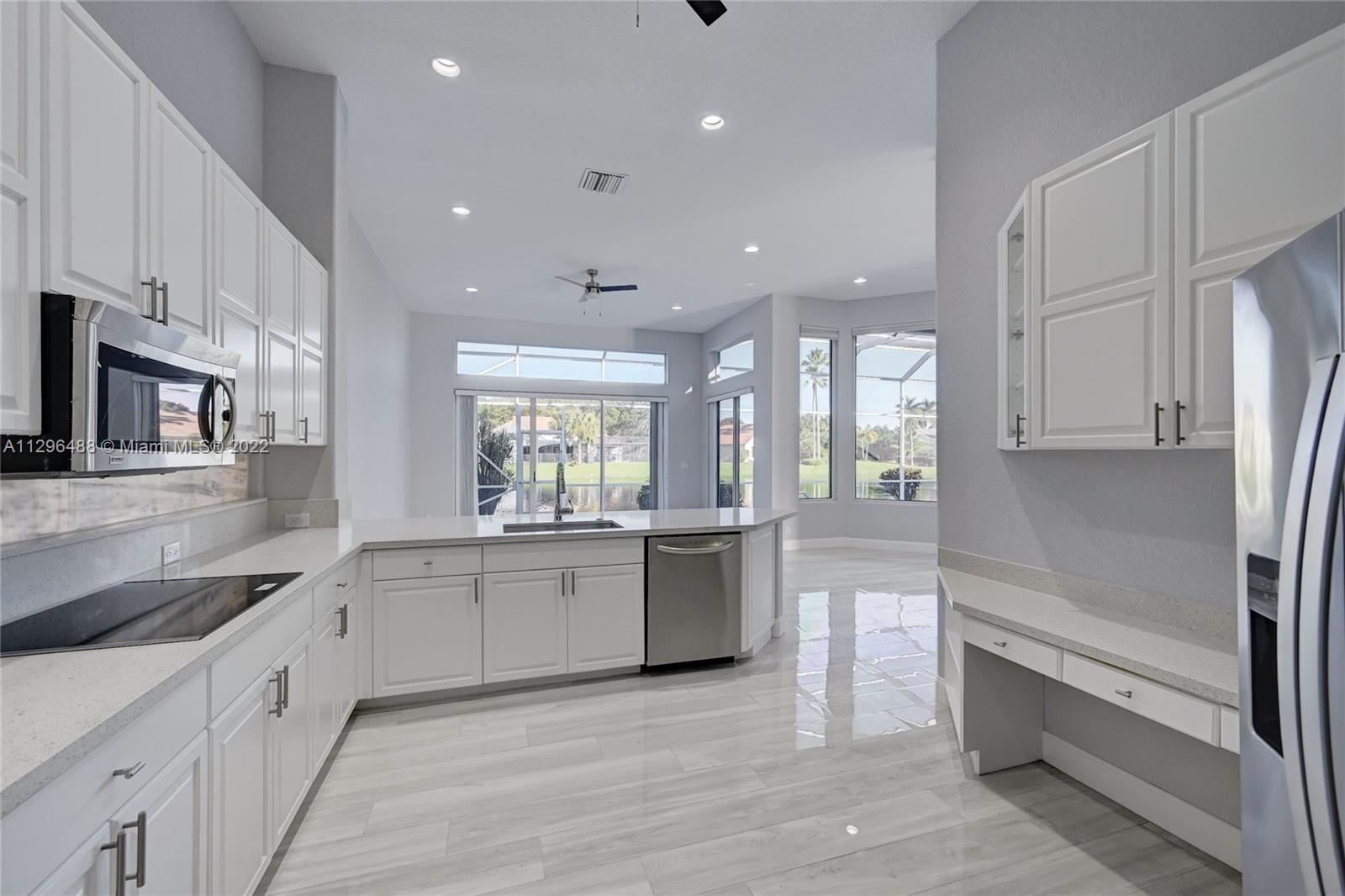 This Pristine Move-in Ready, one story 4/3 single family POOL home, overlooks the spectacular LAKE & has been completely renovated. This spacious home boasts of a BRAND NEW BARREL TILE ROOF & gorgeous lakeviews. Nestled on a lovely lot in Sonata at Mission Bay. Enjoy Mission Bay's Community Park & resort-style clubhouse, and all A+rated schools. Features: Quality Porcelain Floors, Quartz Kitchen Counter tops, new ext. & int. & driveway paint, new baseboards, SS appl's, glass cook top, Dual Oven, Marble Vanities, Newer AC, Garage has AC, Master bath w/new Floating Tub. Access to Mission Bay's over-the-top amenities. SONATA AT MISSION BAY offers a beautiful salt water pool, gym, aerobics, tennis & More! Walking distance to Sandpiper Elem., places of worship. CAN RENT RIGHT AWAY! LOCATION!!