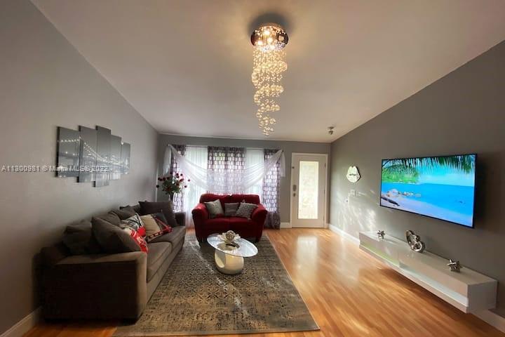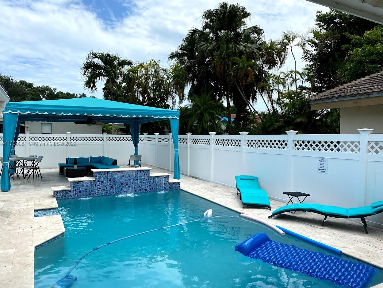 Great location! This 4 bedroom split plan features a gorgeous remodeled bathroom, new closets in two of the bedrooms, a kitchen with granite & stainless & LOTS of storage, freshly painted exterior impact glass windows & sliders, and an inside laundry room with a new washer and dryer, pull down stairs to attic, knockdown textured ceilings in great room, exterior storage closet, open remodeled heated pool with child fence & salted-water system & travertine deck & awning to enjoy outdoor living at its best. Garage with new impact door. Walk to parks, shopping and restaurants. Roof 2006, A/C 2019.