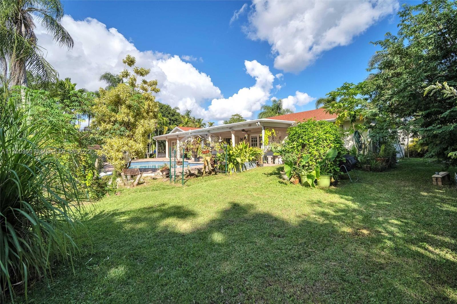 Come fall in love with this Beautiful Open Floor Plan Home, it sits on a 1+ acre Property surrounded by mature trees and different fruit trees. Lots of natural light, 5 Spacious Bedrooms plus a Den/Office and 2 Full baths. Kitchen is Open Concept, Stainless steel New Appliances with an enjoyable view to the serene backyard and the inviting Sparkling Pool. The outdoor has an oversized patio and paver floors. Perfect place to entertain. NEW ROOF (2021), NEW A/C and New Water Filter System. Accordion shutters throughout. One Trailer shed included. Zoned to Top rated Schools, conveniently located near restaurants, shopping and access to the 75. This property is surrounded by Mini Mansions. Very quiet and private street. Horses are permitted. Bring your toys, RV, Boat there's Room!