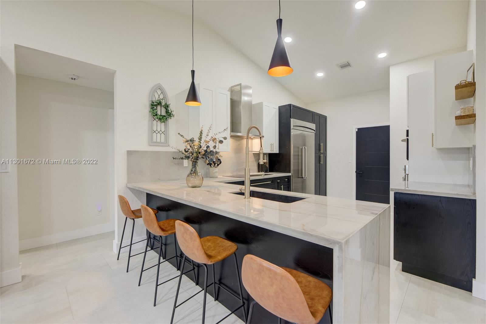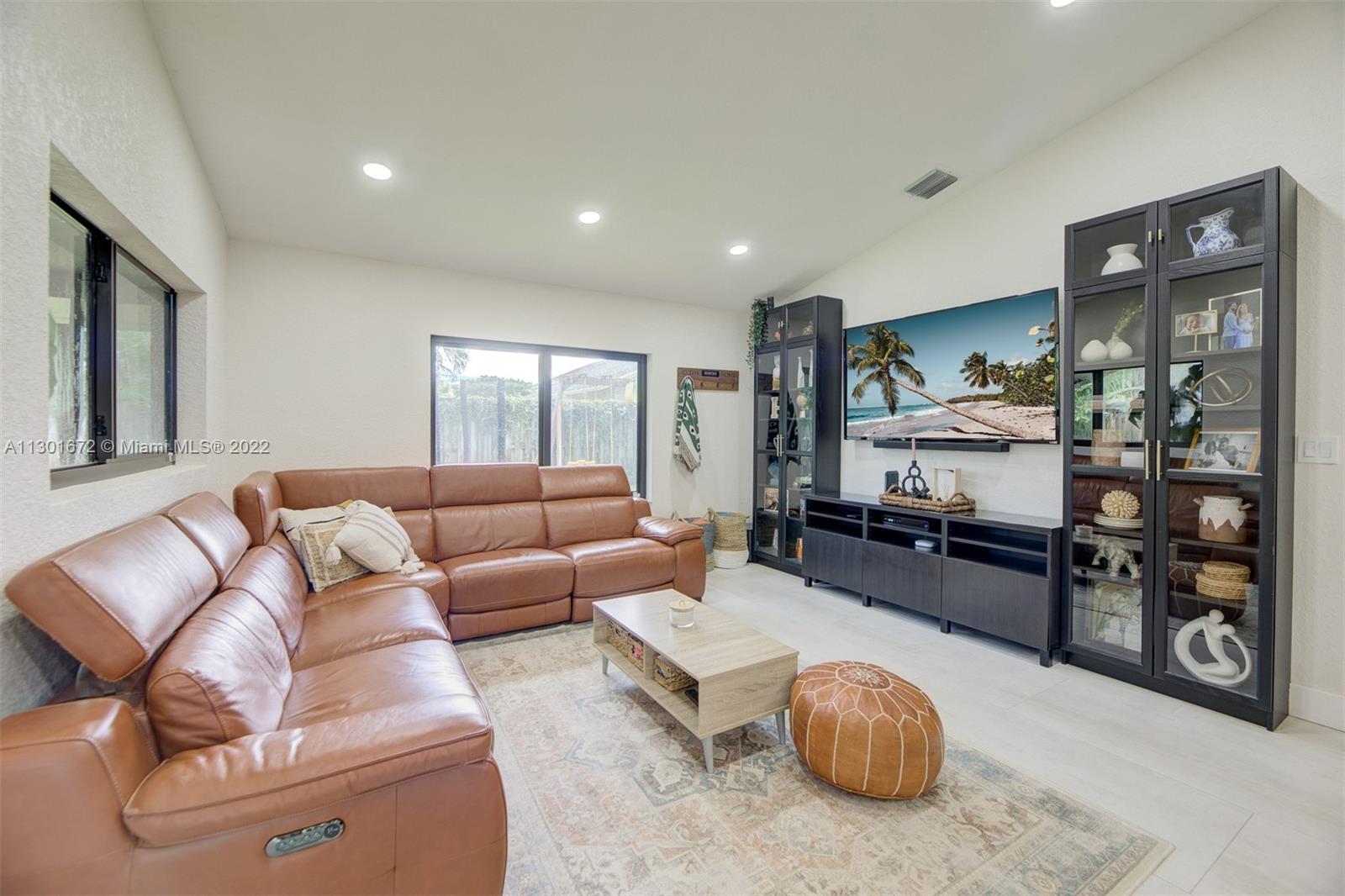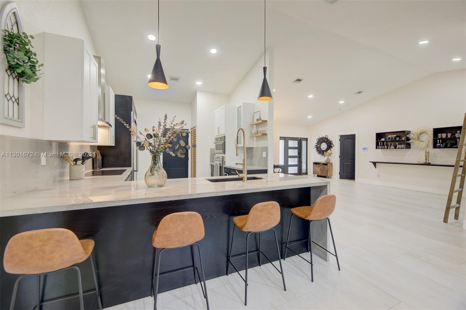 Newly Renovated, modern and spacious open concept 3 bedrooms 2 bathrooms with vaulted ceilings. Located in Orange Estates, a non gated cul-de-sac community, with only 30 homes. Only one entrance no through traffic. A split plan home with Principal bedroom of living room and the other bedrooms off the family. Large open kitchen with peninsula high end appliances, 42" thermidor refrigerator and the rest GE Professional. Spacious wood cabinets and quartzite countertops. Tankless Water Heater installed 2021, A/C installed 2018 Roof 2022, New impact window and doors 2021. Air-conditioned 2 car garage with designated laundry room. Large driveway for 4 cars and plenty of community parking for family gatherings. Near University Drive restaurants and stores in abundance.