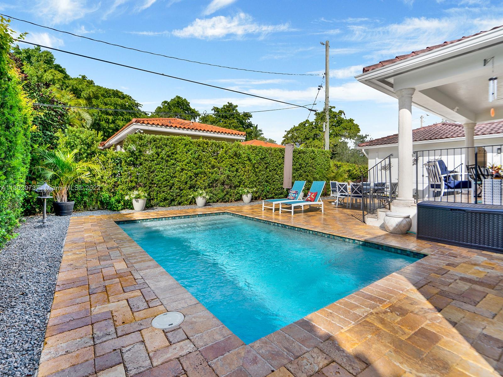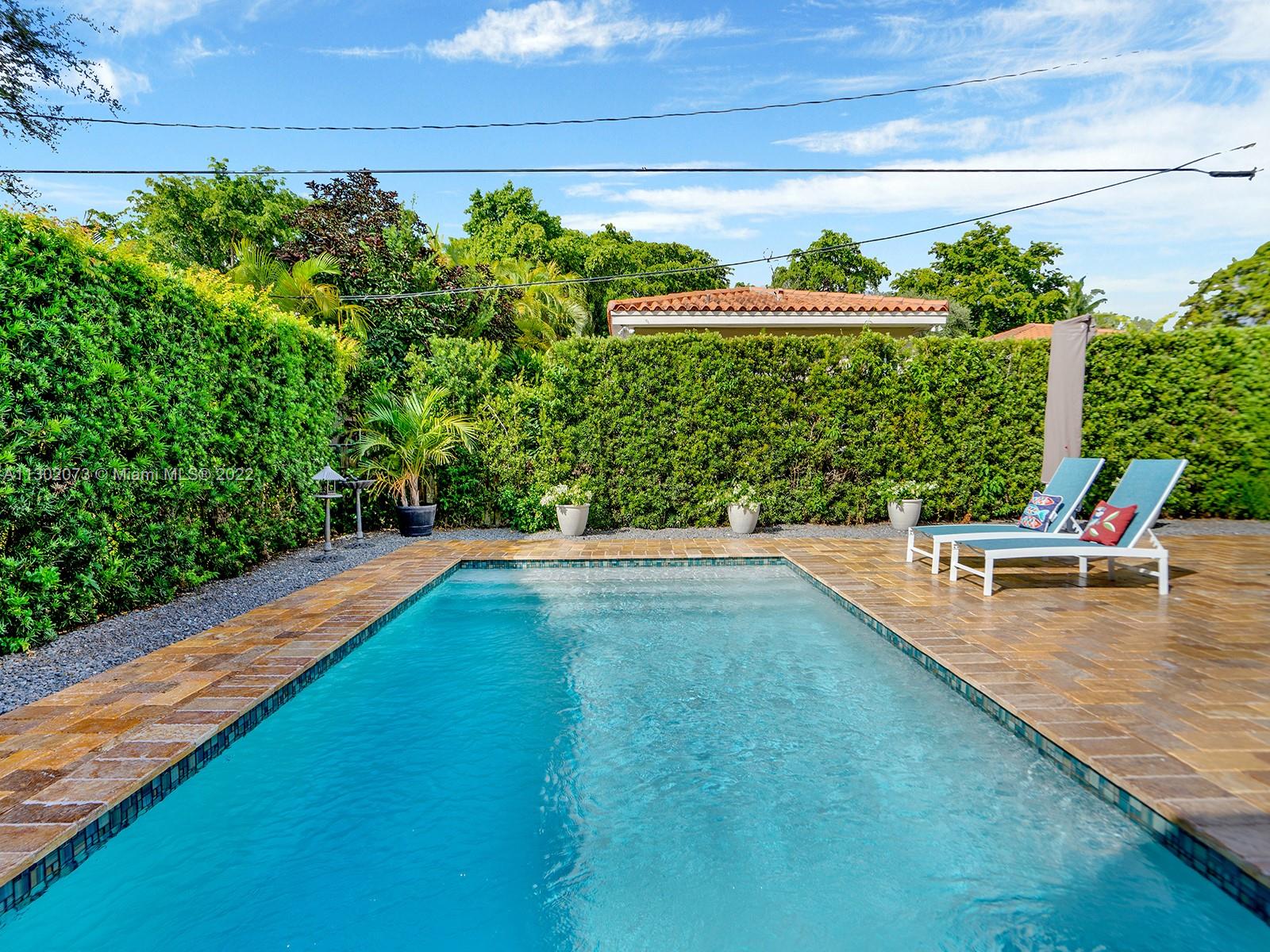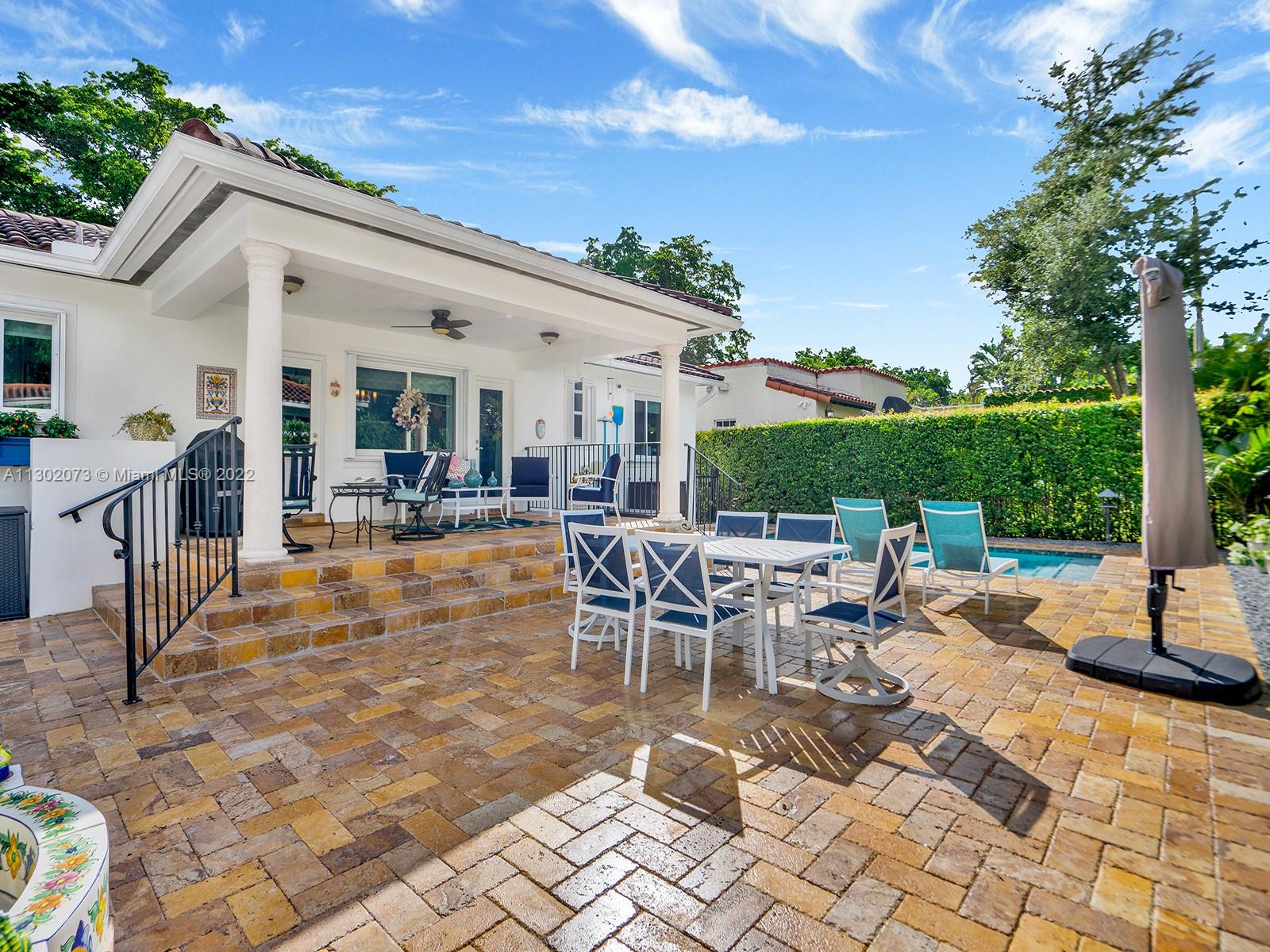 This unique Coral Gables pool home has been spaciously enlarged to a current 3 bedroom/3 bathroom split floor plan. This corner lot home sits on a 10,600 SF lot, w/ a master bedroom addition constructed in 2015. One of just 16 homes on Tangier Street, between Venetia and Milan, property is just north of the Granada Golf Course. Entry leads you to the living-dining area that overlooks the backyard patio/pool area. Pool was built in 2022 w/ a natural stone floor layout & features a salt-chlorinator & LED lighting. Master bedroom has a sitting area & custom closet. 2nd bedroom has a full bathroom. Galley kitchen leads to a spacious family room that has access to the backyard & covered path to laundry room/garage. Impact/window protection w/doors throughout. MOVE IN CONDITION.