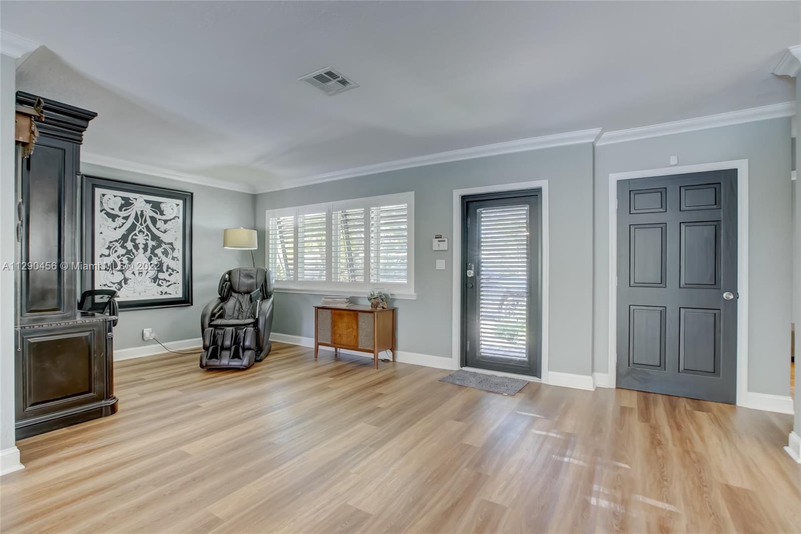 Located in tranquil Poinsettia Heights w/ mature tree lined streets & sidewalks, this immaculately updated home w/ split floor plan will please even the pickiest! Serene backyard w/ clusia hedge surrounding entertainment area w/ gas grill & burner, speakers, refreshing salt chlorinated pool w/ colored light, landscape lighting, travertine deck & new canvas shade canopy. French doors lead to kitchen w/ new cabinets & LG stainless appliances, including natural gas range. Granite breakfast bar w/ open concept view to family room. High impact windows & doors, in addition to code approved decorative Bahama shutters. Whole home 21kw Generac Generator. Upgraded electric, tankless gas h2O heater, 2019 Trane AC, 2017 paver driveway, '02 Roof. Perfect location near shops, beach, mall, downtown!