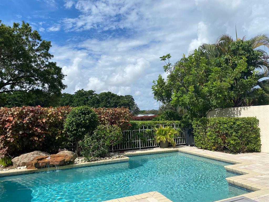 BEAUTIFULLY RENOVATED HOME IN BROKEN SOUND COUNTRY CLUB. ENJOY LUSH LANDSCAPING AND GOLF COURSE VIEWS OUTSIDE A LARGE OUTDOOR PATIO OVERLOOKING THE PRIVATE POOL WITH A WATERFALL FEATURE. HOME INCLUDES 3 BEDROOMS PLUS A DEN WHICH CAN BE USED AS A 4TH BEDROOM. 2ND FLOOR HAS A LOFT SPACE WITH COMFORTABLE THEATER SEATING.