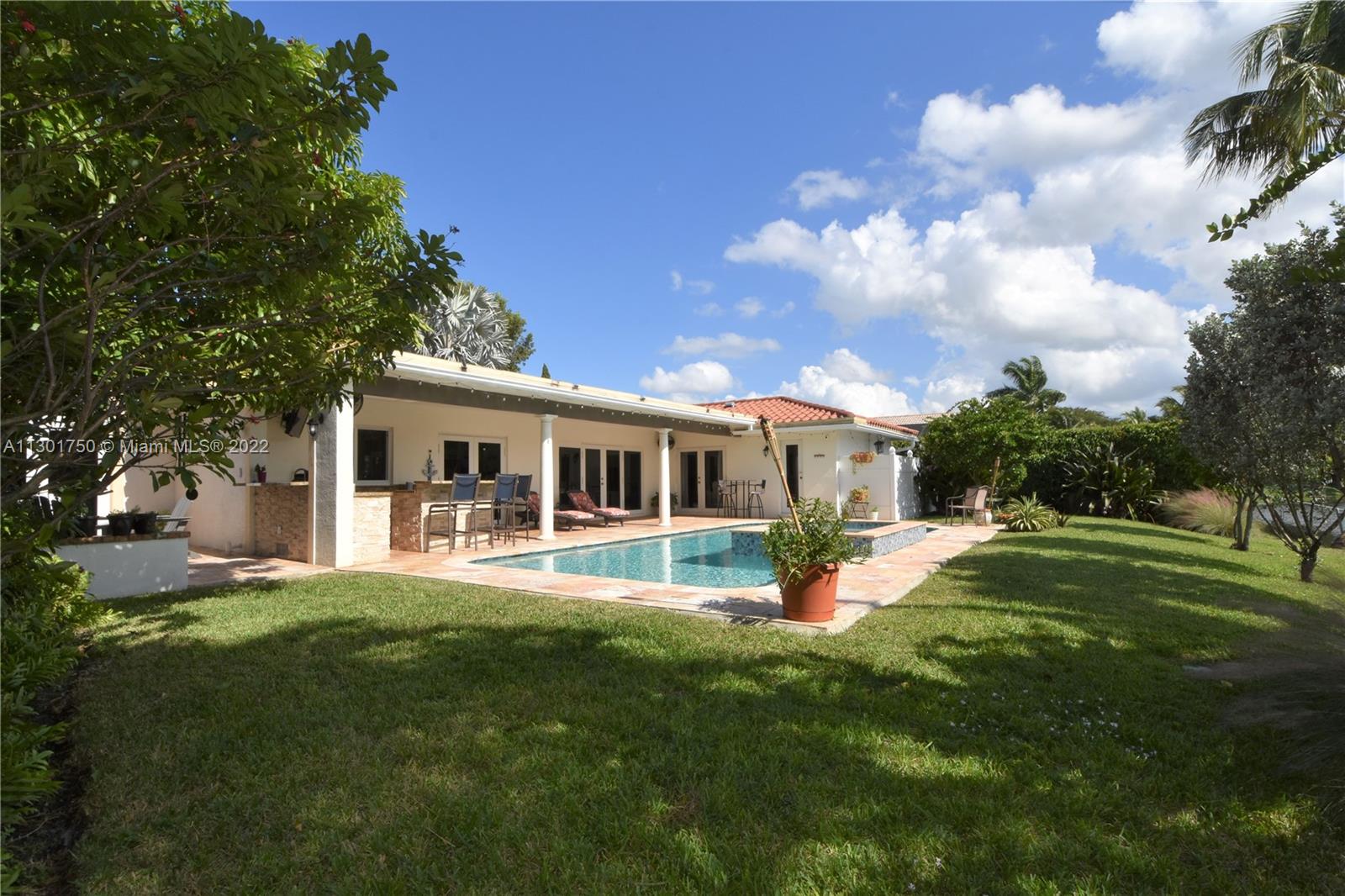 So much room to live, work & play! As you approach this sprawling lakefront home with its lush landscaping, its character is quite evident! Updated Kitchen with White Quartz Countertops, Stainless Steel Appliances, and lovely Breakfast Bar that lends itself to open concept living! Custom-made Wall Unit in Family Room, with Crown molding, recessed lighting in many living areas and updated Bathrooms throughout add to the attraction of this home. A spacious Family Room and a separate Den affords everyone in the family plenty of their own space - especially if you work from home! The Crown Gem is the completely renovated Patio and Saltwater Pool with Jacuzzi that overlooks the lake - enhanced by a magnificent Summer Kitchen - an entertaining dream, just perfect for all your social gatherings!