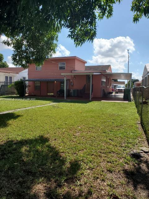 Fantastic opportunity. Charming home in Hialeah just blocks from Palm Avenue. This split level, 3-bedroom 2.5 bath home offers over 1,500 square feet. Master bedroom upstairs. Additional efficiency downstairs with rental income of $600 per month. Tenant stable over 7 years. Or, turn the efficiency into additional bed/bath to main house. Covered carport with space for plenty of cars and/or a boat. Covered terrace and huge backyard ideal for parties, and room for a pool. Centrally located, this home will not last.