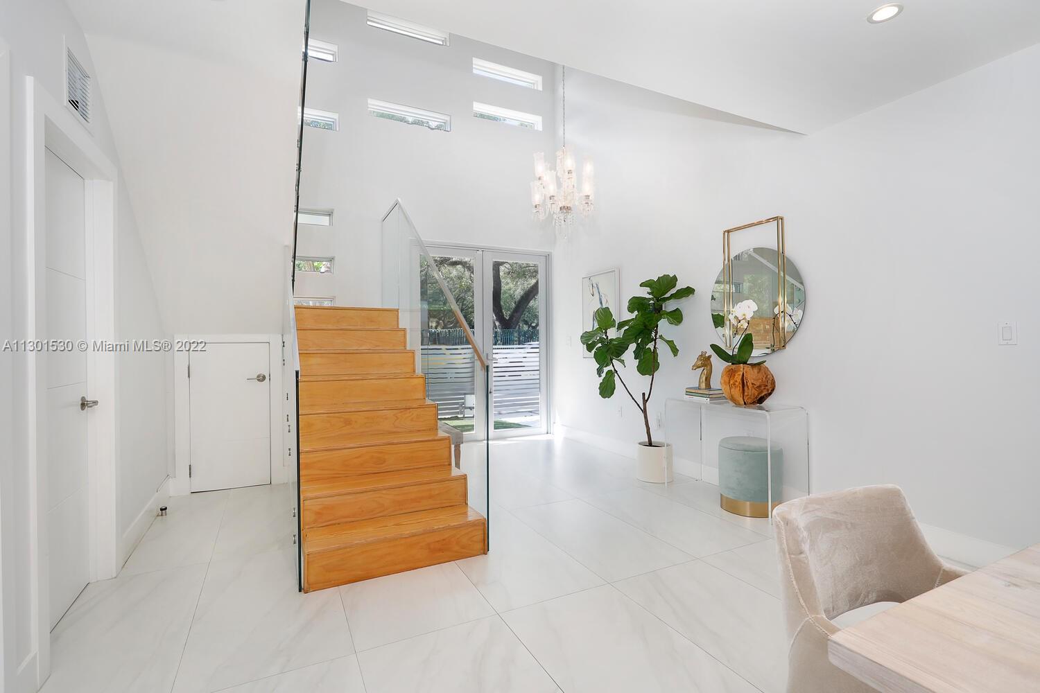 Stunning modern-style gated home just a short walk to the Grove village center’s galleries, boutiques, cafes and bayfront parks & marinas. Light-filled, open living spaces feature striking, floating staircase w/ glass railings, porcelain tile flooring & abundant windows throughout. Built 2017. Ideal floor plan includes 4BR/3BA - 1st level offers living & dining spaces, euro-style kitchen w/ breakfast bar and a ground floor guest bedroom. 2nd level- 3BR’s including the primary suite w/ balcony, 2 walk-in closets & lovely bath w/ frameless glass rain shower. Enjoy year round outdoor living & entertaining in the tropical garden enclosed by tall privacy hedge and offering a deep covered terrace that features a wet bar w/wine refrigeration. Minutes to downtown, MIA, Key Biscayne & the Beaches.