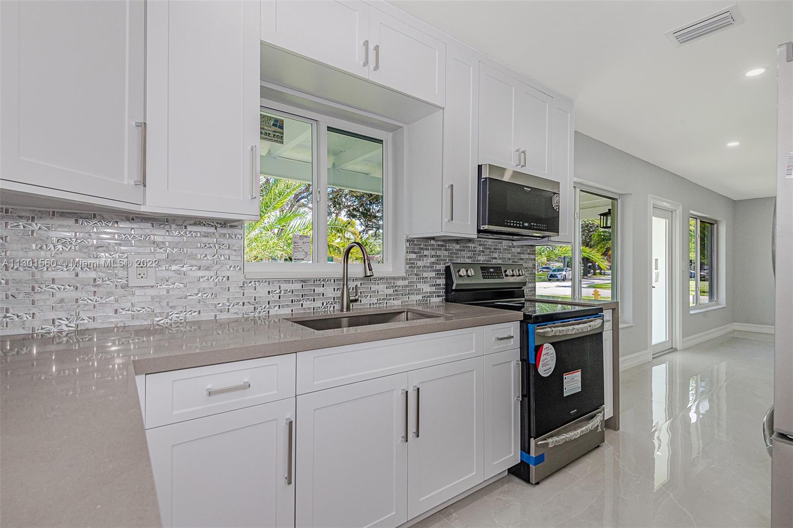 ATTENTION, Gorgeous completely remodeled home is the best home in the neighborhood, its seat on a corner lot with access to major roads. Everything in this home is new, roof, insulation, plenty of lights from impact windows and doors and recessed light, 32X32 porcelain tiles throughout the house, drywalls, kitchen cabinets, stainless steel appliances, bonus completed laundry room, 4 bedrooms, 3 full bathrooms, professionally done electrical wired and breaker box, water heater, AC+HVAC duct, pump with sprinklers system, big backyard with mango trees, room for a swimming pool + more, privacy fence with double doors to access from the circular driveway, this is a stress-free home for many years to come, one block from Golf Country Club!