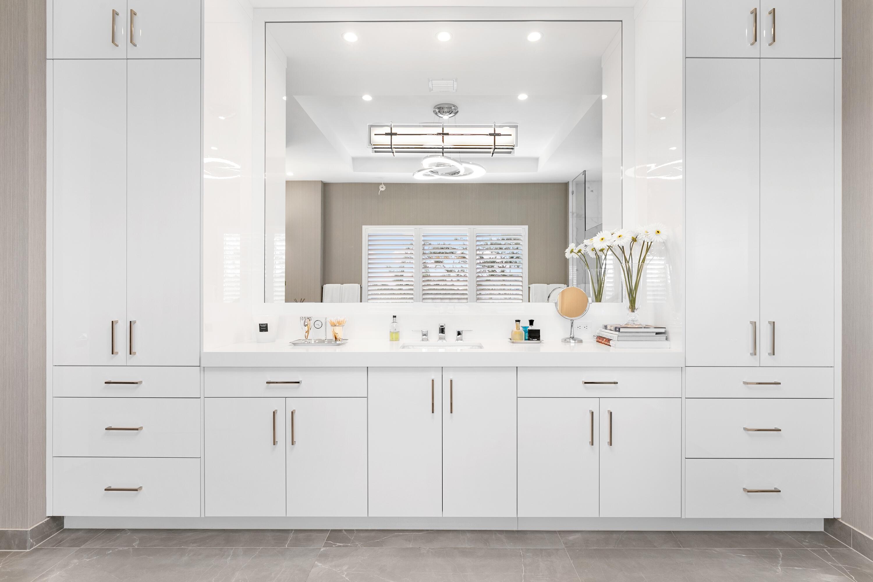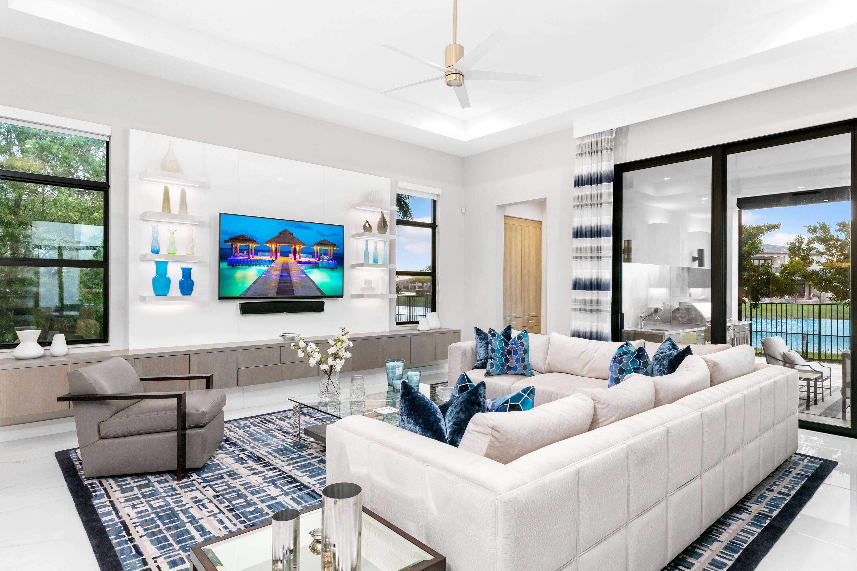 The grandeur of resort style living finds the perfect residential complement inside one of Boca Raton's most celebrated luxury communities. Amid the amenity rich backdrop of Boca Bridges, the prestigious gated development of multimillion dollar estates from GL Homes, 17121 Brulee Breeze Way stands alone, a sprawling lakefront masterpiece brimming with clean lined sophistication. This coveted Vanderbilt Grand Contemporary model, the largest offering at Boca Bridges, encompasses nearly 11,000 sf of overall living space (8,092 sf under air). This exquisite estate features the highest level of finishes, privacy and timeless design by Susan LaChance Interiors. Cast with verdant landscaping on a cul de sac lot that covers more than a half acre, the two story layout inspires at every turn.