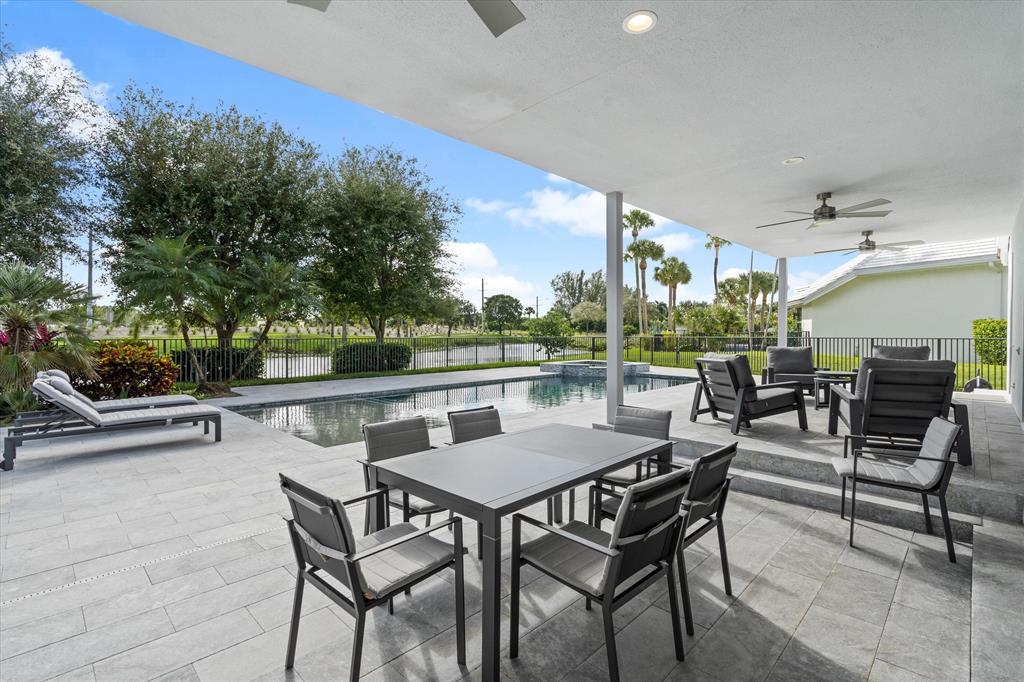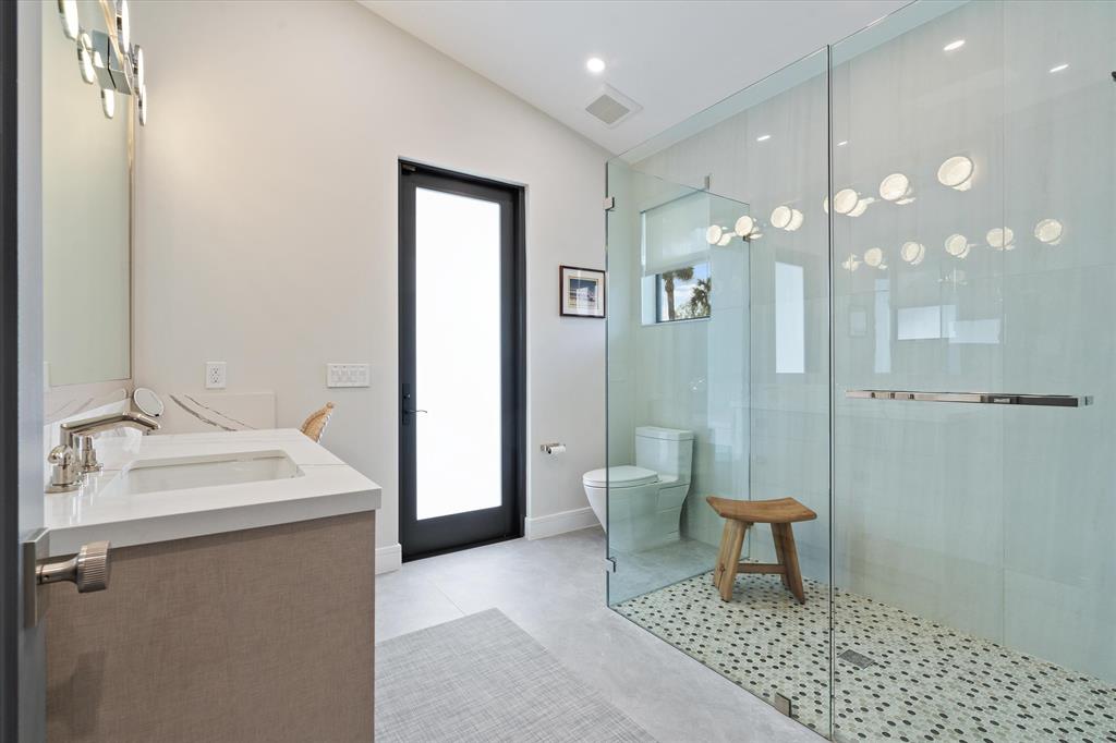 This palatial residence embodies the ultimate Florida luxury lifestyle and features 4,472 square feet under air with exceptional finishes throughout. Designed with intention, every detail of this four bedroom, five and a half bath home has been thoughtfully planned and appointed, from the breathtaking curves to the soft modern lines to the vast open spaces and grand ceilings. The gourmet kitchen is a chef's dream with Thermador appliances, quartz countertops, plentiful storage and a wine fridge. Adjacent breakfast nook is flooded with natural light. First floor primary suite with custom fitted closets and luxurious his and hers bathrooms.