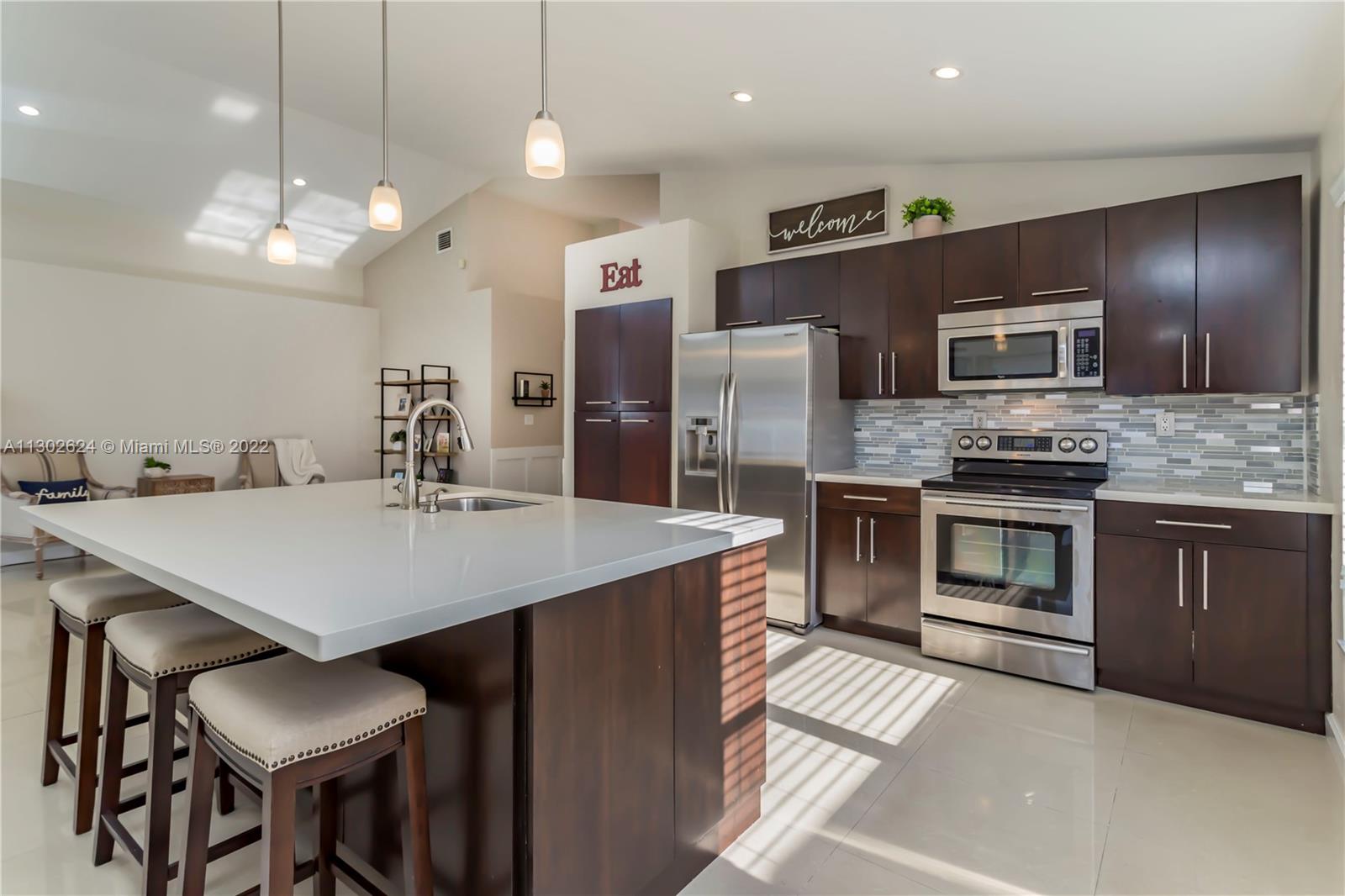 STUNNING THREE BEDROOM, TWO BATHROOM HOME IN SILVER LAKES! THIS HOME FEATURES UPGRADED PORCELAIN TILE FLOORING & VOLUME CEILINGS THROUGHOUT. THE MODERN KITCHEN IS COMPLETE WITH QUARTZ COUNTERTOPS, WOOD CABINETRY & STAINLESS STEEL APPLIANCES. THE MASTER BATH AND 2ND BATH HAVE ALSO BEEN UPGRADED. THE FULLY FENCED-IN PRIVATE BACKYARD FEATURES A TRAVERTINE PATIO & A SALT WATER POOL. THIS HOME IS PROTECTED BY NEW ACCORDION SHUTTERS & SECURITY CAMERAS.
